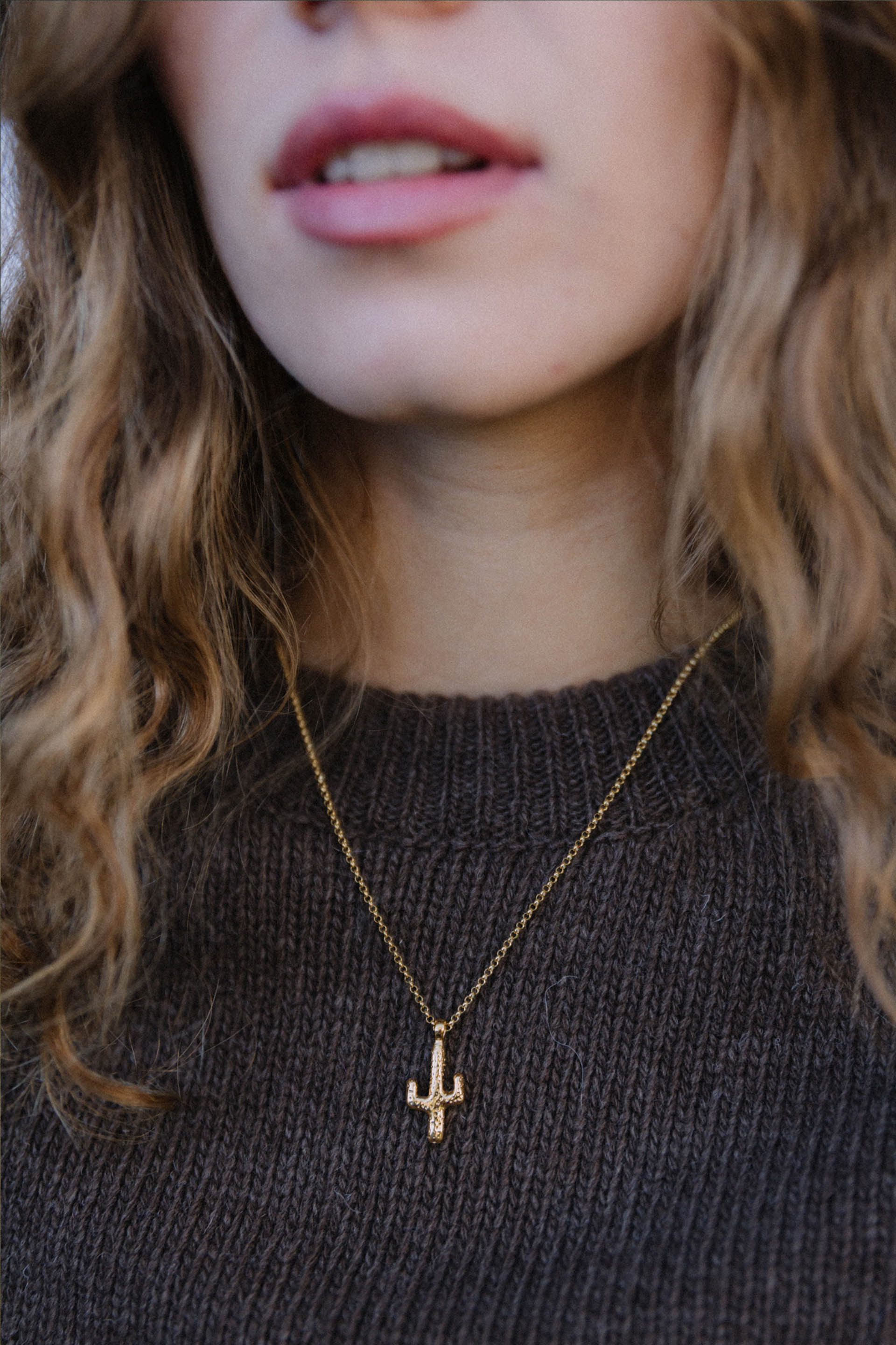 Przedstawiamy naszyjnik stworzony we współpracy z  FLAMES (@flames.jwlry). Każdy element jest tworzony ręcznie, z dużą dbałością o detale. Naszyjnik CACTUS jest wykonany ze srebra, pozłacany 24 karatowym złotem. Świetnie sprawdzi się jako uzupełnienie stylizacji.