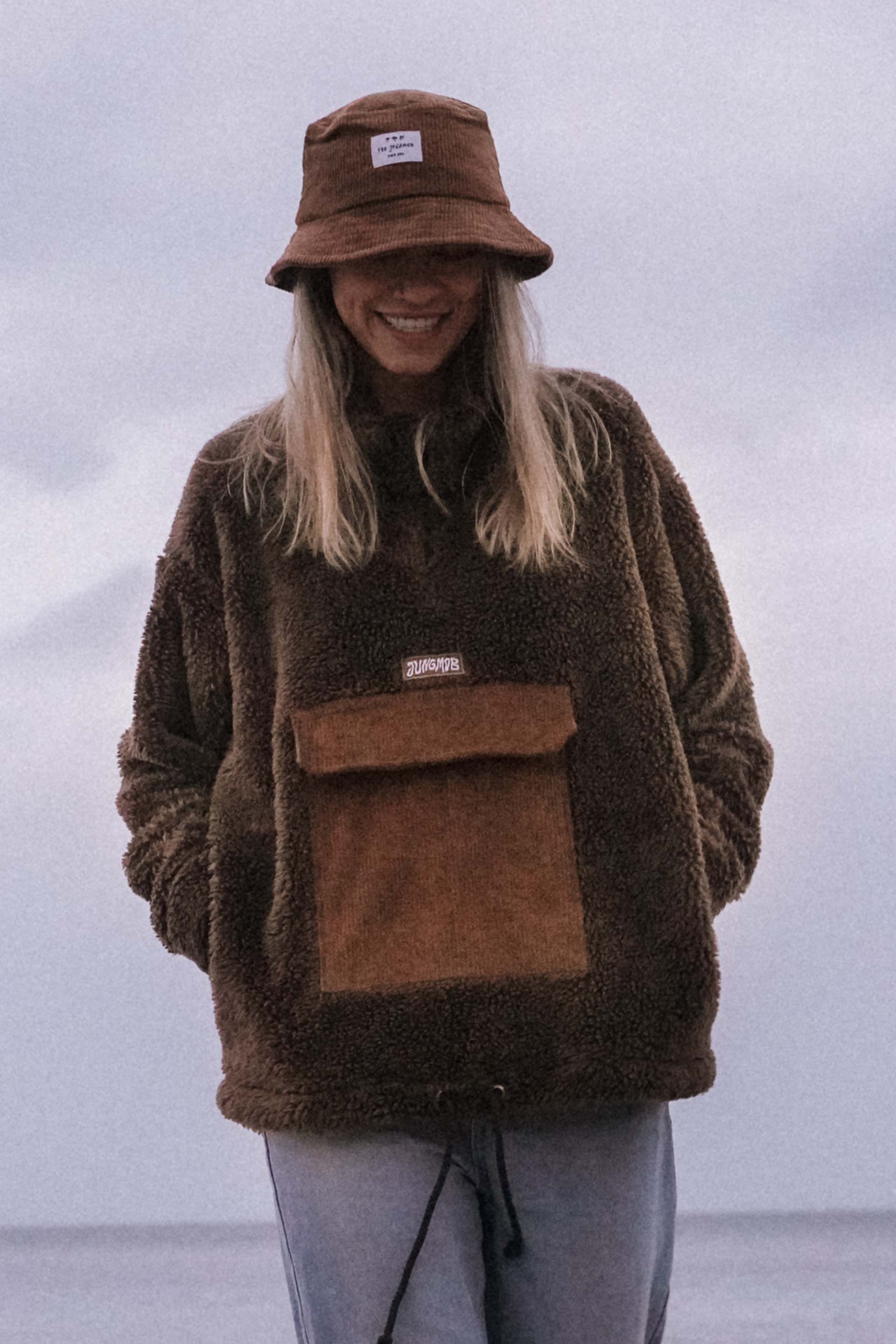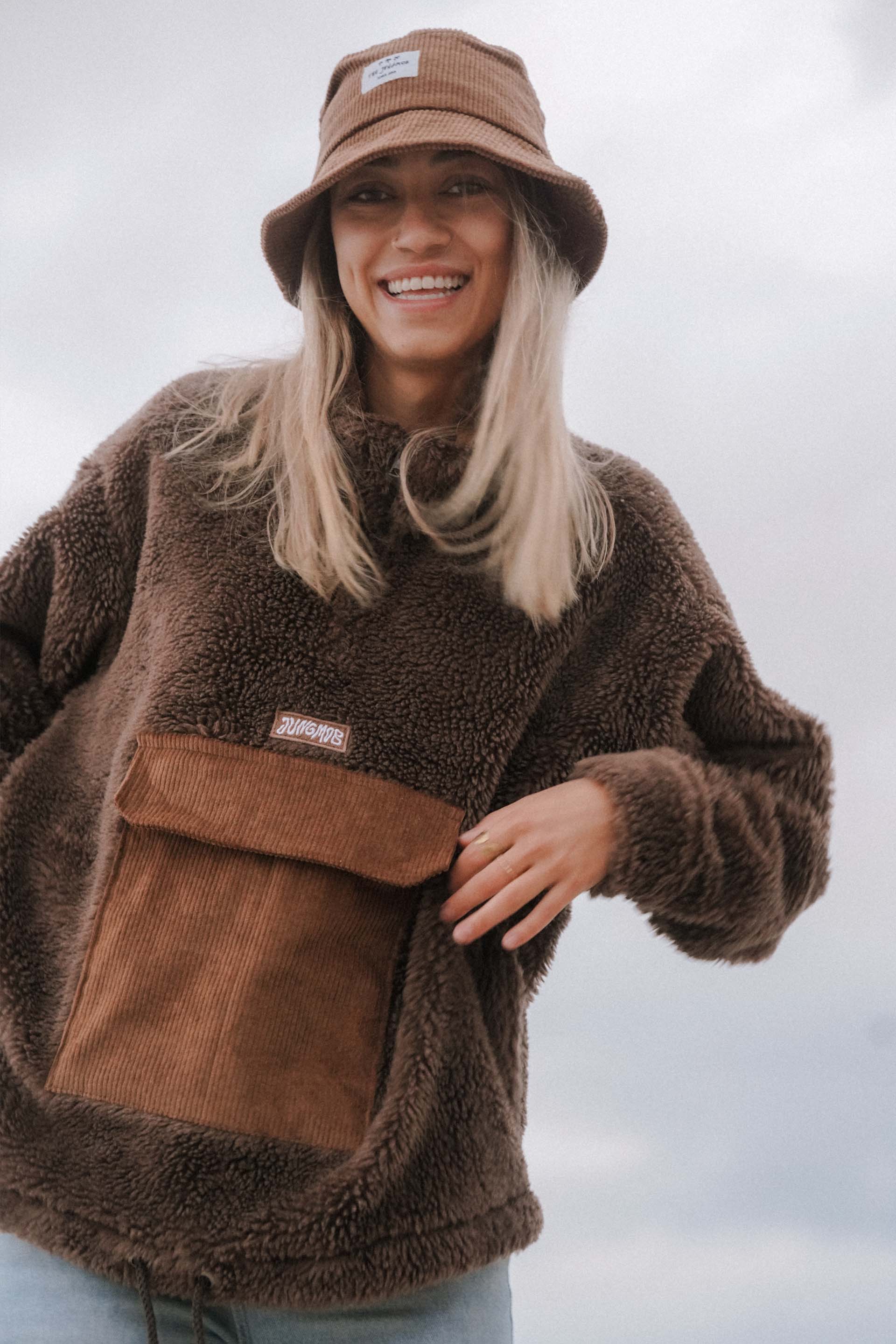 BLUZA TEDDY wraca w najnowszej kolekcji! Nasz super ciepły baranek z dużą kieszenią na suwak wykonaną z brązowego sztruksu.