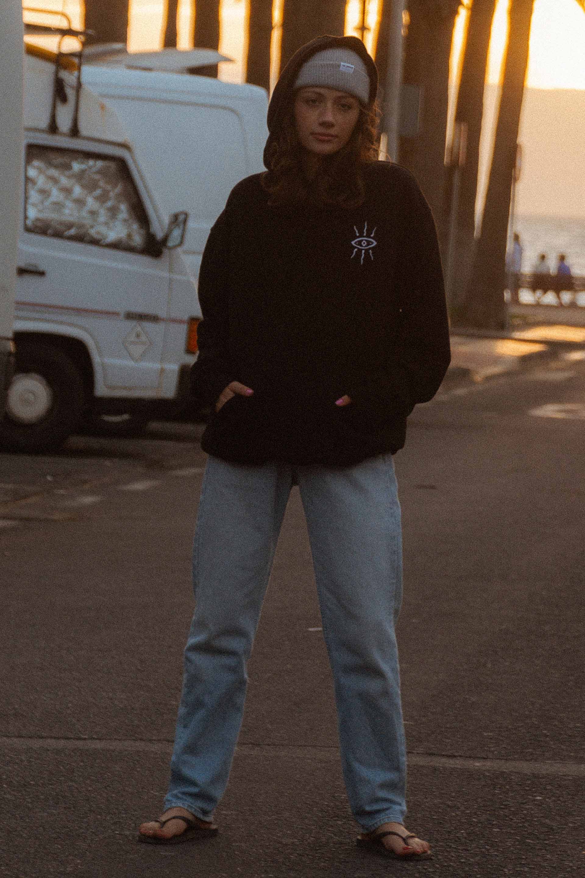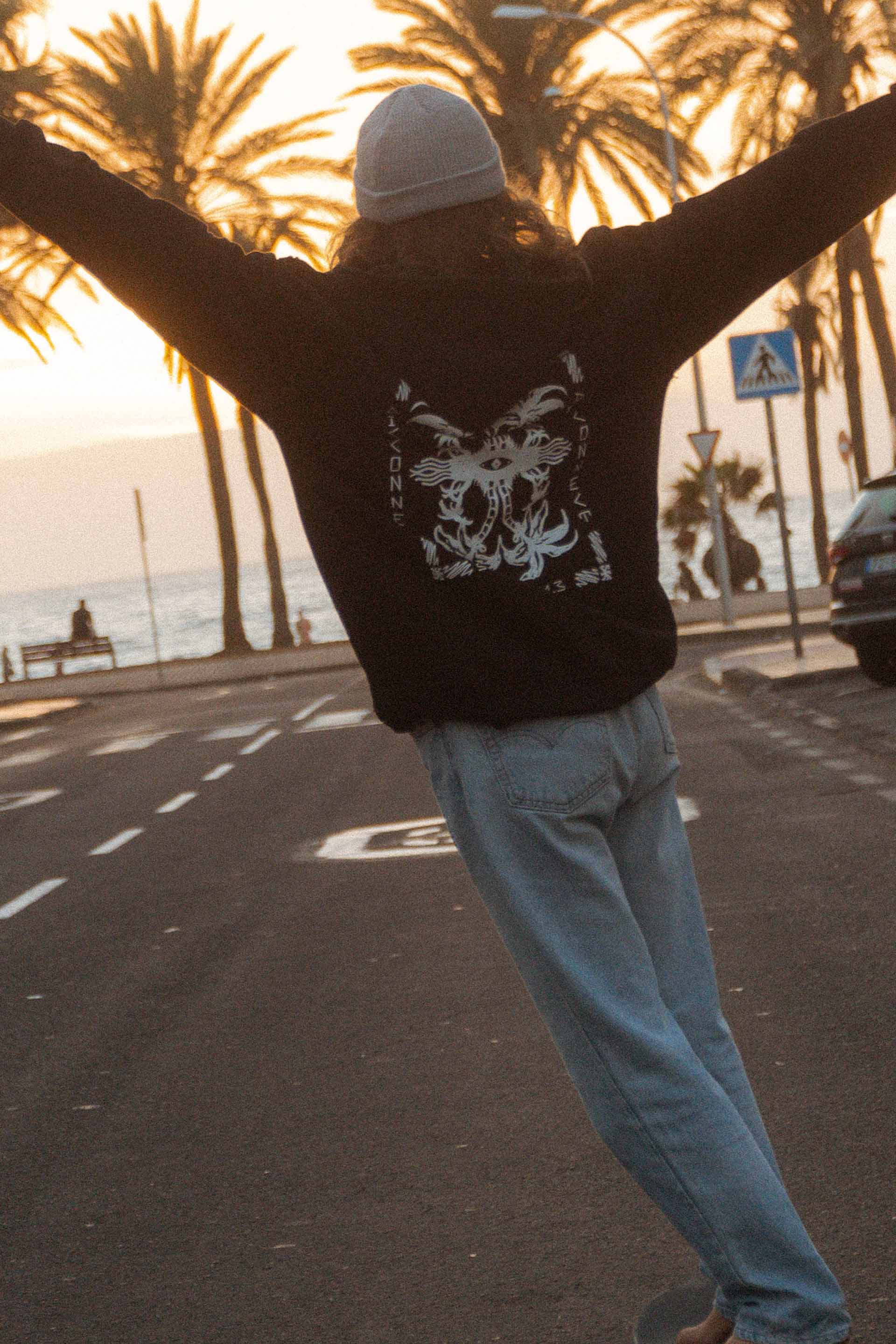 Grafika powstała we współpracy z polskimi grafikami. Bluza z obszernym kapturem z możliwością regulacji bawełnianymi sznurkami.