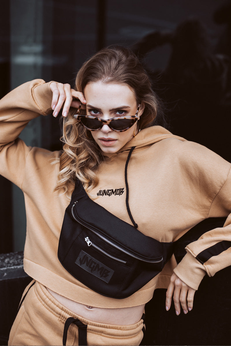 Bluza z kapturem typu crop top w kolorze musztardowym. Wykończona czarnymi lampasami na rękawach. Zdecydowanie letnia pozycja must have! Poczujesz się w niej nie tylko wygodnie, ale i nie jeden zwróci na Ciebie uwagę. Świetnie pasuje do naszych spodni BAGGY MUSTARD. Wykonana z wysokiej jakości bawełny. Na piersi naszywka "JNGMB".