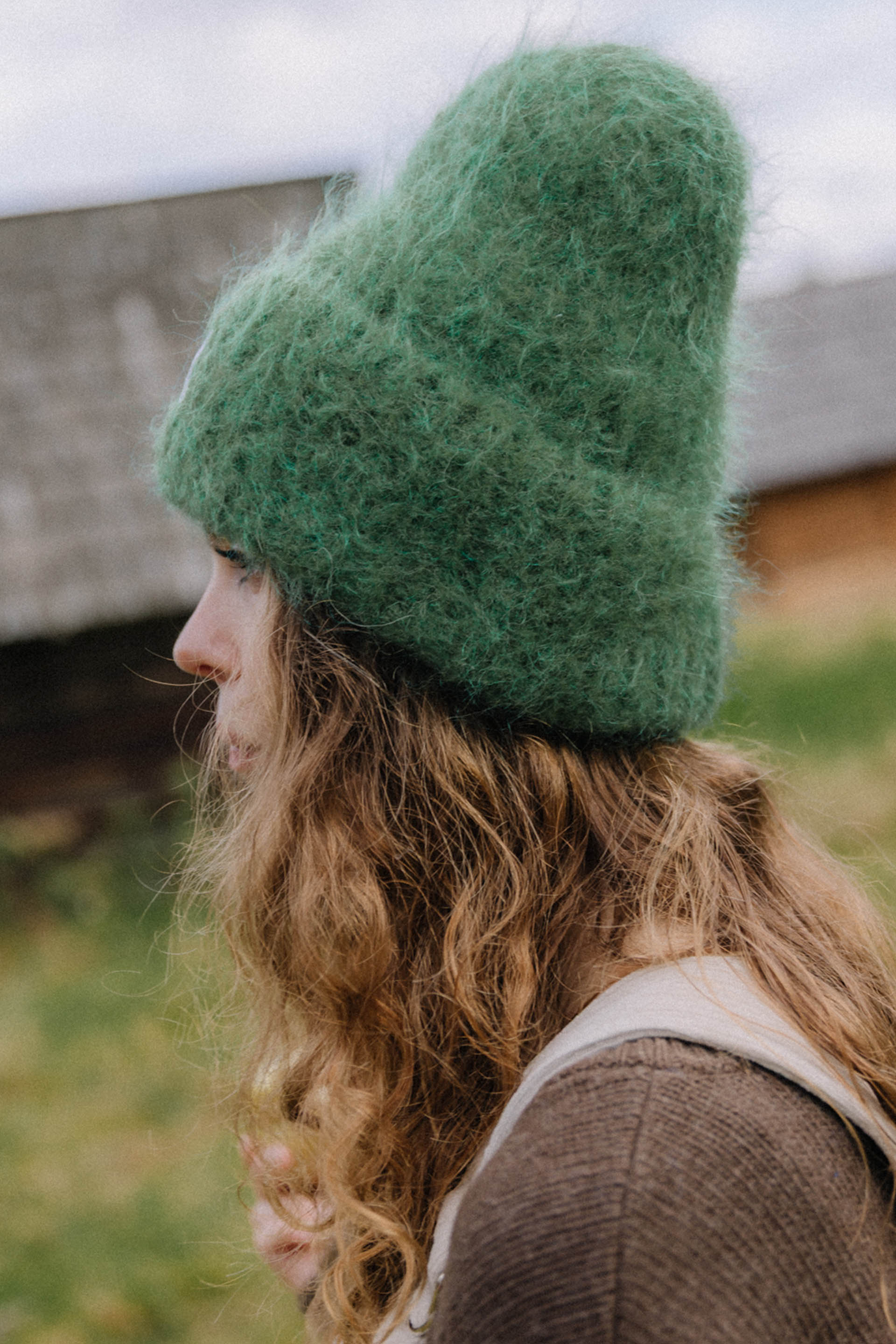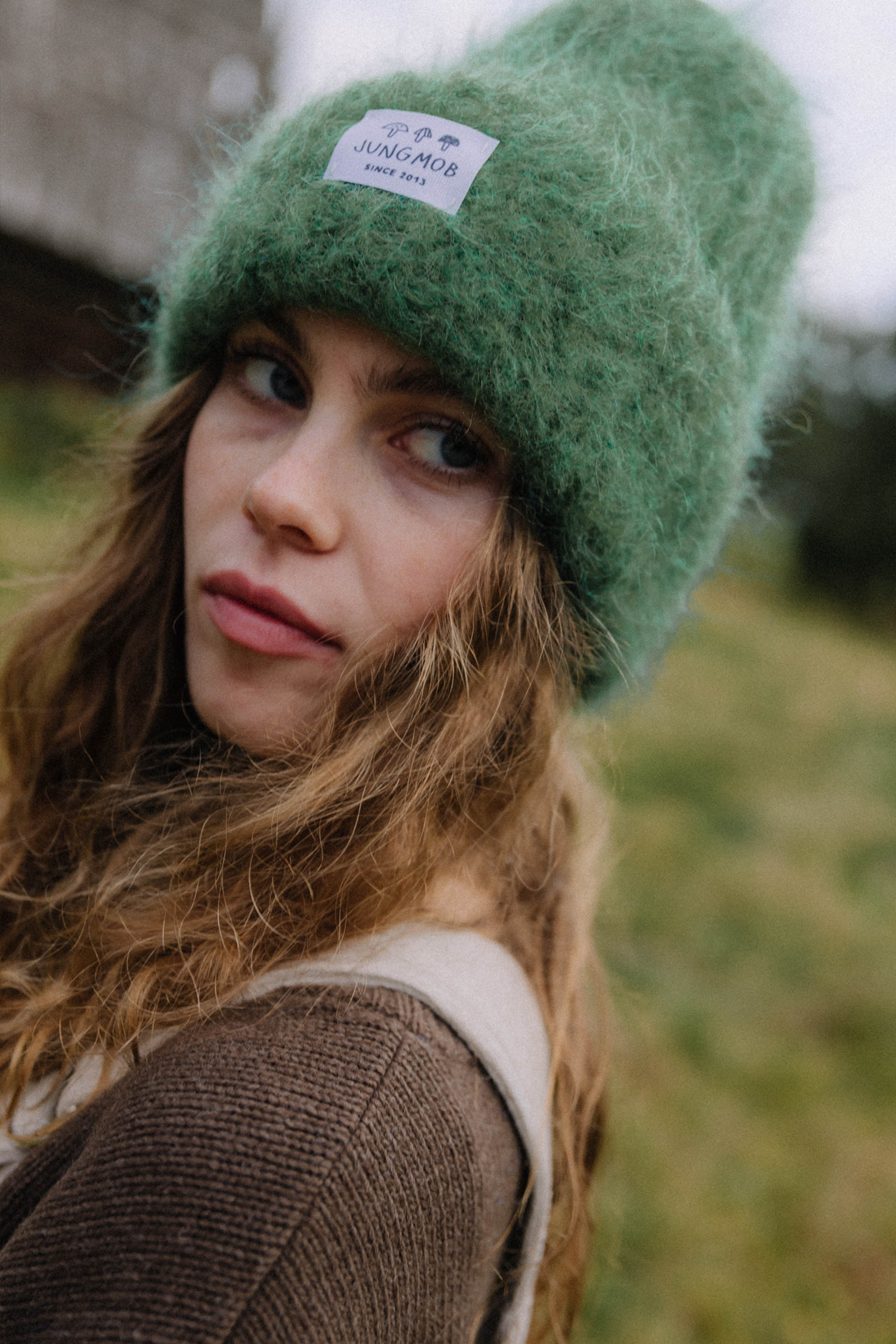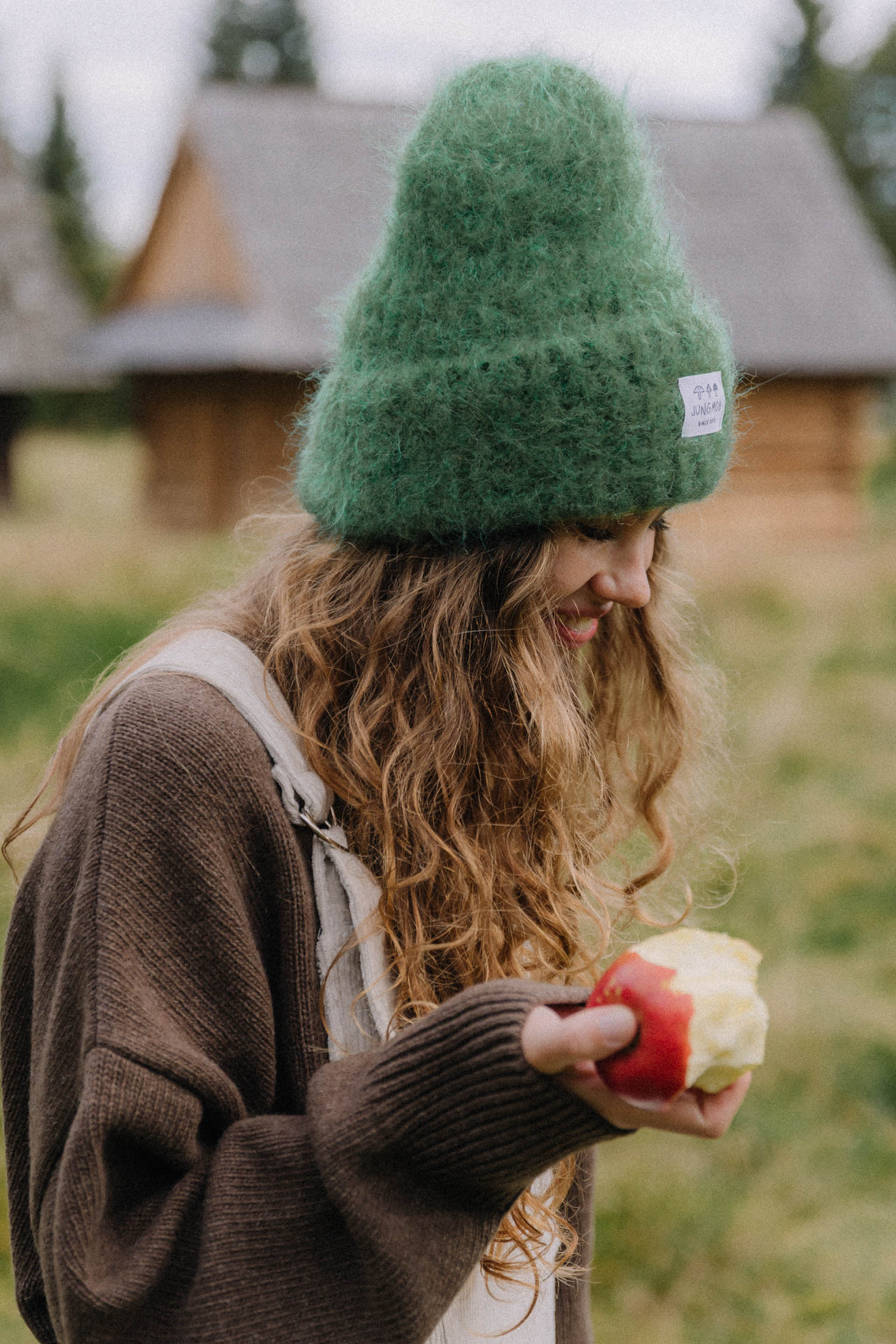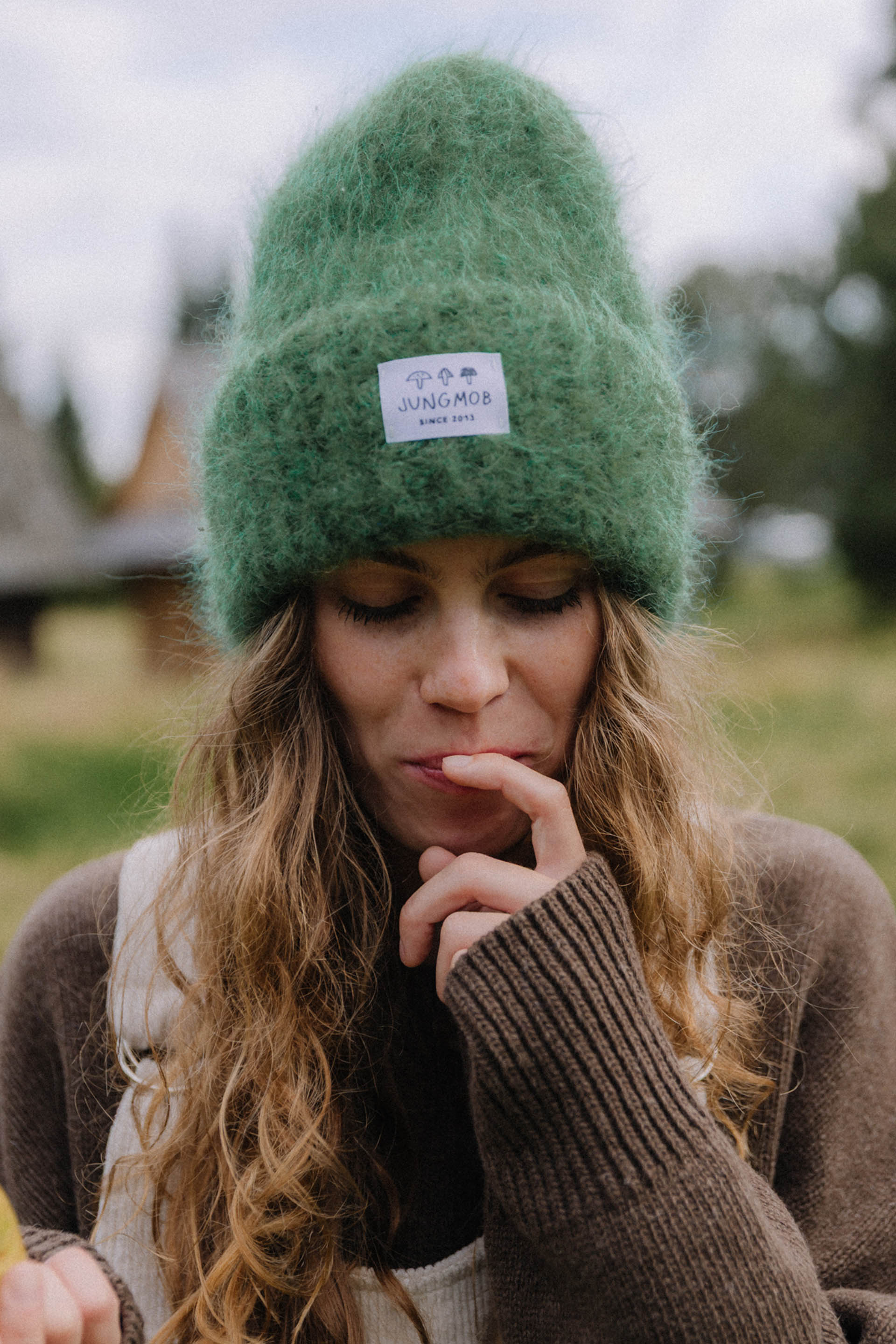 Nowy kolor czapki połączenia moheru i alpaki! Pokochaliście poprzednie wersje, dlatego przychodzimy z kolejną. Zielonkawy odcień idealnie uzupełni jesienną stylizację i zadba abyście nie zmarźli. Czapka jest bardzo mięciutka i nie uciska. Jej wygląd uzupełnia naszywką z logo na przodzie.