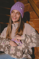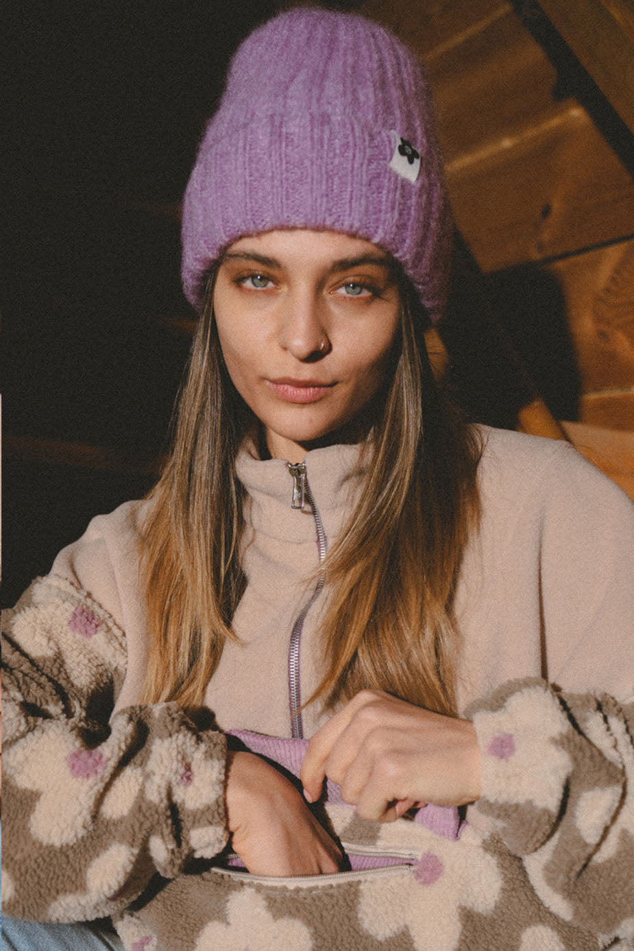 Nowy kolor, uwielbianej przez Was, moherowej czapki tym razem w nowym odcieniu fioletu! FLUFFY BERRY CREAM to przepiękny fioletowy odcień. Będzie idealnym akcentem tej zimy! Czapka jest bardzo mięciutka, nie uciskająca. Dodatkowo znajduje się z przodu urocza naszywka z kwiatkiem.