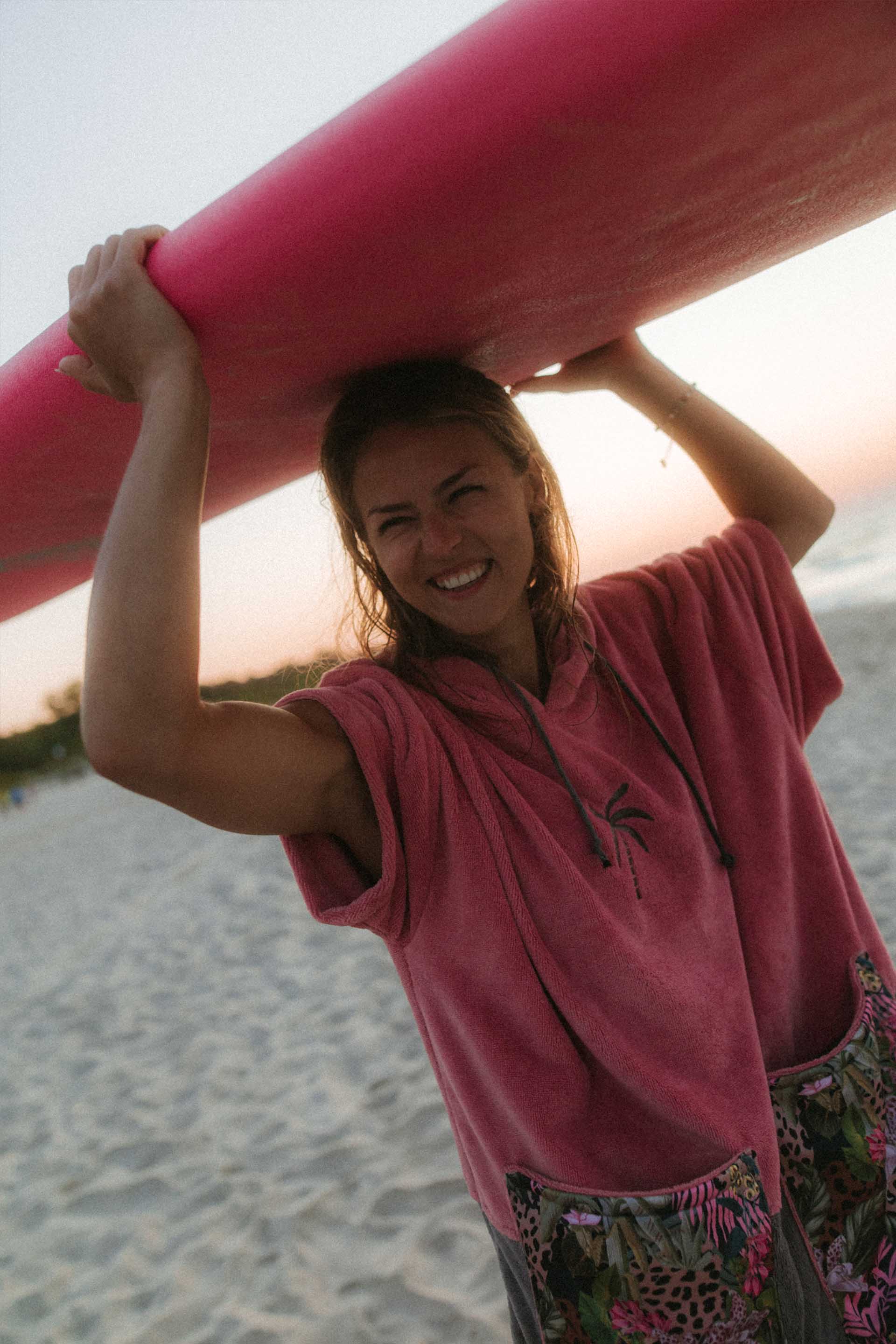 BAMBOO WILD ORCHID - Bambusowe poncho Jungmob - nie ma nic lepszego do zarzucenia na siebie po surfie, niż nasze miękkie, oddychające poncho w pięknym różowym kolorze. Luźny krój, duży kaptur z możliwością ściągnięcia, pojemne kieszenie z tropikalnym wzorem, nie musisz brać kosmetyczki wszystko w nich zmieścisz:) Wykonane z bambusa i bawełny, bardzo delikatne dla skóry.