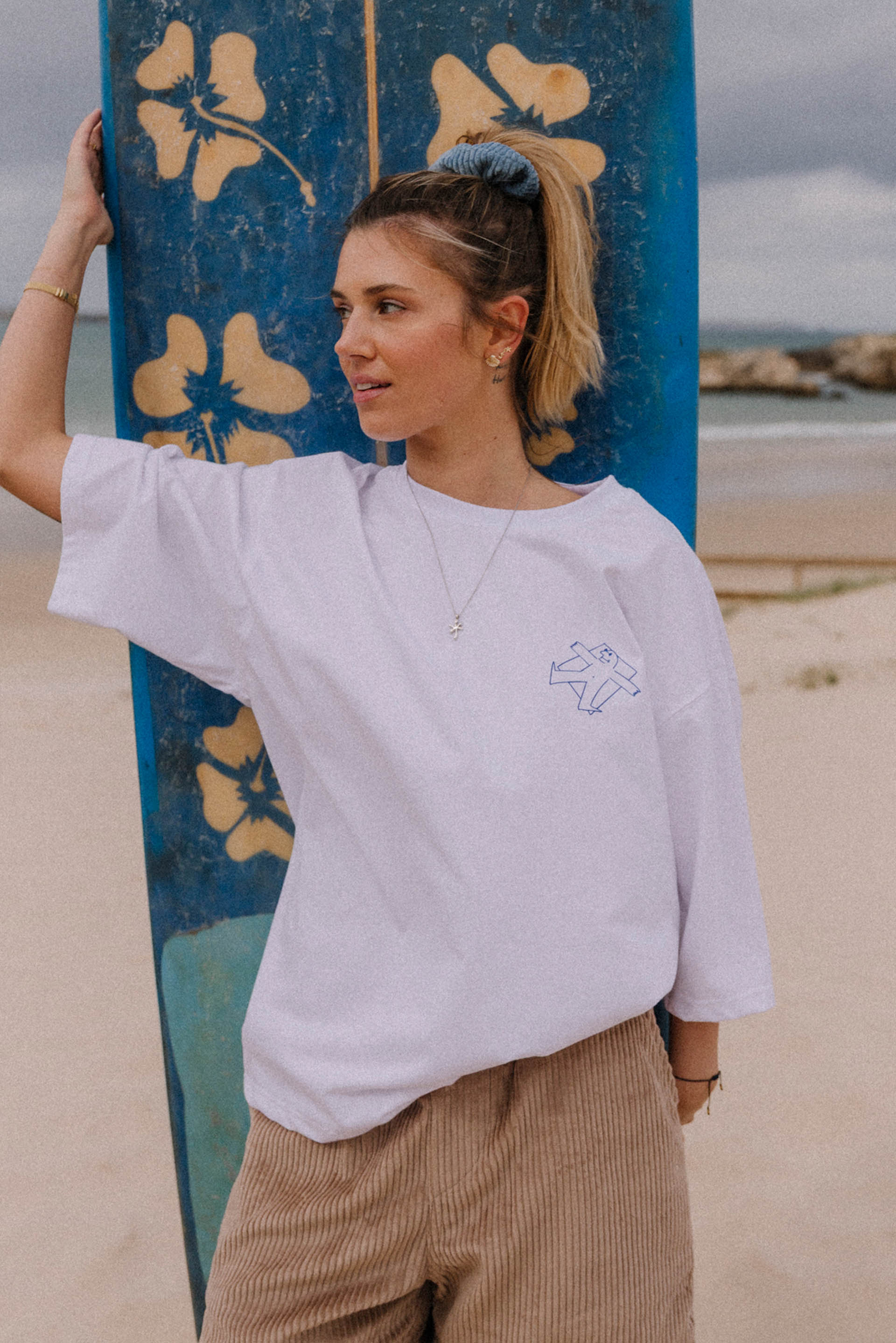 Krój boxy charakteryzuje się wydłużanymi rękawami i szerszym a krótszym krojem niż nasz klasyczny tshirt . Na przodzie nadruk wykonany metodą sitodruku - ziomeczek na ręczniku:), na plecach grafika z napisem. Inspiracja klasycznym surf stylem z lat 90.