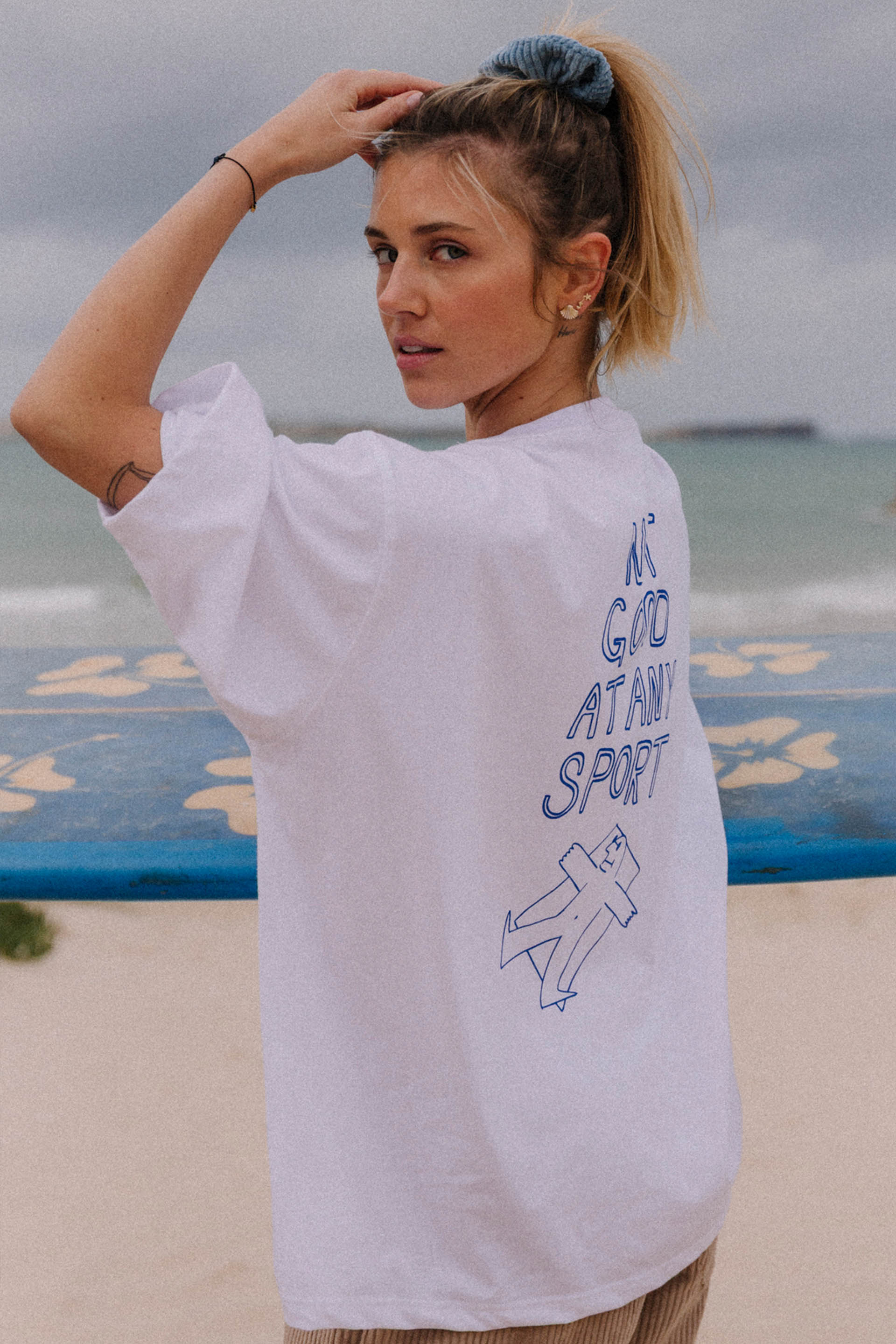 NOT GOOD AT ANY SPORT - t-shirt o kroju BOXY to zupełna nowość w naszej kolekcji. Koszulka w kolorze białym to wyjątkowy model, który łączy w sobie jakość i komfort. Wykonany z wysokiej jakości bawełny o gramaturze 180g.