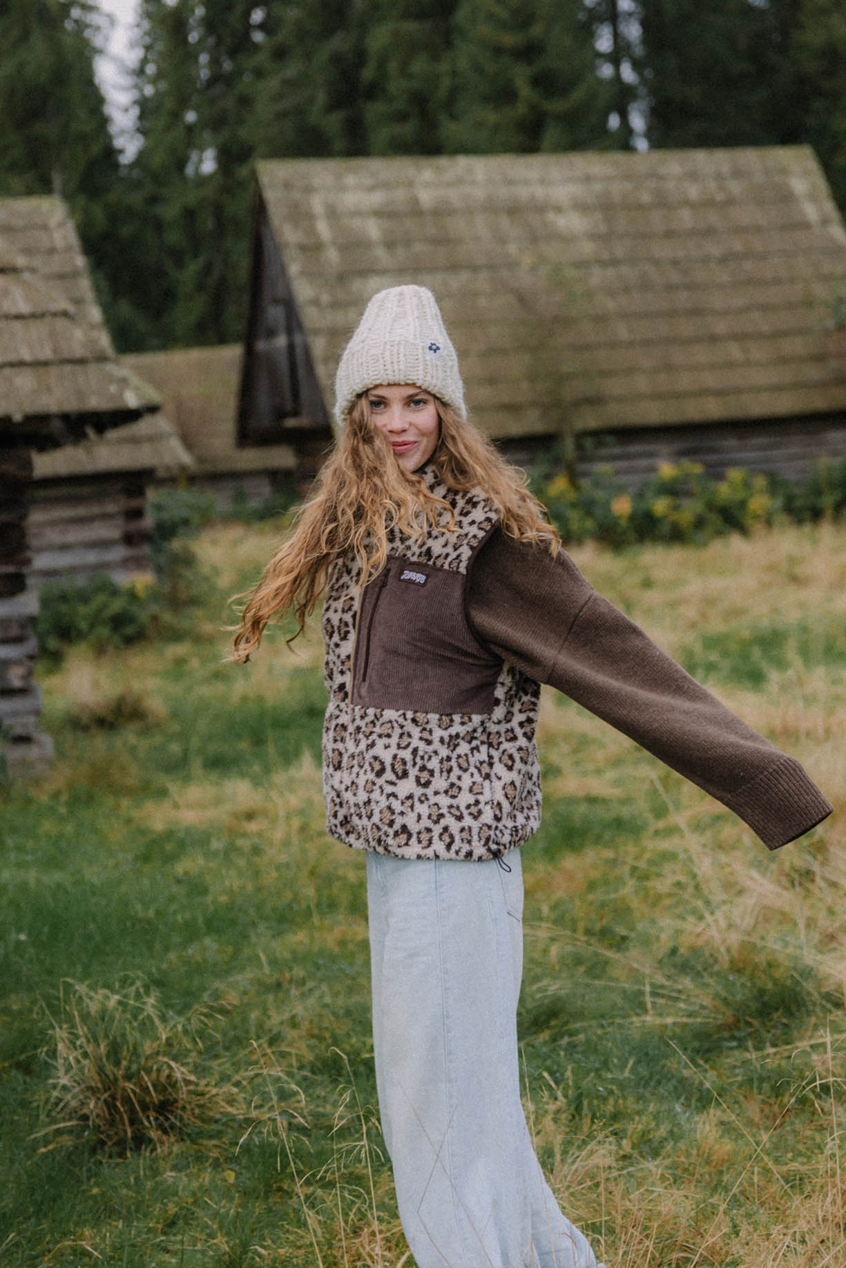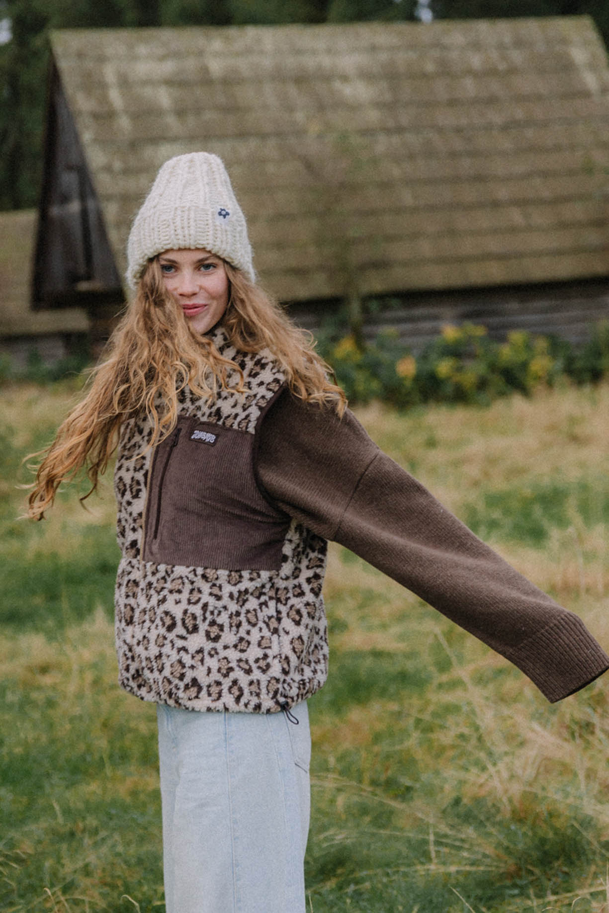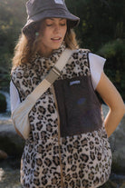 Ta kamizelka łączy dziki charakter panterkowego polaru z oldschoolowym vibem sztruksowego detalu na klatce. Miękki, ciepły materiał z podszewką otuli Cię w chłodniejsze dni, a podszewka, praktyczne boczne kieszenie i ściągacz u dołu dbają o komfort i funkcjonalność. Idealna do zarzucenia na hoodie albo longsleeve – czy to w miejskiej dżungli, czy na plaży o zachodzie słońca.