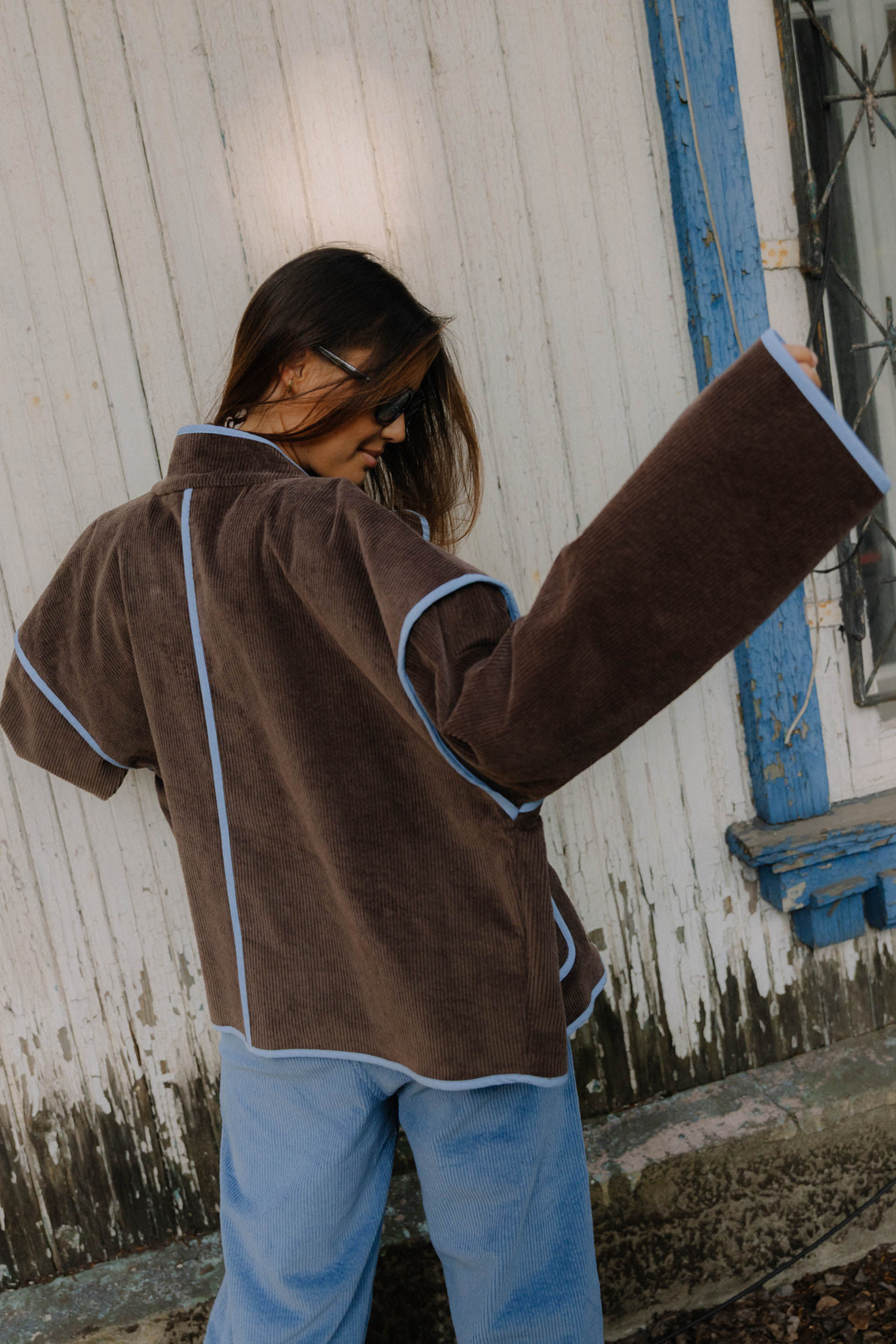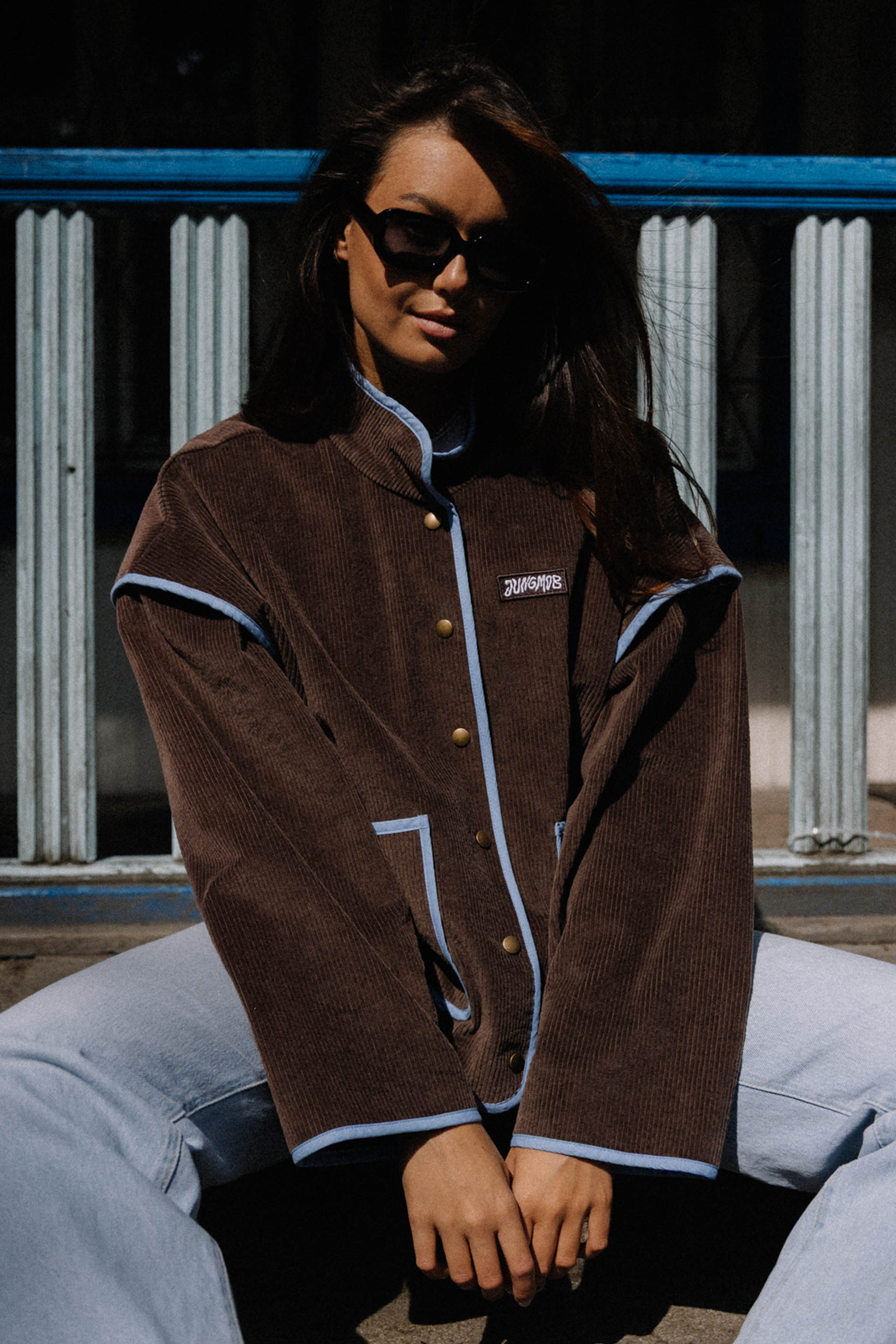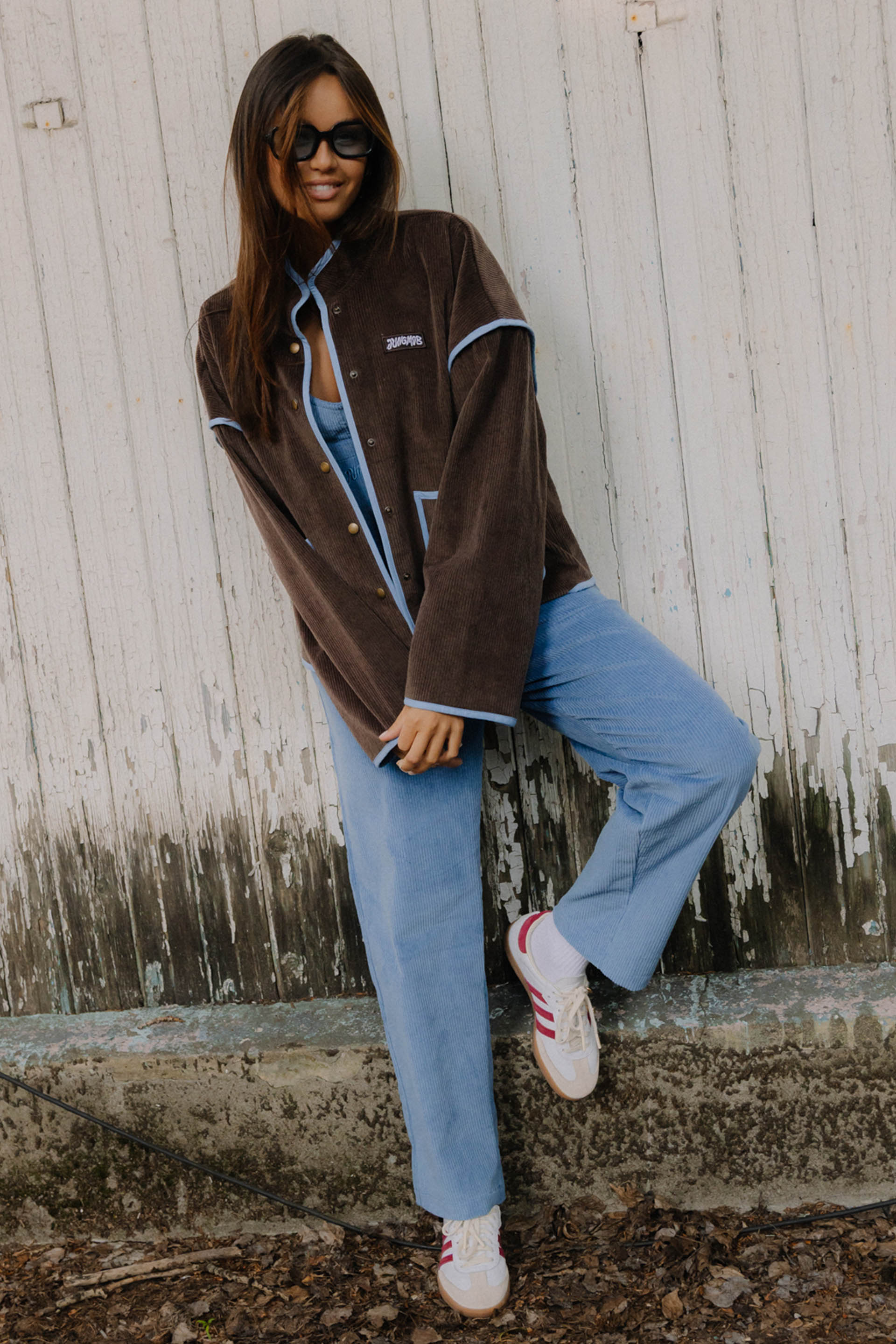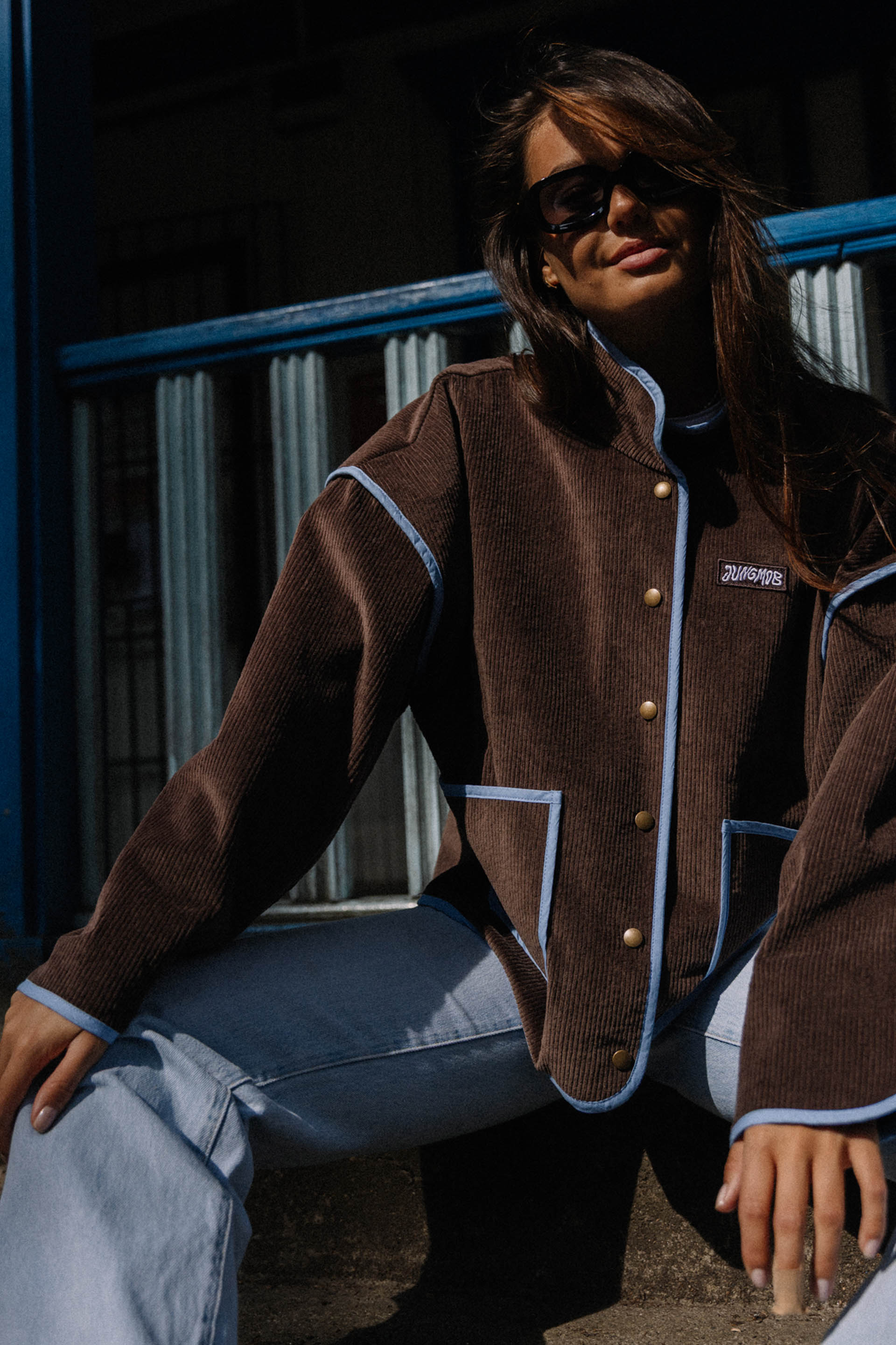 PRAIA CHOCO - letnia kurtka, która łączy vintage vibe z surferskim luzem. Uszyta z pięknego czekoladowego sztruksu, z kontrastowymi detalami w odcieniu błękitu, przywołuje klimat słonecznych dni na plaży i chłodnych wieczorów po sesji na falach. Luźny krój, oversize’owy fason i starannie dopracowane wykończenia sprawiają, że to idealny wybór na każdą przygodę – od road tripów po zachodnim wybrzeżu po spontaniczne wypady za miasto. Zapinana na napy, z głębokimi kieszeniami na wszystkie niezbędne drobiazgi. Wykończona różowymi lampasami, delikatne akcenty z logiem jungmob oraz kwiatuszkiem na kieszeni. Podszyta brązową podszewką,