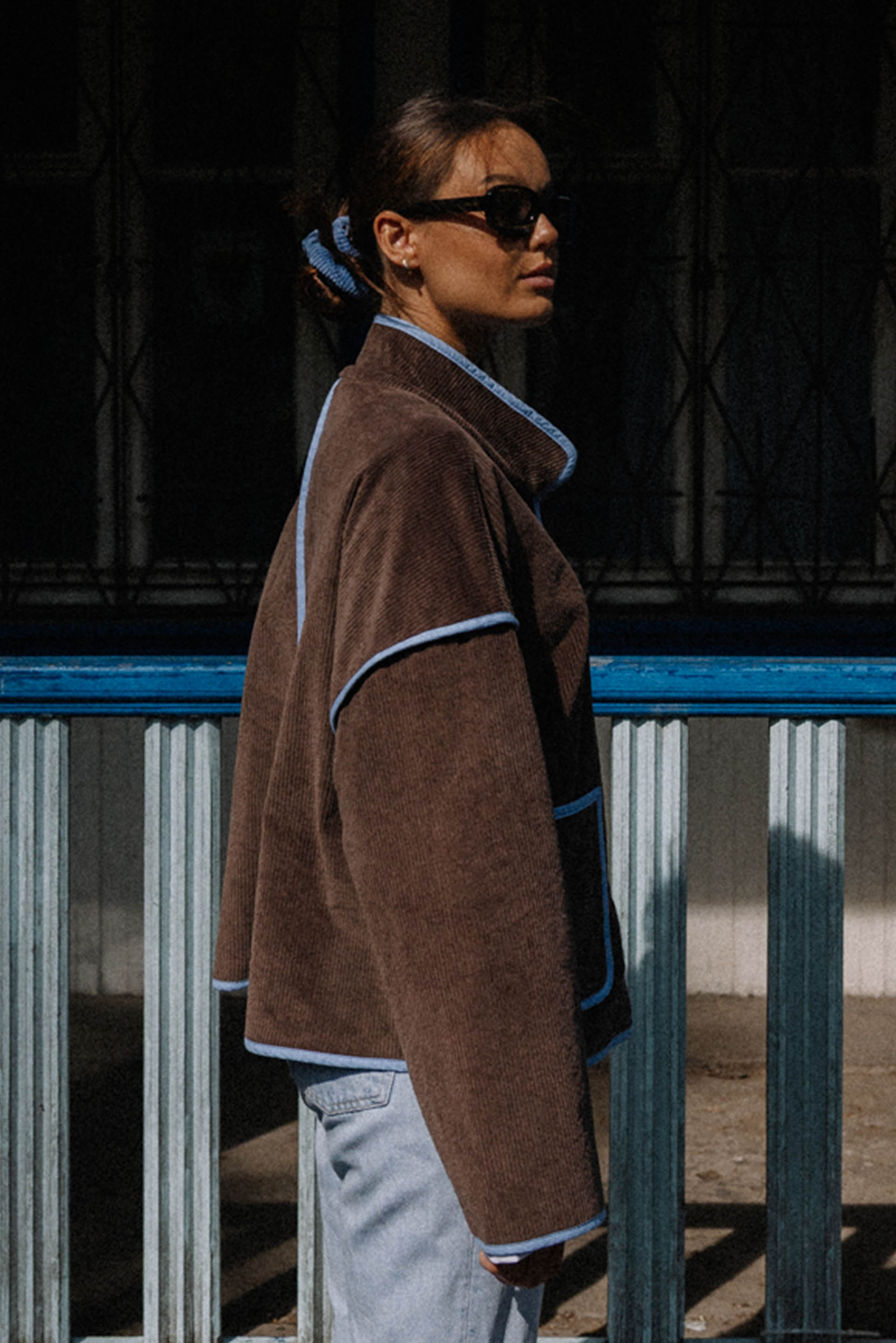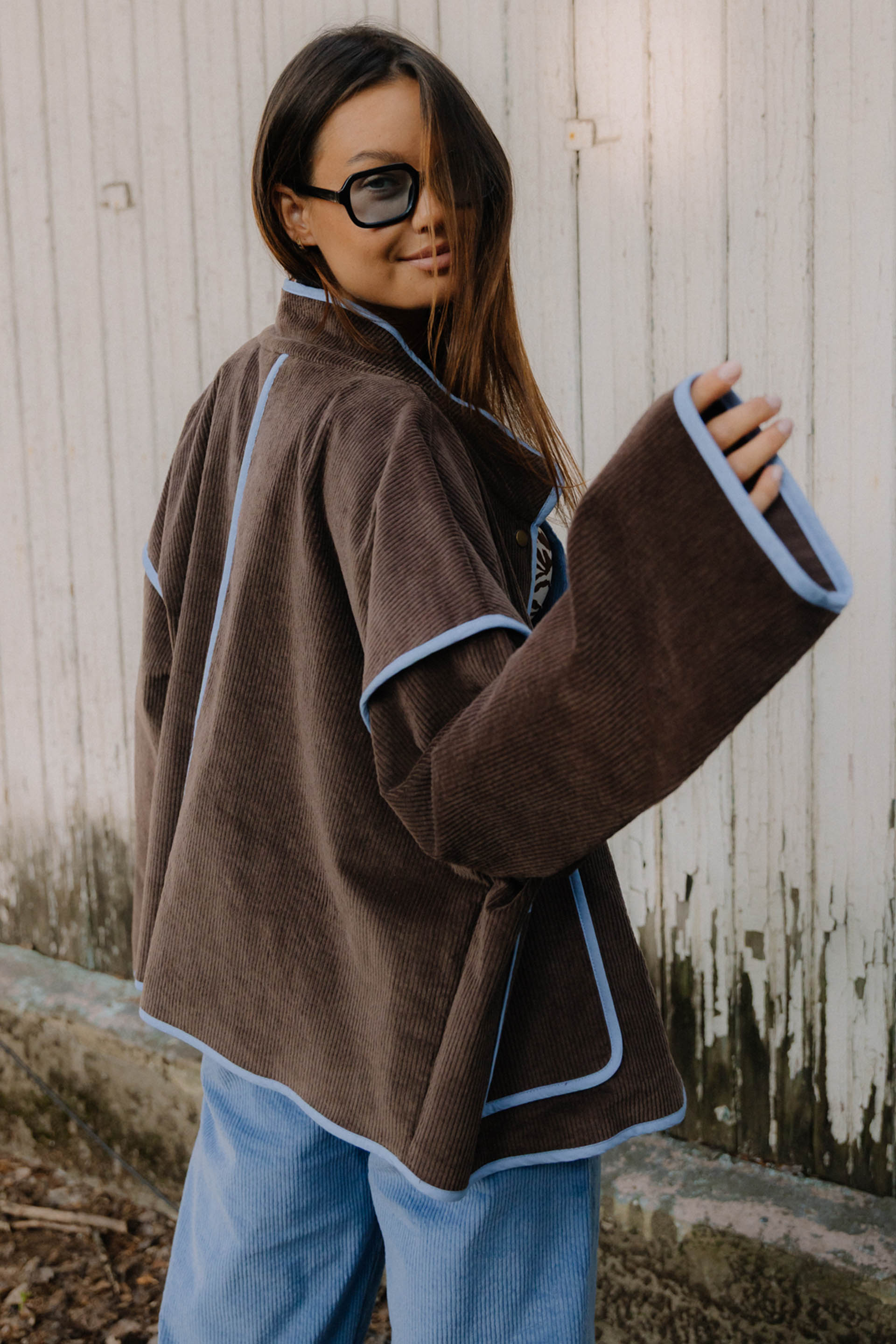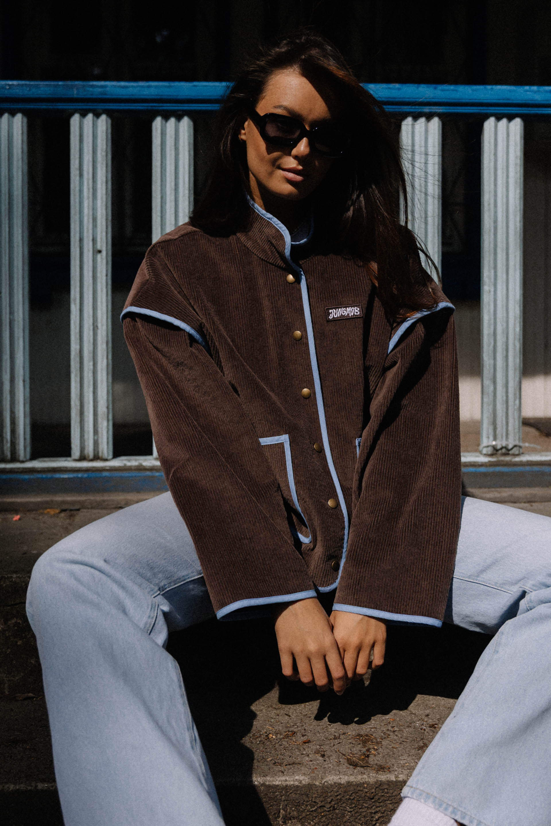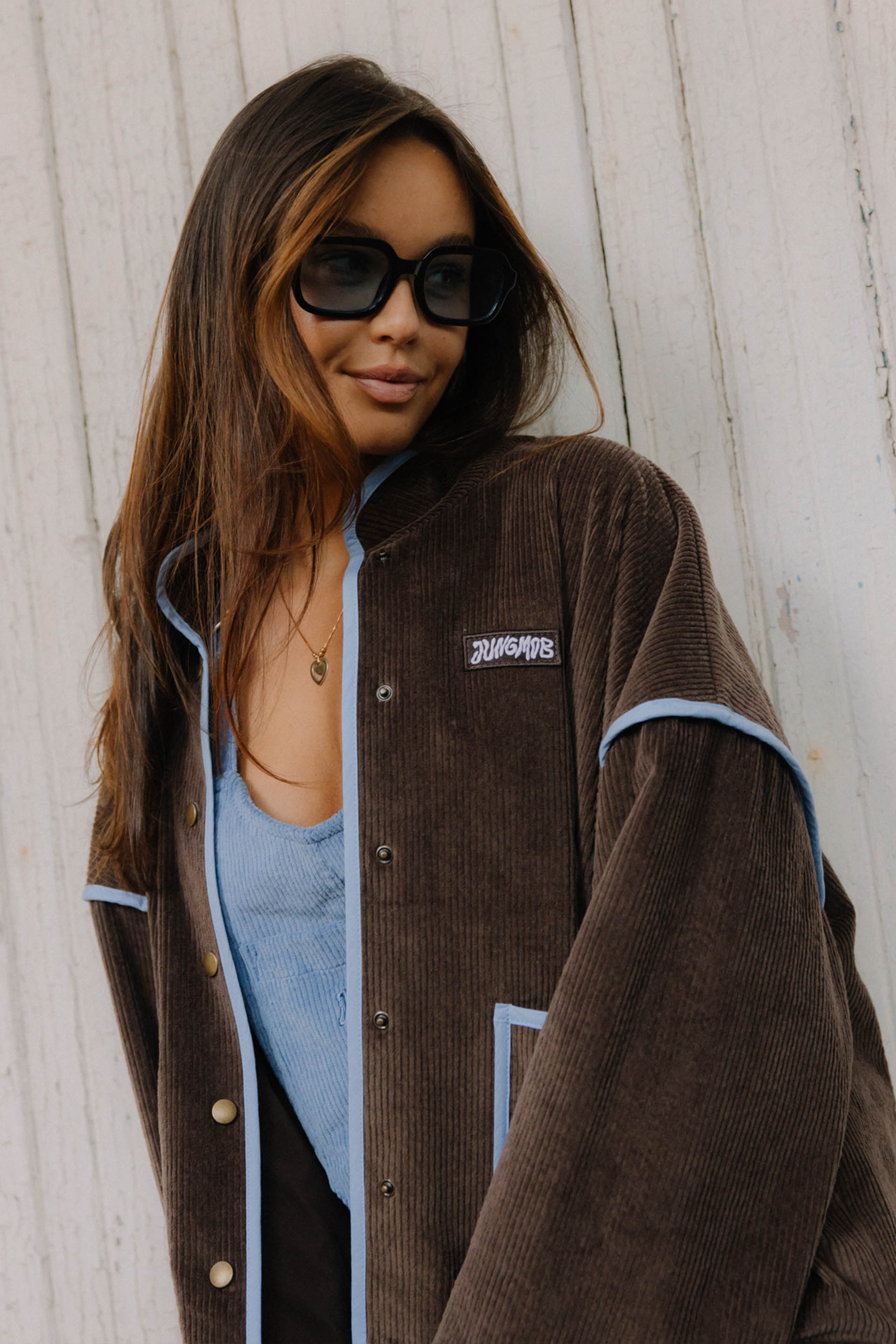 PRAIA CHOCO - letnia kurtka, która łączy vintage vibe z surferskim luzem. Uszyta z pięknego czekoladowego sztruksu, z kontrastowymi detalami w odcieniu błękitu, przywołuje klimat słonecznych dni na plaży i chłodnych wieczorów po sesji na falach. Luźny krój, oversize’owy fason i starannie dopracowane wykończenia sprawiają, że to idealny wybór na każdą przygodę – od road tripów po zachodnim wybrzeżu po spontaniczne wypady za miasto. Zapinana na napy, z głębokimi kieszeniami na wszystkie niezbędne drobiazgi. Wykończona różowymi lampasami, delikatne akcenty z logiem jungmob oraz kwiatuszkiem na kieszeni. Podszyta brązową podszewką,