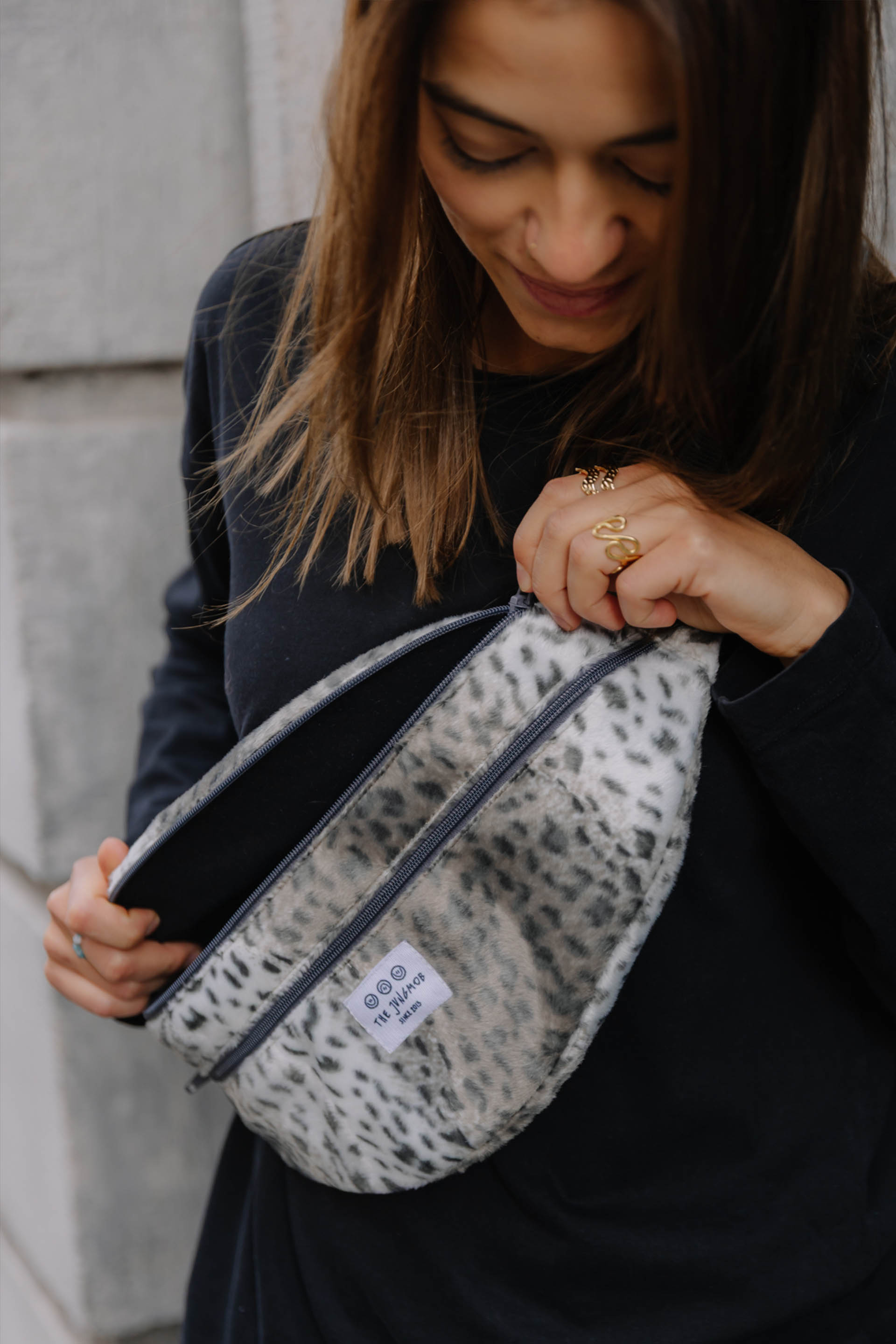 Nerka Ride SNOW PANTHER – większa, pojemna wersja nerki mellow, która zachwyca nie tylko wyjątkowym gepardzim wzorem, ale też funkcjonalnością na co dzień. Wykonana z miękkiego materiału o przyjemnej fakturze, jest idealna na dłuższe wyjścia, wycieczki, zakupy czy imprezy – zmieścisz w niej nie tylko telefon i dokumenty, ale także portfel, kosmetyki, ładowarkę, a nawet notes. Dwie zasuwane kieszenie chronią Twoje rzeczy przed zgubieniem, a szeroki, regulowany pasek pozwala wygodnie nosić ją w stylu crossbody.