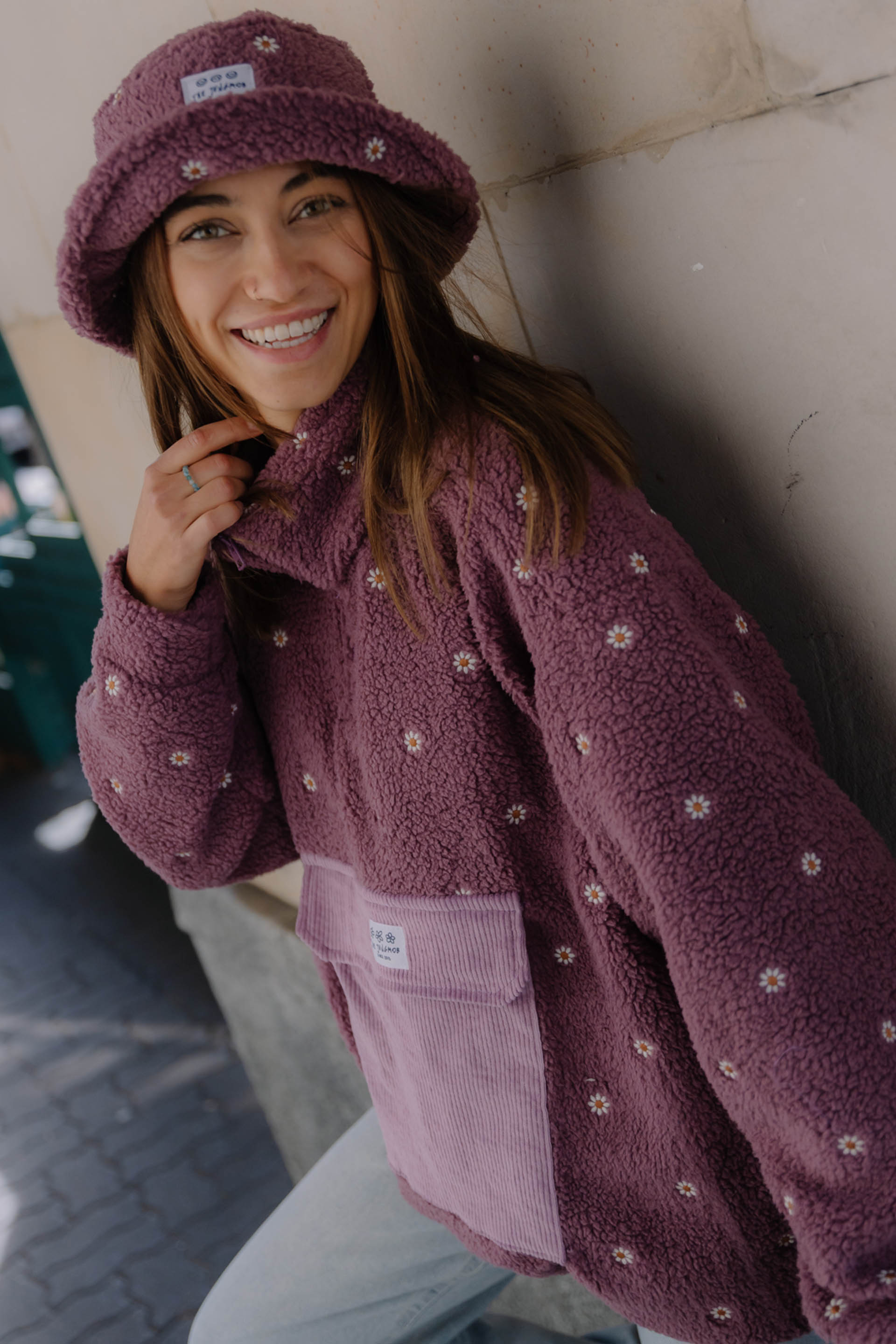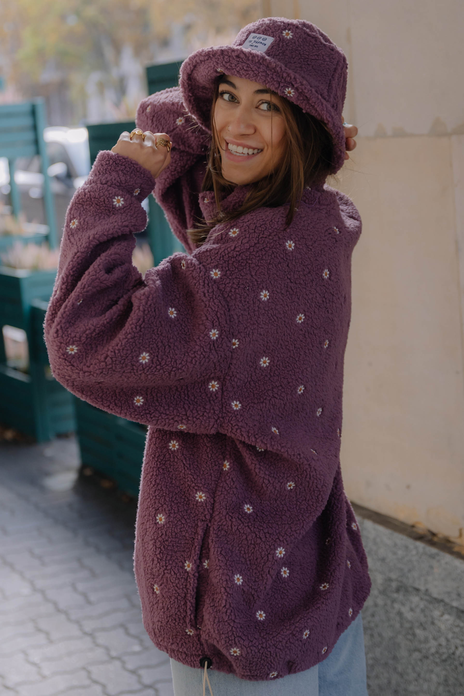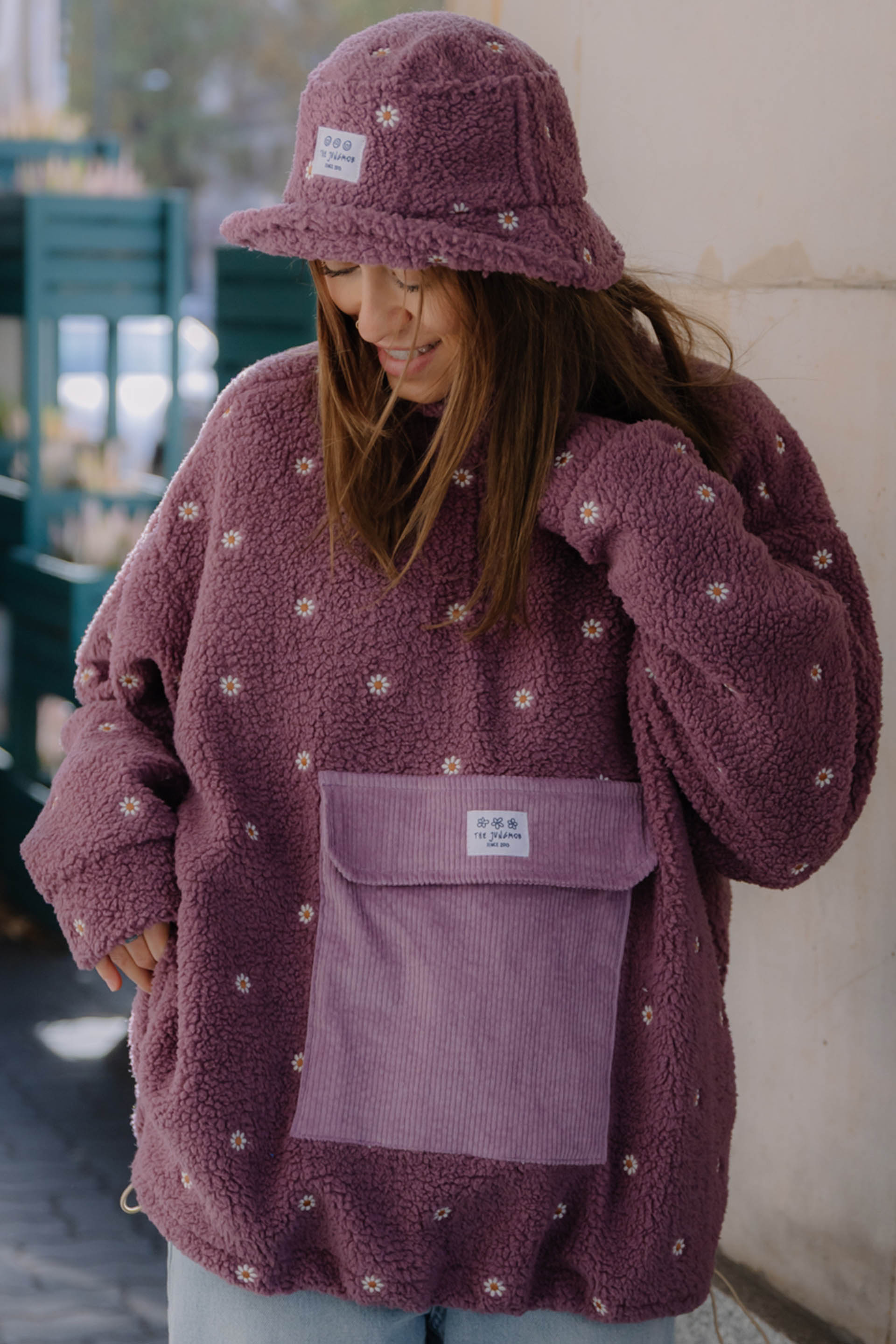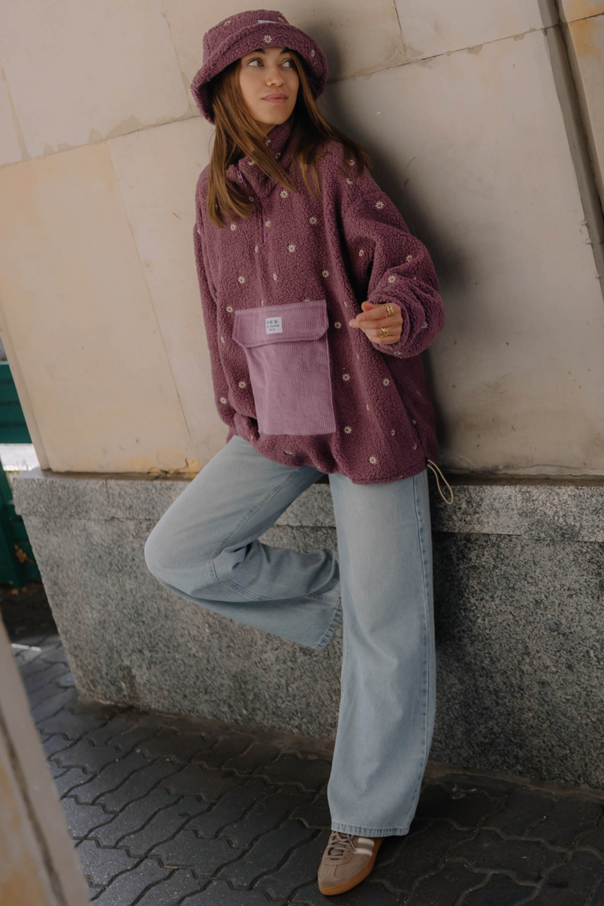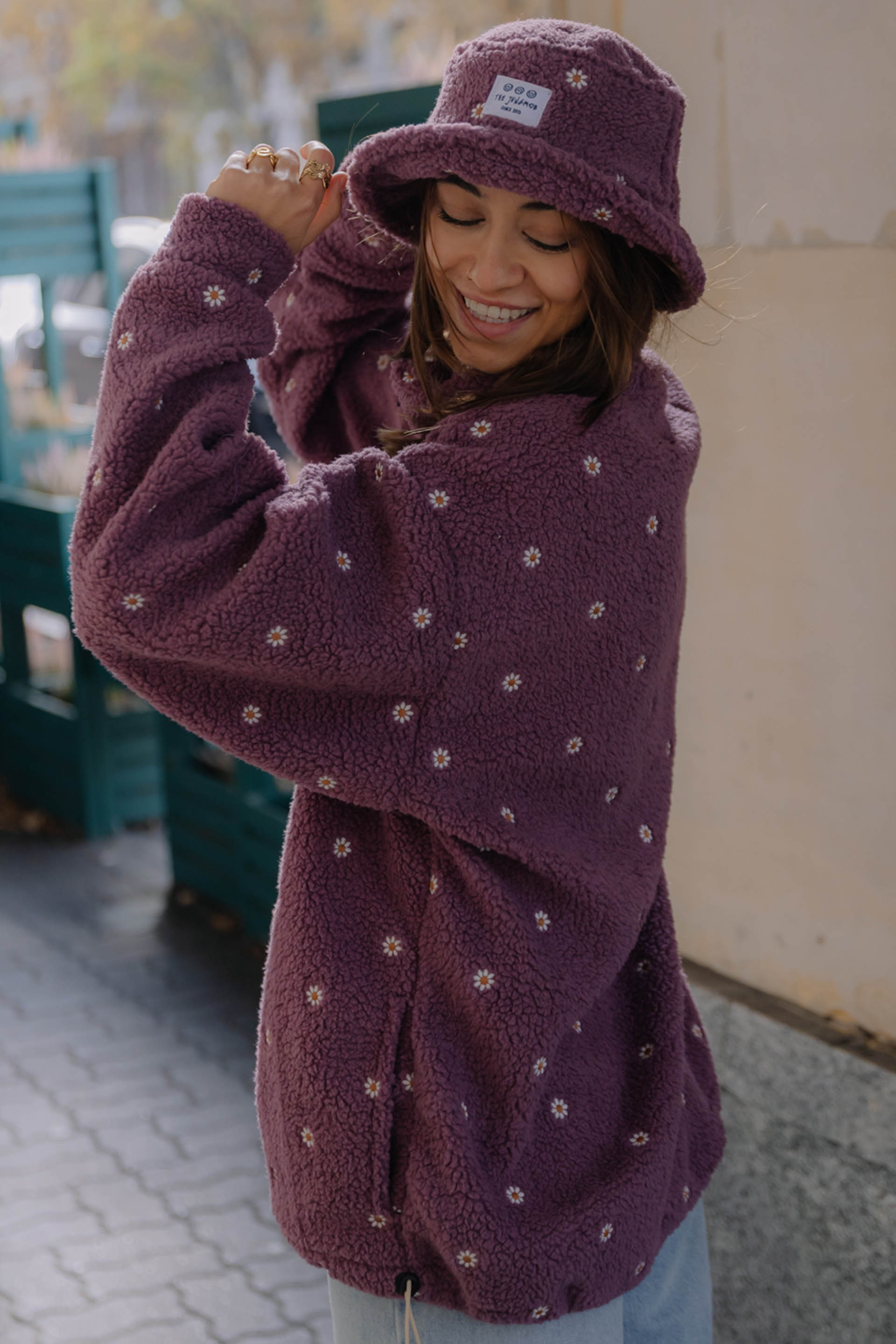 Zapomnij o nudzie! Uroczy baranek TEDDY DAISY to czysta kwintesencja słodyczy i radości! Poczuj się w nim jakby otulała Cię chmurka. Wykonana z miękkiego, puszystego materiału teddy, który przypomina przytulnego misia, zapewnia niesamowite ciepło i wygodę przez cały dzień. Delikatny, przyjemny dla skóry kolor fioletu ożywia każdą stylizację, nadając jej świeżości i pozytywnej energii. Na przedzie ma sztruksową kieszeń kangurkę, w sam raz na telefon, drobne słodkości, czy mały notesik na zimowe pomysły. Bluza jest oversize’owa, nie krępuje ruchów, pasuje do szerokich spodni, dresów lub legginsów. Możesz w niej chillować na spacerze, w kawiarni albo podczas leniwej niedzieli w domu. Haftowane stokrotki dodają cute look’u, aż chce się uśmiechać! Jeśli szukasz czegoś nietypowego i super wygodnego, teddy ze stokrotkami to Twój must-have na ten sezon! Praktyczny suwak pozwala na łatwą regulację temperatury oraz stylu – możesz nosić ją zarówno rozpiętą, jak i zapiętą pod samą szyję. Z nią zima stanie się nie tylko do zniesienia, ale też radosna.