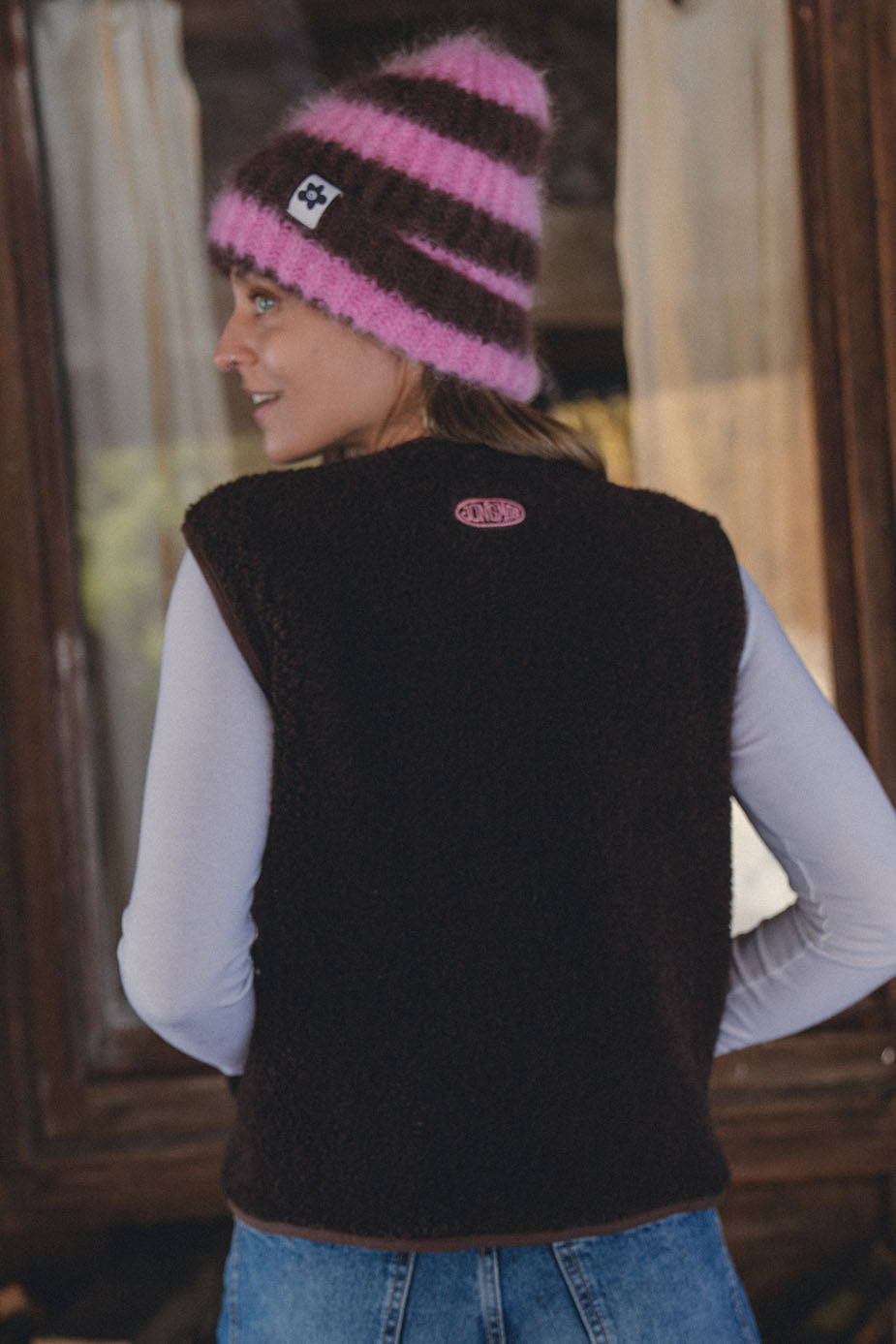 Kamizelka MERINO COOKIE o kroju boxy to idealna warstwa przejściowa, która łączy komfort noszenia z ponadczasowym stylem. Miękka, przyjemna w dotyku wełna merino otula, zapewniając naturalne ciepło bez uczucia ciężkości. Wykonana z wysokiej jakości wełny merino o miękkiej, przyjemnej w dotyku strukturze, Materiał doskonale reguluje temperaturę, oddycha i sprawdza się zarówno w chłodniejsze poranki, jak i podczas zmiennej pogody. To idealna opcja na przejściowe pory roku, chłodne poranki i wieczory albo wtedy, gdy potrzebujesz czegoś ekstra, ale nie chcesz zakładać kurtki. Krój boxy, zapinany na napy nadaje kamizelce uniwersalny charakter i pozwala łatwo dopasować ją do różnych stylizacji. Głęboki, brązowy kolor dodaje wyrazistości i elegancji, a starannie wykończone lamówki podkreślają dbałość o detale. Dwie boczne kieszenie zostały zaprojektowane z myślą o ogrzaniu twoich dłoni, lub noszeniu drobiazgów. Kamizelka świetnie sprawdzi się noszona samodzielnie lub jako dodatkowa warstwa na bluzę czy sweter. Stworzona do noszenia na co dzień – do miasta, na spacer, na szybkie wyjście z domu albo długie, spokojne weekendy.