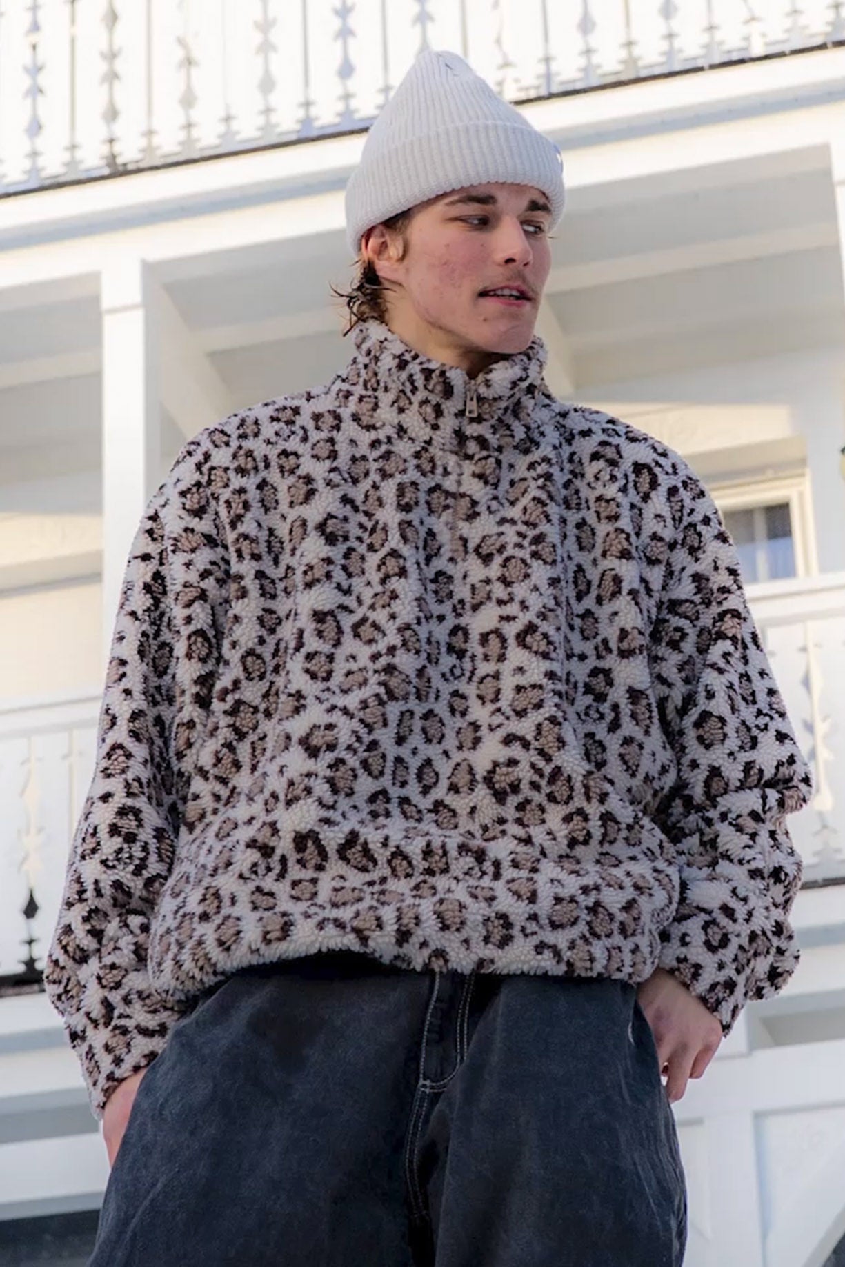 Lubisz wyraziste wzory i odważny styl? Bluza polarowa VANILLA PANTHER wykonana z wysokiej jakości polaru typu TEDDY – miękka, puchata i wyjątkowo ciepła. Łączy komfort noszenia z charakterystycznym designem w panterkowy wzór, tworząc mocne połączenie miejskiego stylu z drapieżnym akcentem. Oversize’owy krój oraz podwyższony kołnierz skutecznie chronią przed chłodem, jednocześnie zapewniając pełną swobodę ruchów. Zamek błyskawiczny z przodu ułatwia zakładanie i zdejmowanie. Bluza sprawdzi się zarówno jako warstwa wierzchnia w cieplejsze dni, jak i dodatkowe ocieplenie pod kurtkę. Świetnie wygląda w zestawieniu z jeansami i sneakersami, ale równie dobrze odnajdzie się jako wyrazisty element casualowych stylizacji. Ściągacz u dołu pozwala na lepsze dopasowanie do sylwetki. Idealna na wietrzne dni, spacery oraz górskie wędrówki. Boczne kieszenie umożliwiają ogrzanie zmarzniętych dłoni i przechowanie drobnych przedmiotów. Doskonały wybór na chłodne dni na stoku i na wieczorny odpoczynek po surfowaniu – przez cały rok.