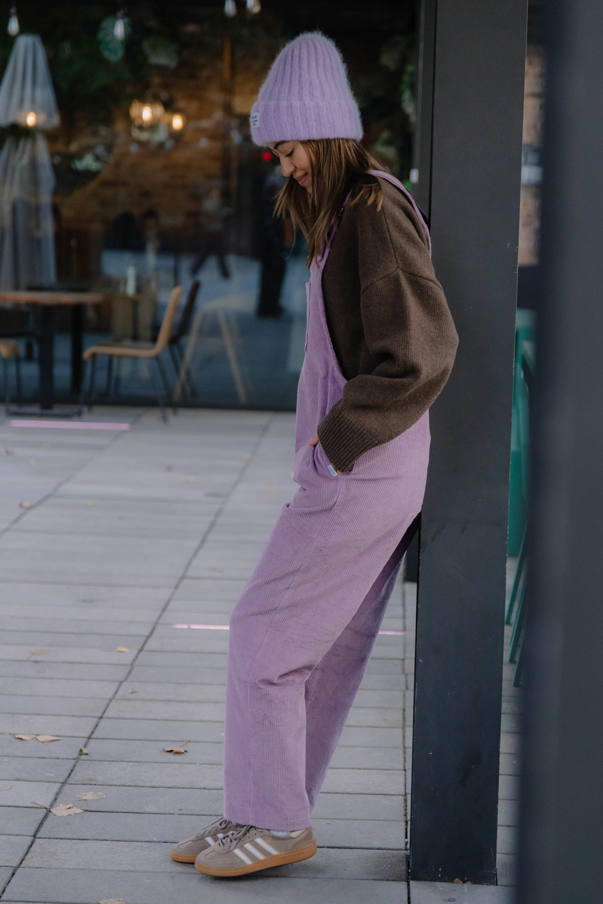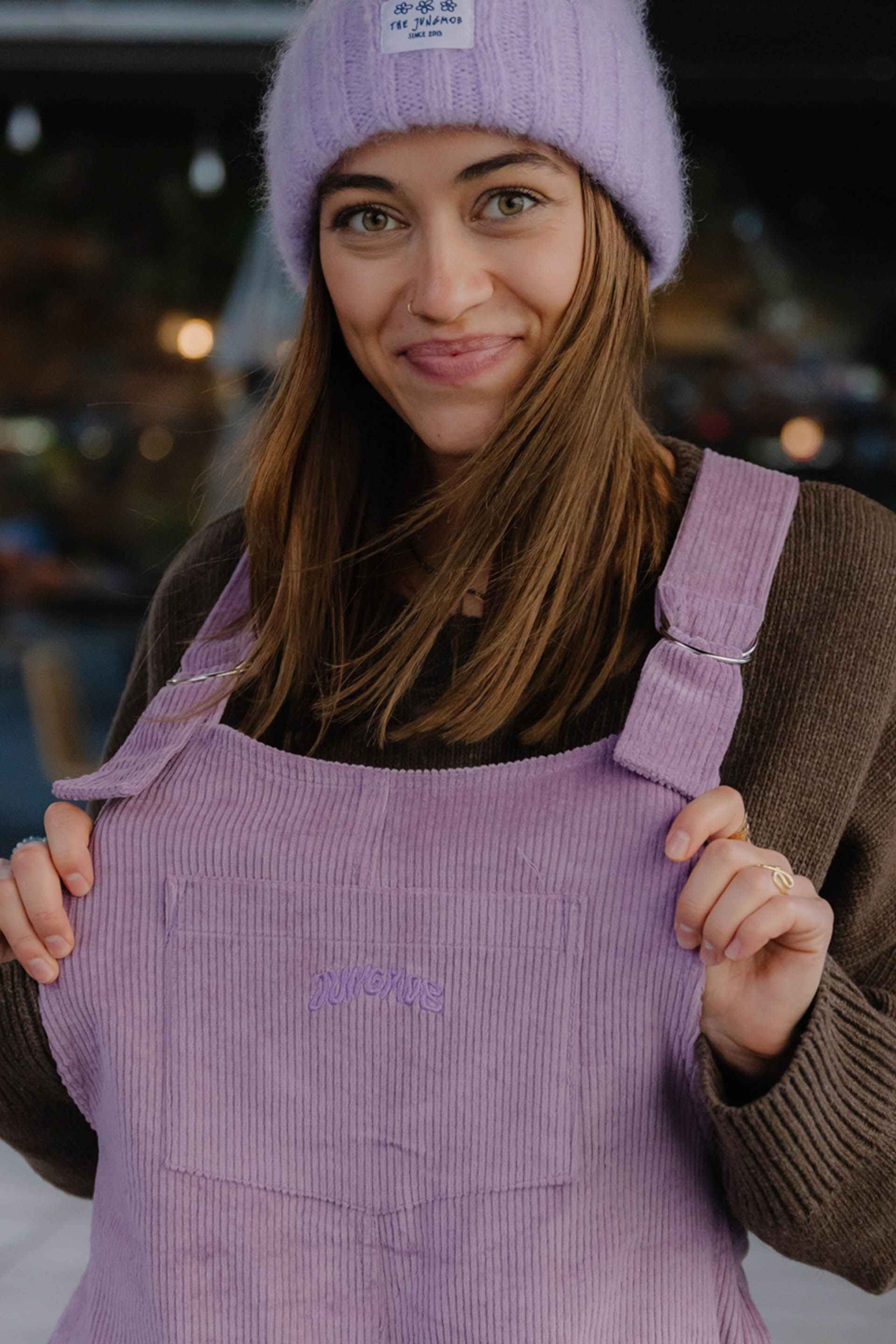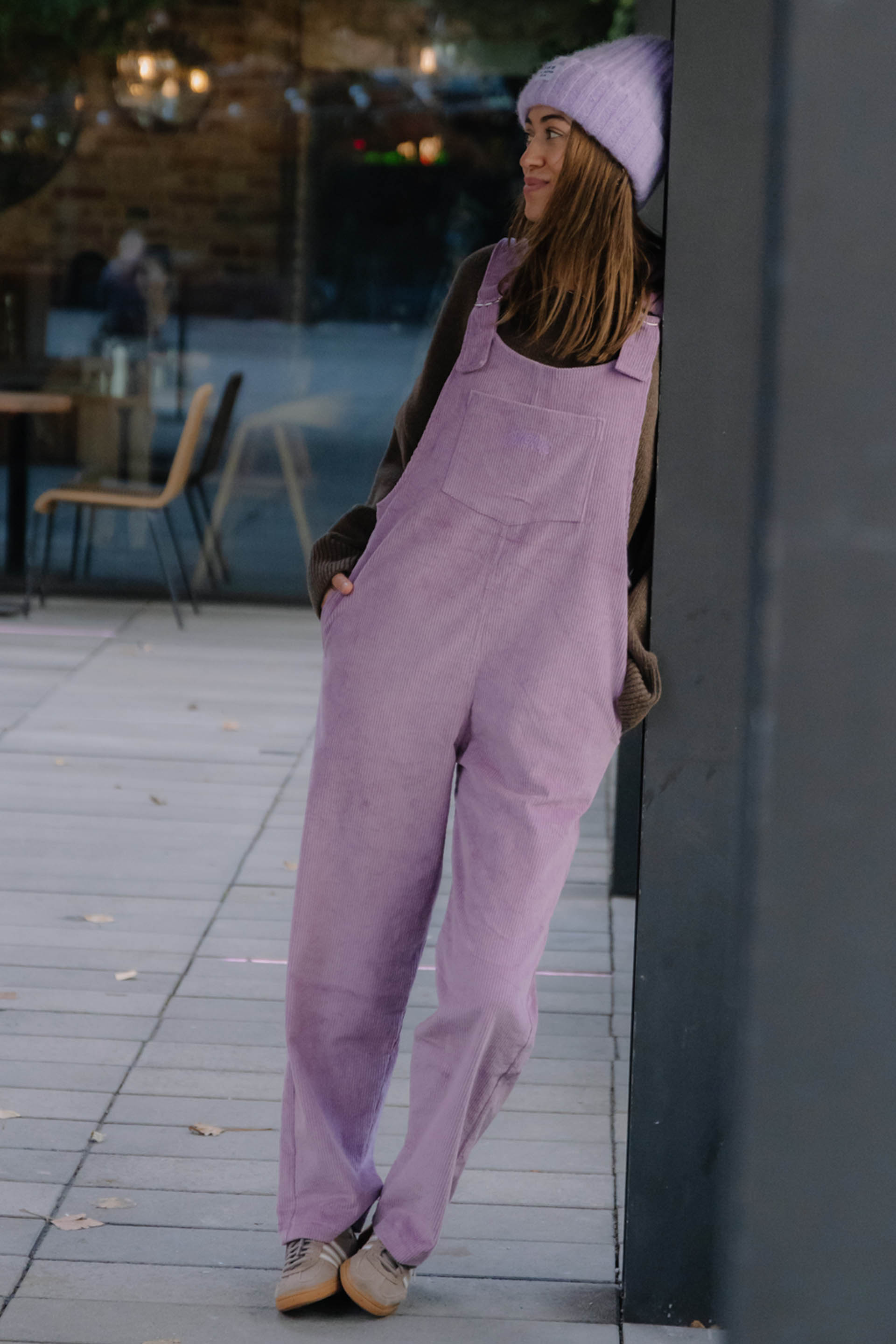 Nowy odcień ogrodniczek, tym razem w bardziej spokojnym odcieniu. Klasyk lat 90 w pięknym lawendowym odcieniu. Kochacie je za luz i wygodę, które daje wykonanie z miękkiego, przyjemnego dla ciała sztruksu. Będą świetnie wyglądać z założoną pod nie bluzą, czy longsleeve’m. Nogawki można puścić luźno albo podwinąć na dole - jest duża dowolność, wykaż się kreatywnością i wyraź siebie! Z przodu kieszonka z wyhaftowanym logo "Jungmob". Długość szelek można regulować za pomocą klamerek.
