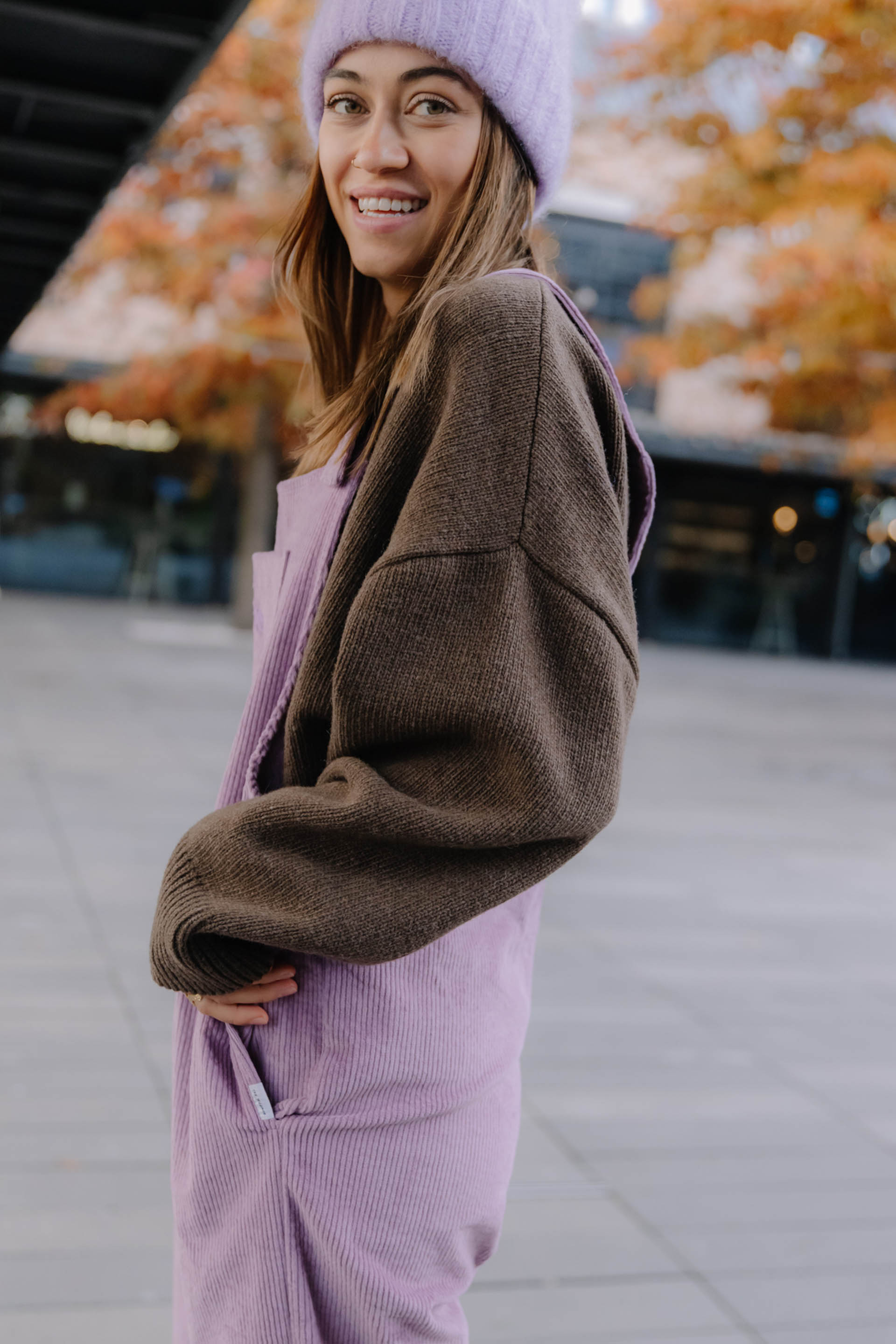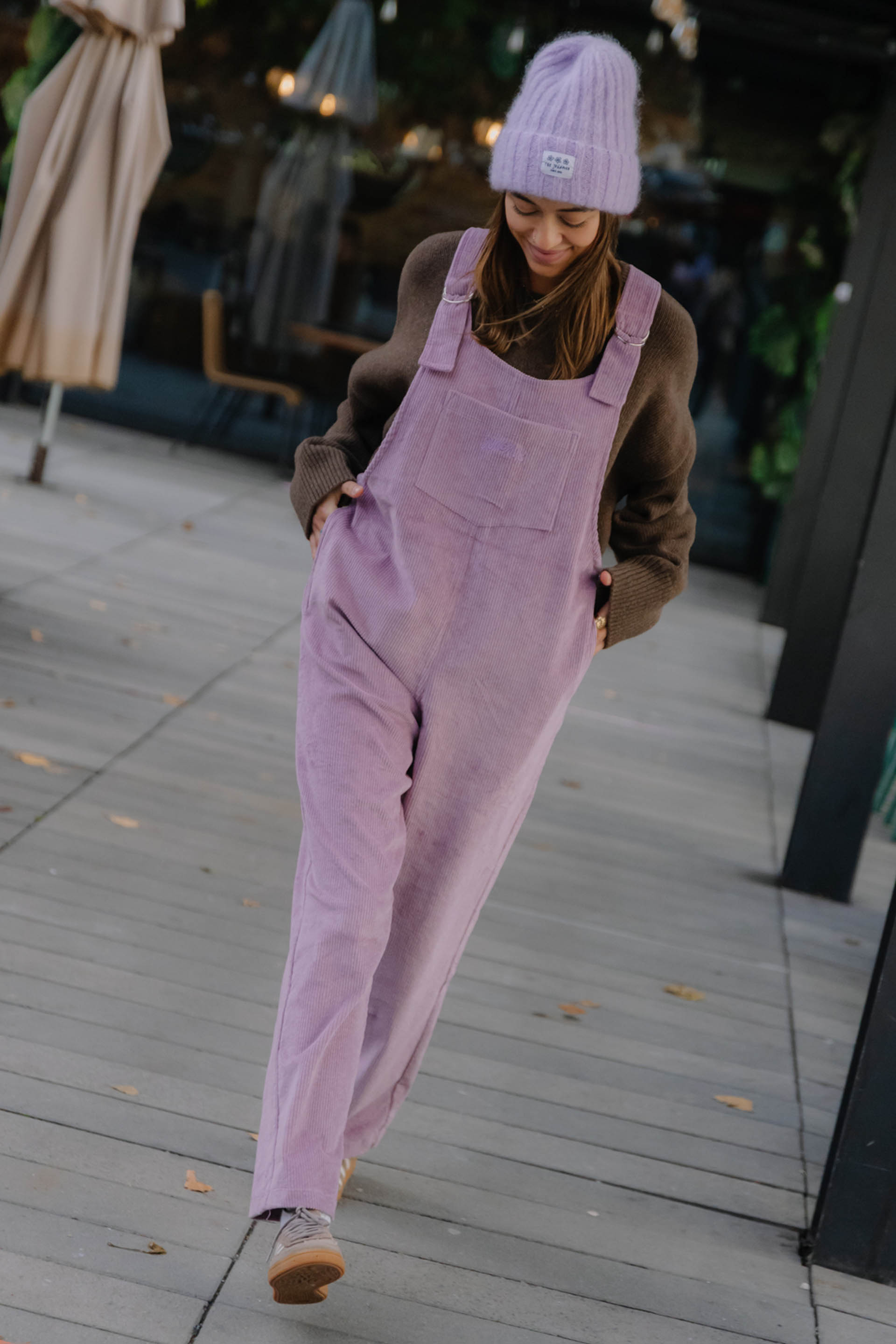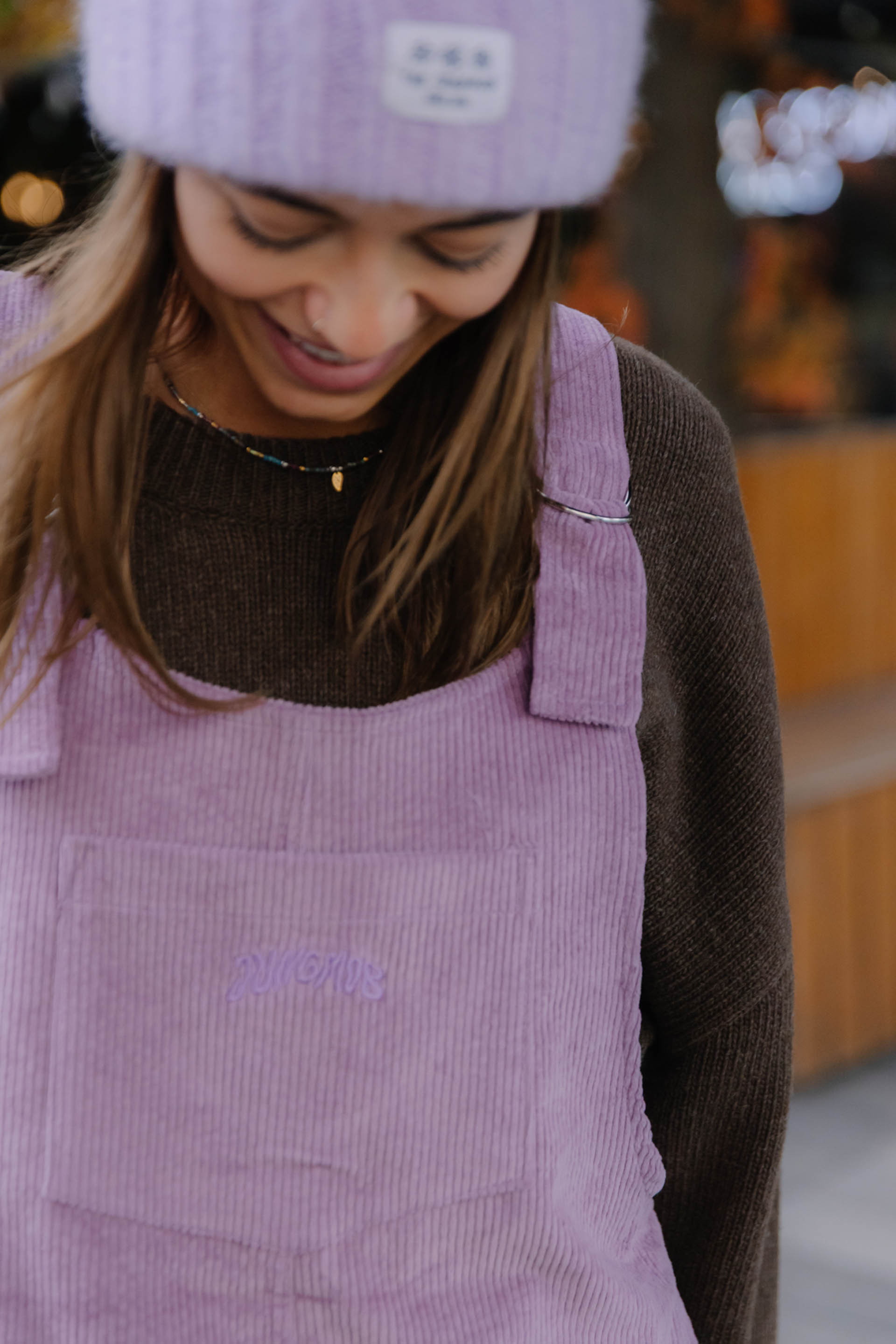 Nowy odcień ogrodniczek, tym razem w bardziej spokojnym odcieniu. Klasyk lat 90 w pięknym lawendowym odcieniu. Kochacie je za luz i wygodę, które daje wykonanie z miękkiego, przyjemnego dla ciała sztruksu. Będą świetnie wyglądać z założoną pod nie bluzą, czy longsleeve’m. Nogawki można puścić luźno albo podwinąć na dole - jest duża dowolność, wykaż się kreatywnością i wyraź siebie! Z przodu kieszonka z wyhaftowanym logo "Jungmob". Długość szelek można regulować za pomocą klamerek.