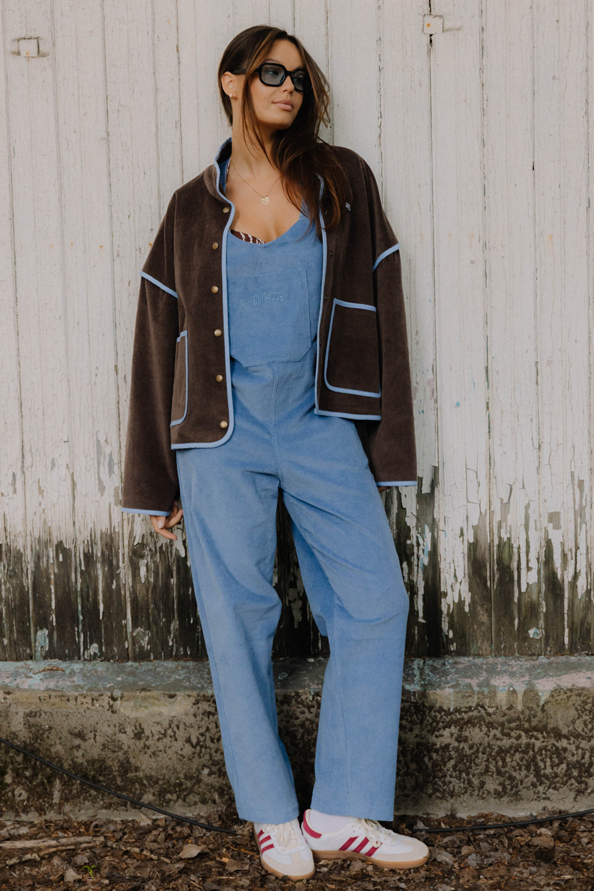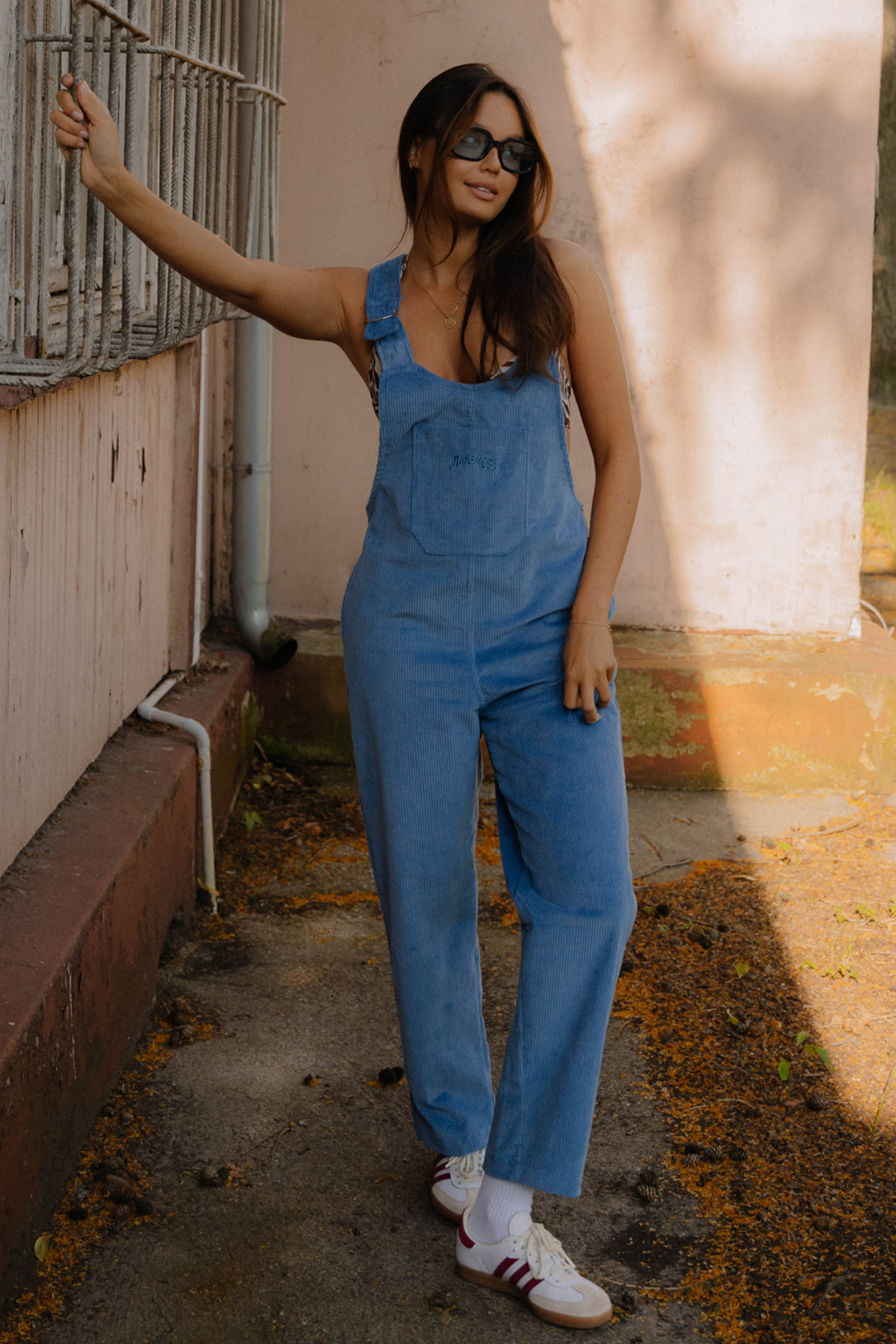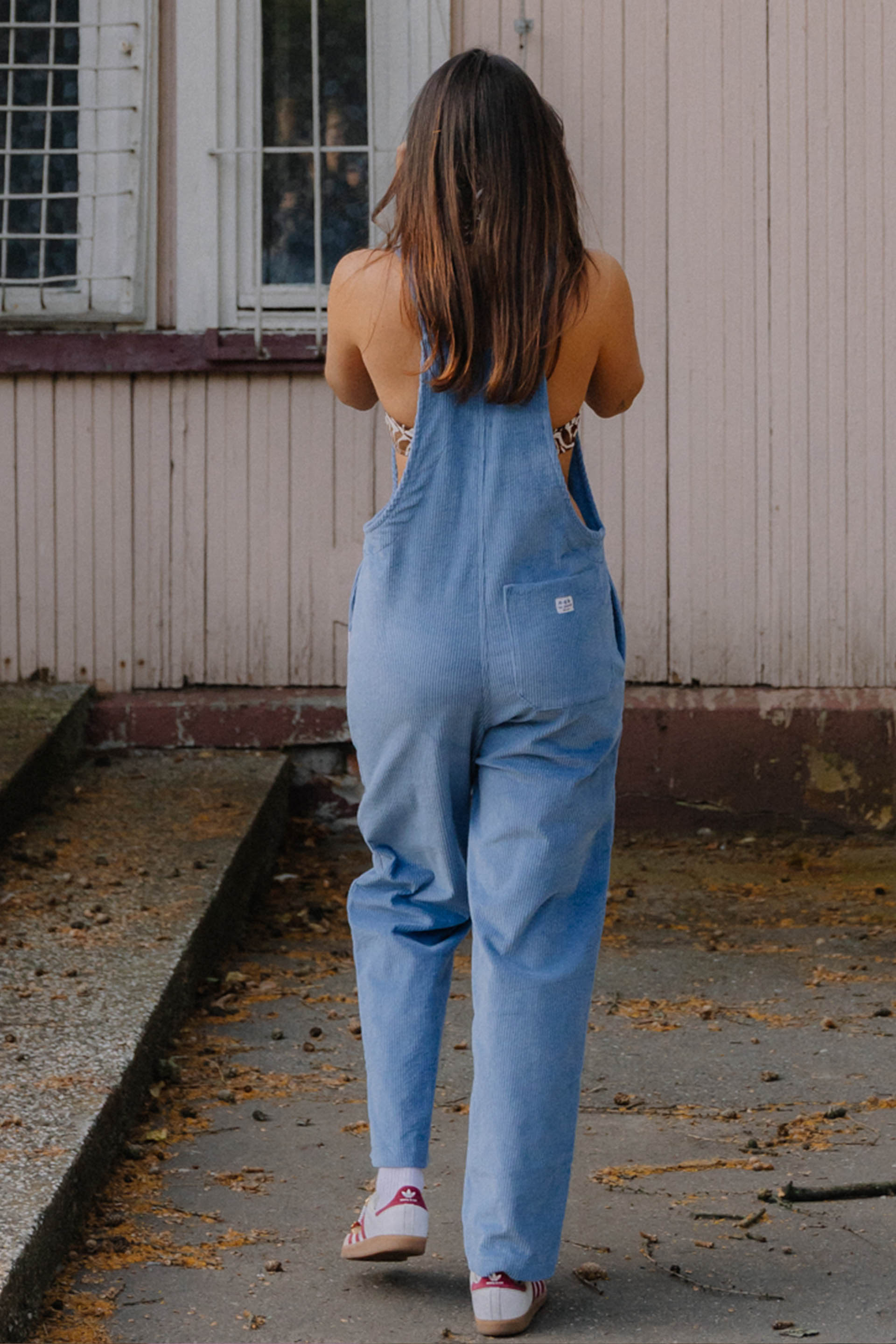 OGRODNICZKI FUNKY CLOUD - no i tutaj specjalnie na Waszą prośbę zrobiliśmy - ogrodniczki sztruksowe w kolorze pięknego błękitu, mega klasyk z lat 90. Luźny vibe, oldschoolowy krój i miękki sztruks podkręci każdą stylówkę.