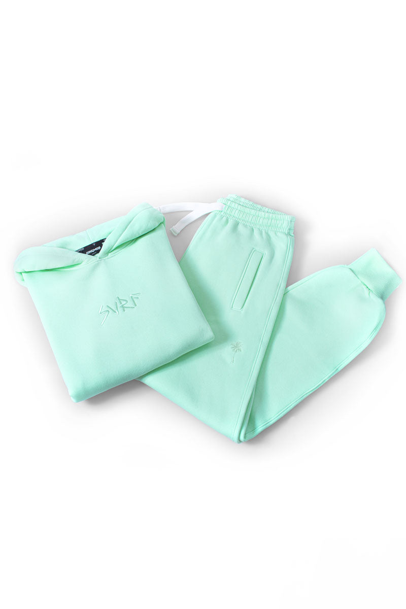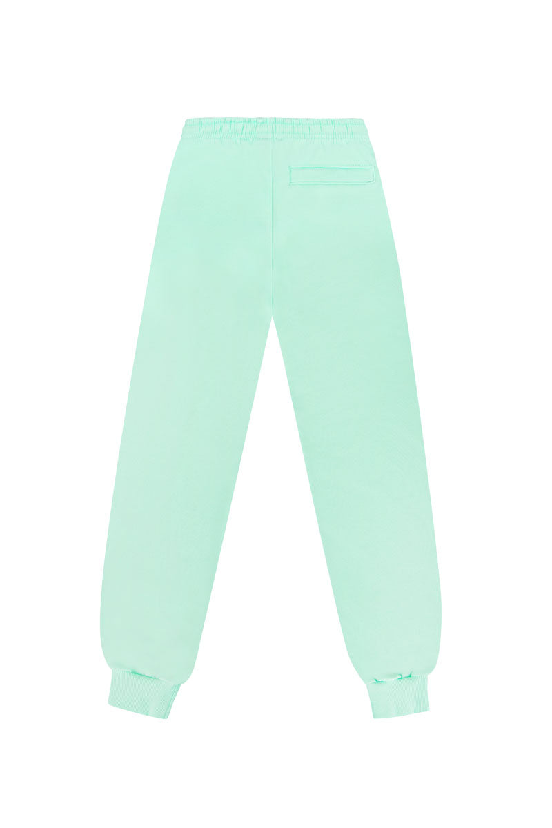 Miętowe długie spodnie dresowe o klasycznym kroju. Posiadają kieszenie z przodu i z tyłu. Idealne dla każdego typu sylwetki. Bardzo wygodne i miłe w dotyku. Idealne do aktualnego home office!