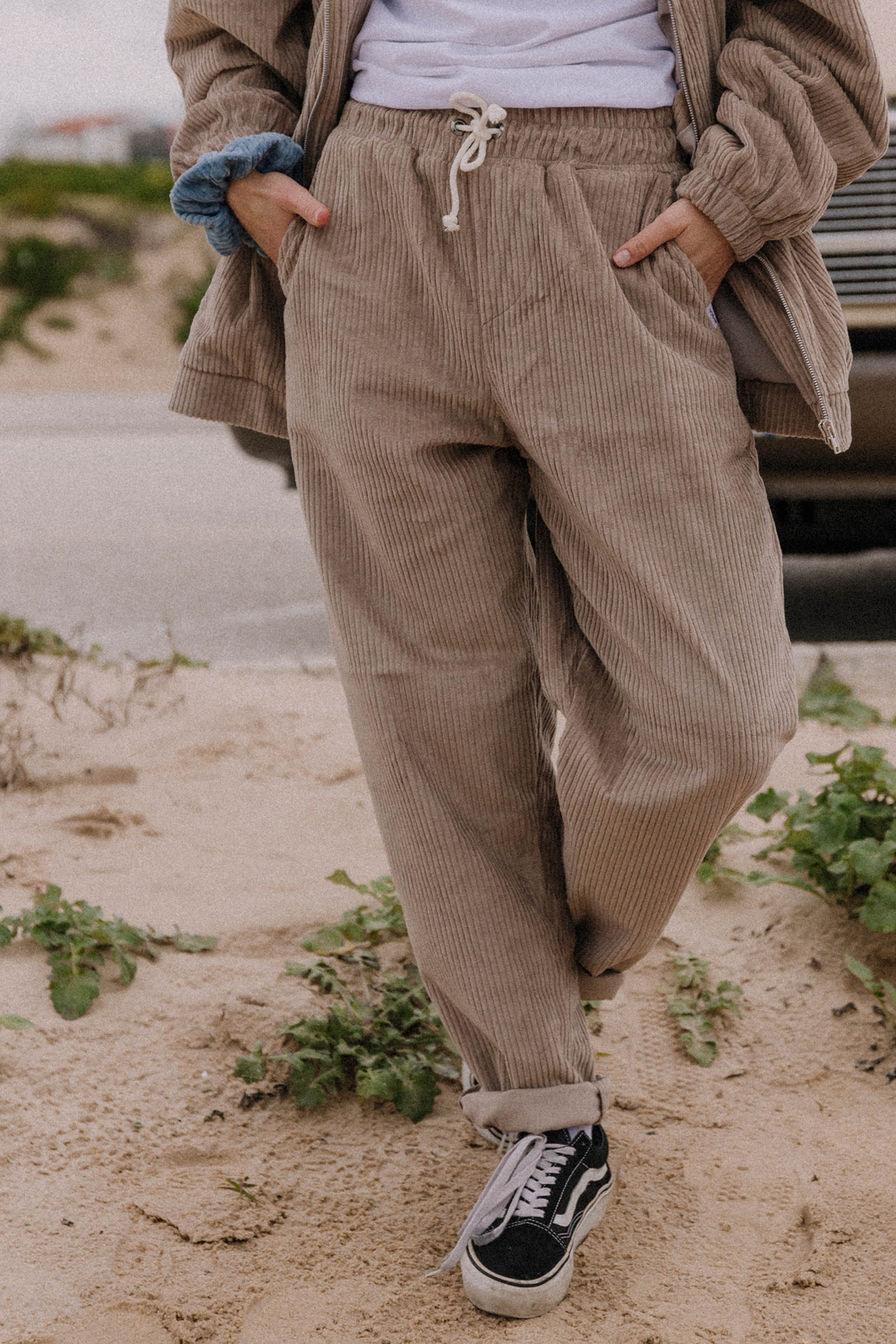 Spodnie MALTA w kolorze FLAT WHITE. Bardzo wygodne i przewiewne, uszyte z wysokiej jakości bawełnianego sztruksu z dodatkiem elastanu.