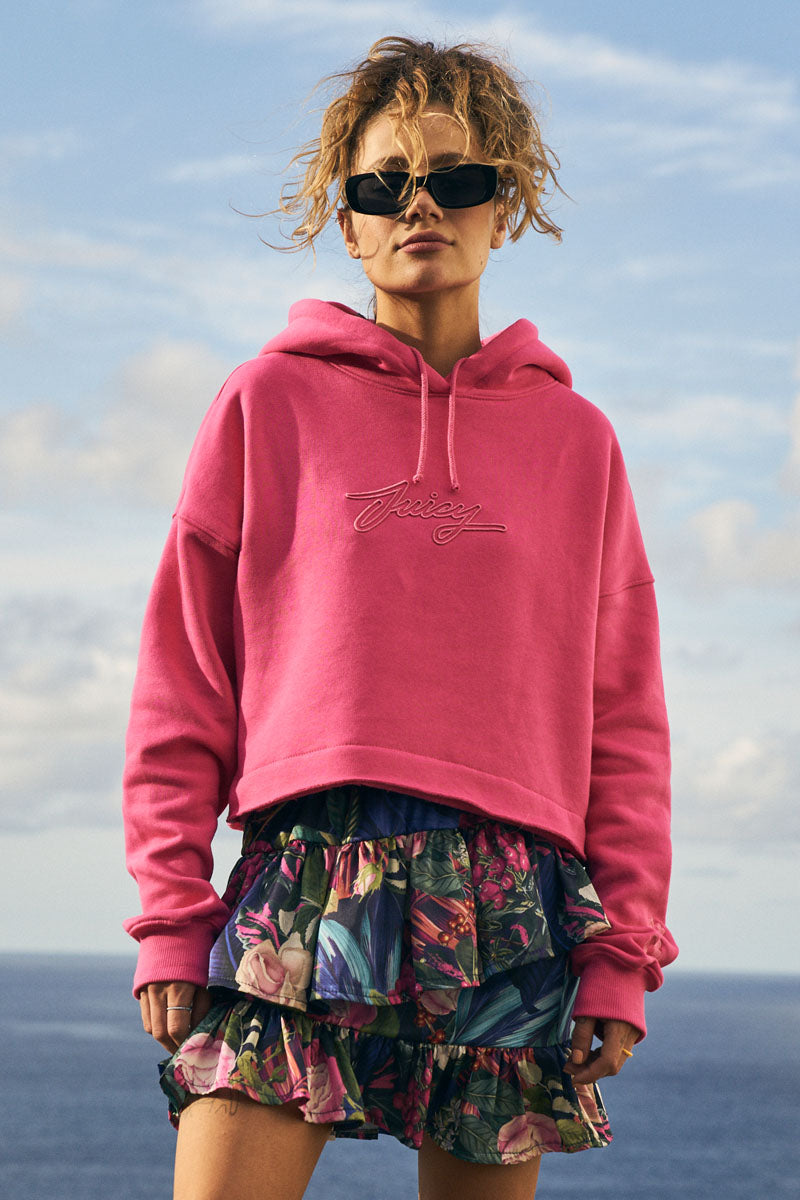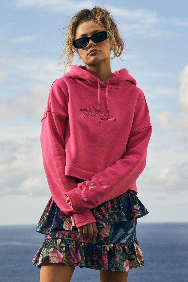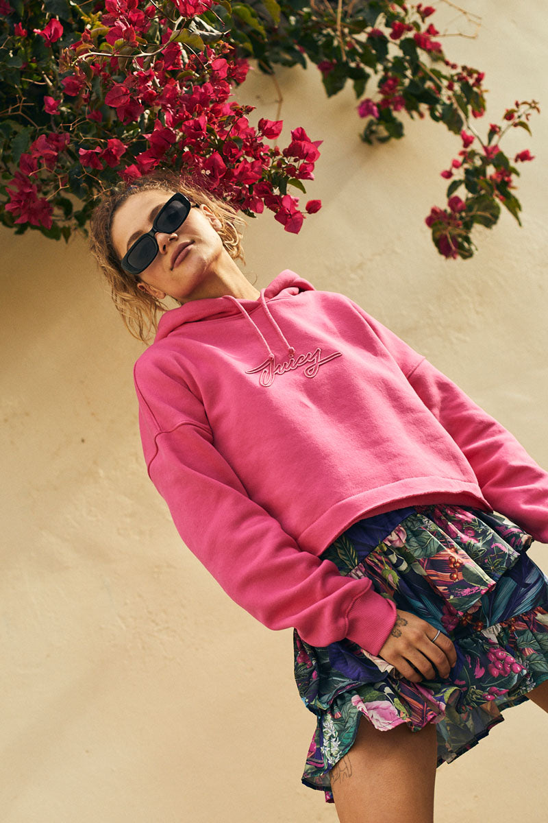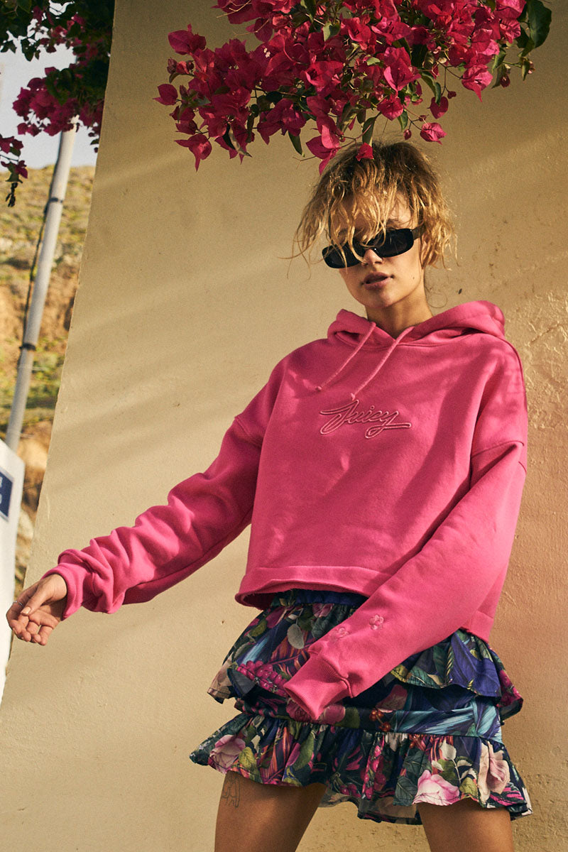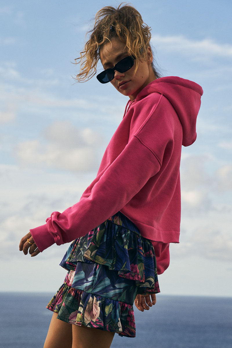 HOLA to wersja spódniczki z dwoma falbankami. Krótka i zwiewna - pięknie podkreśla nogi. Wzór ROWANBERRY PINK to najlepszy wybór na plaże ale i imprezę - do mocniejszych stylizacji.