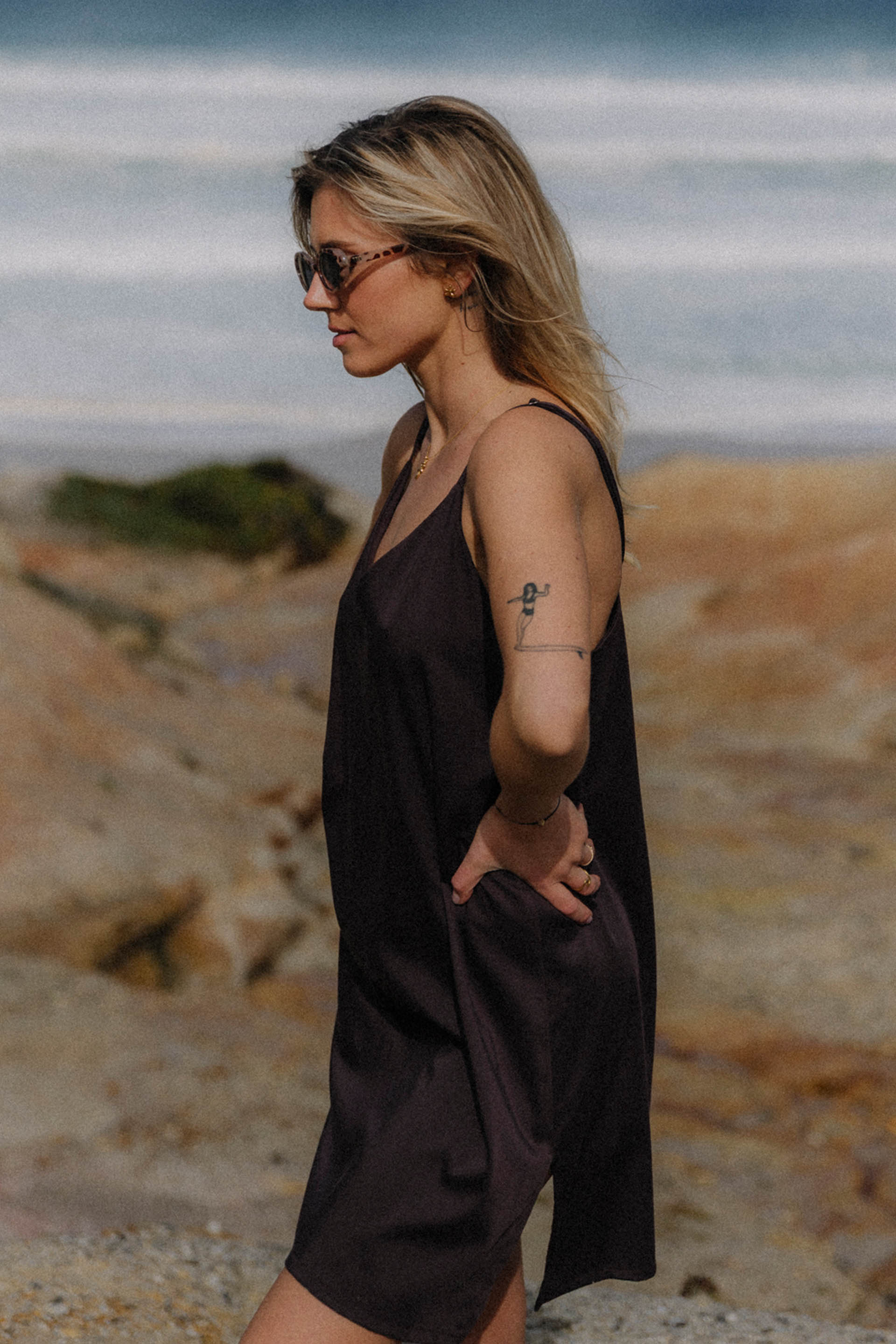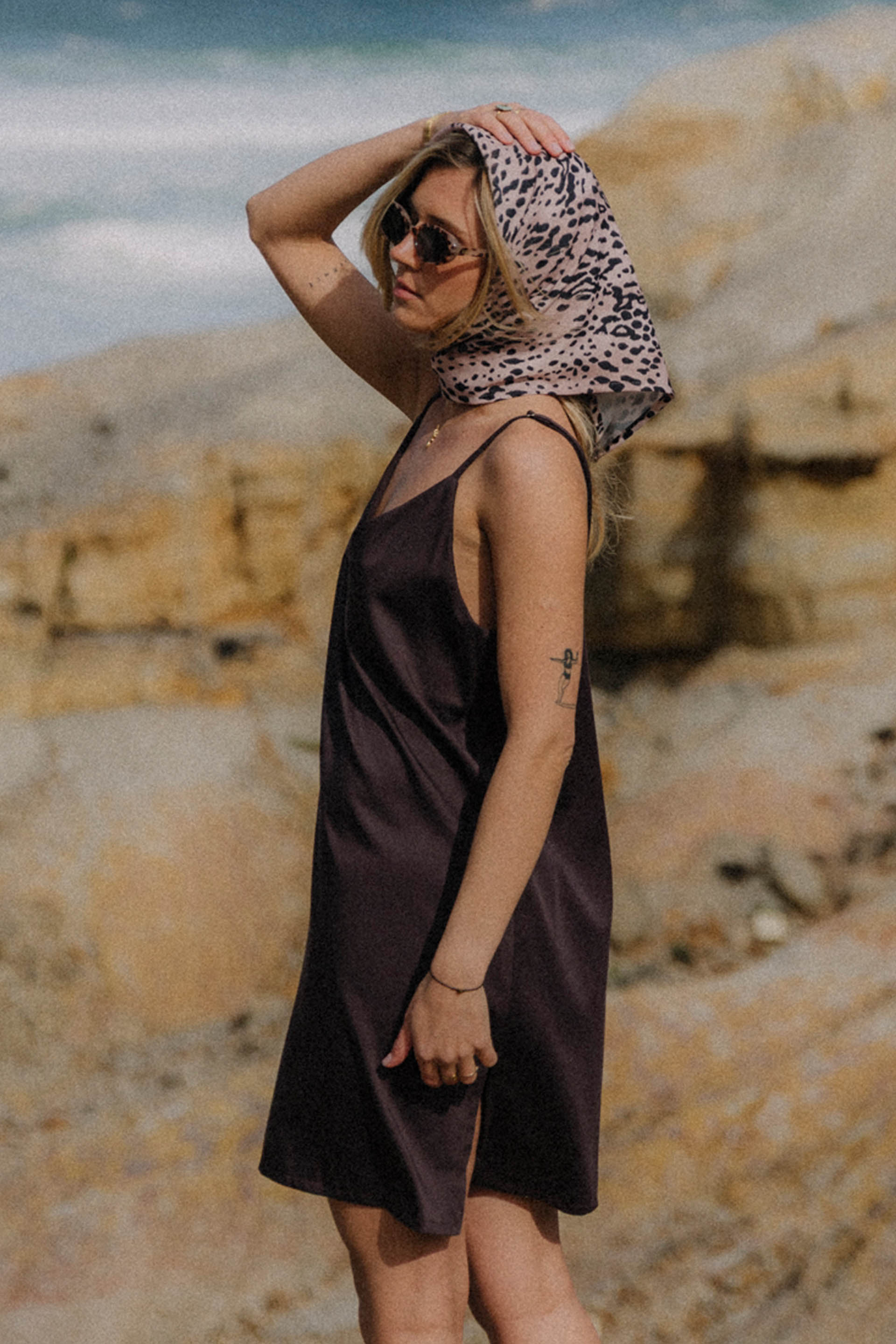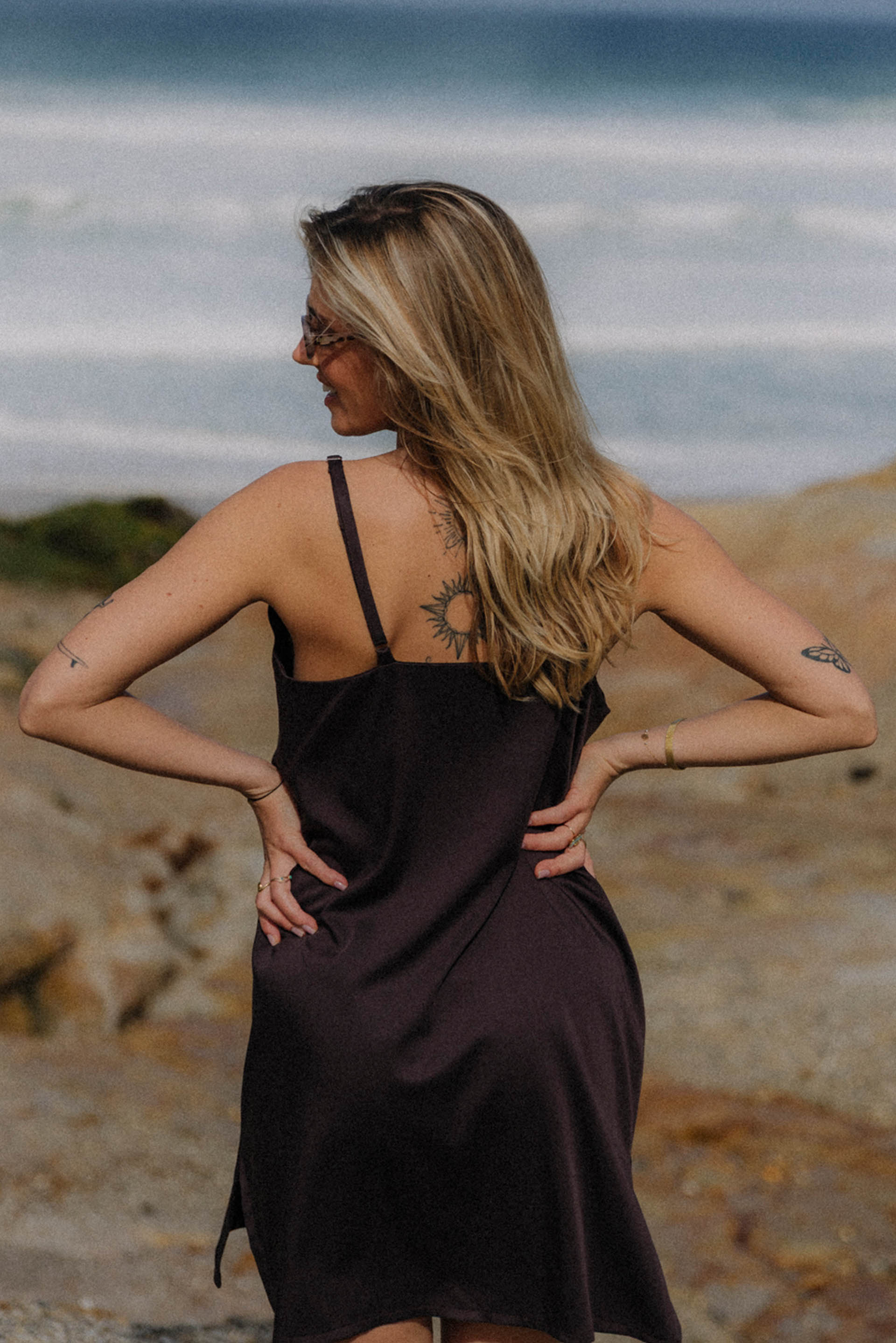 SUKIENKA KYLIE CHOCO - głęboki czekoladowy odcień, który przywołuje zapach porannej kawy. Zwiewna, luźna forma dzięki której sukienka idealnie pasuje na każdą sylwetkę. Skrojona tak, by z lekkością opływała Twoje ciało.
