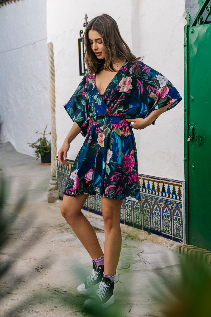 Całkowicie nowy model – sukienka SIESTA w princie Rowanberry Pink. Bardzo kobiecy fason z dekoltem V. Umieszczony w tali ściągacz umożliwia dopasowanie sukienki do każdego rodzaju sylwetki, jednocześnie podkreśla talię. Sukienka w stylu kimona, rękawy, które stopniowo się rozszerzają oraz zwiewny dół.