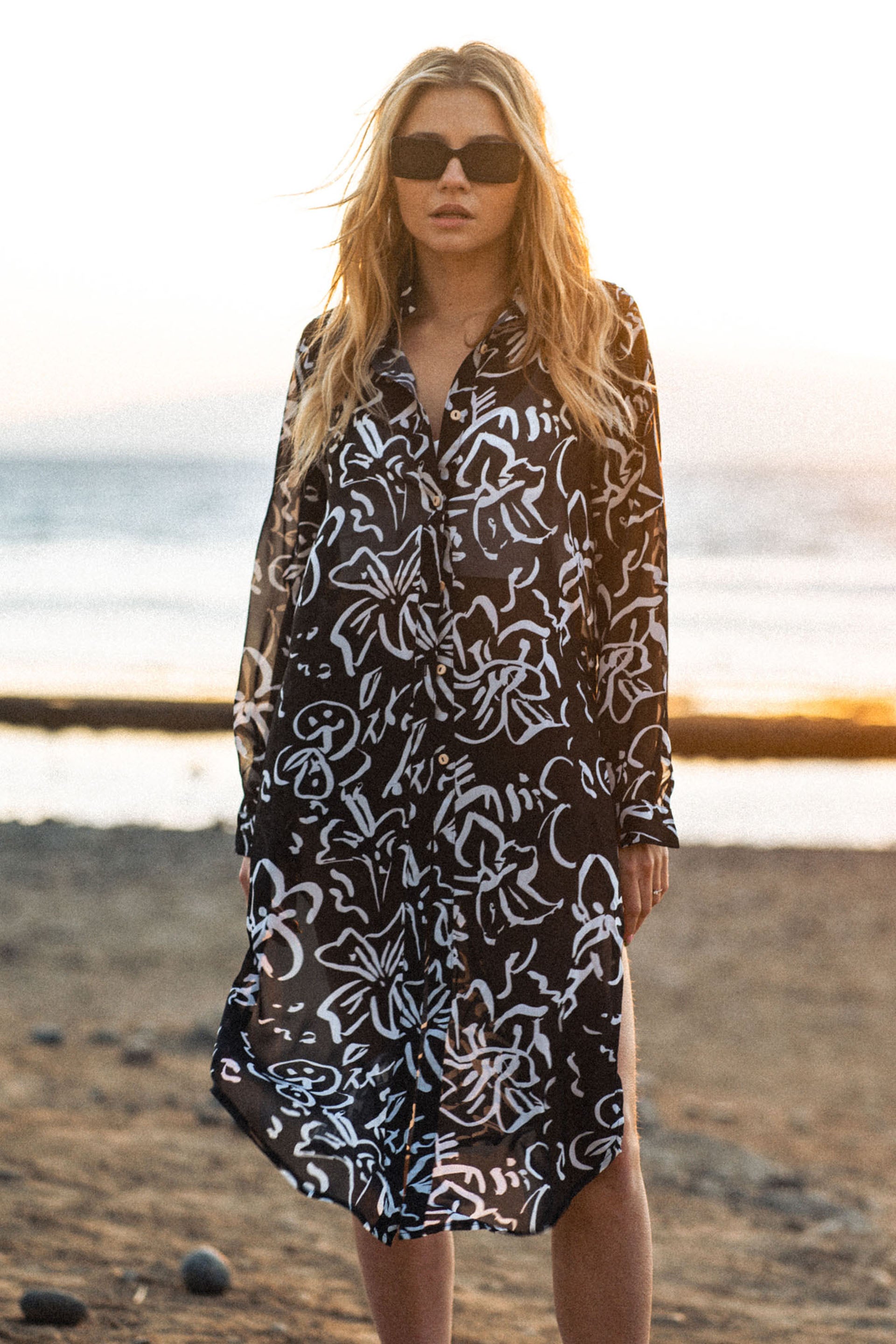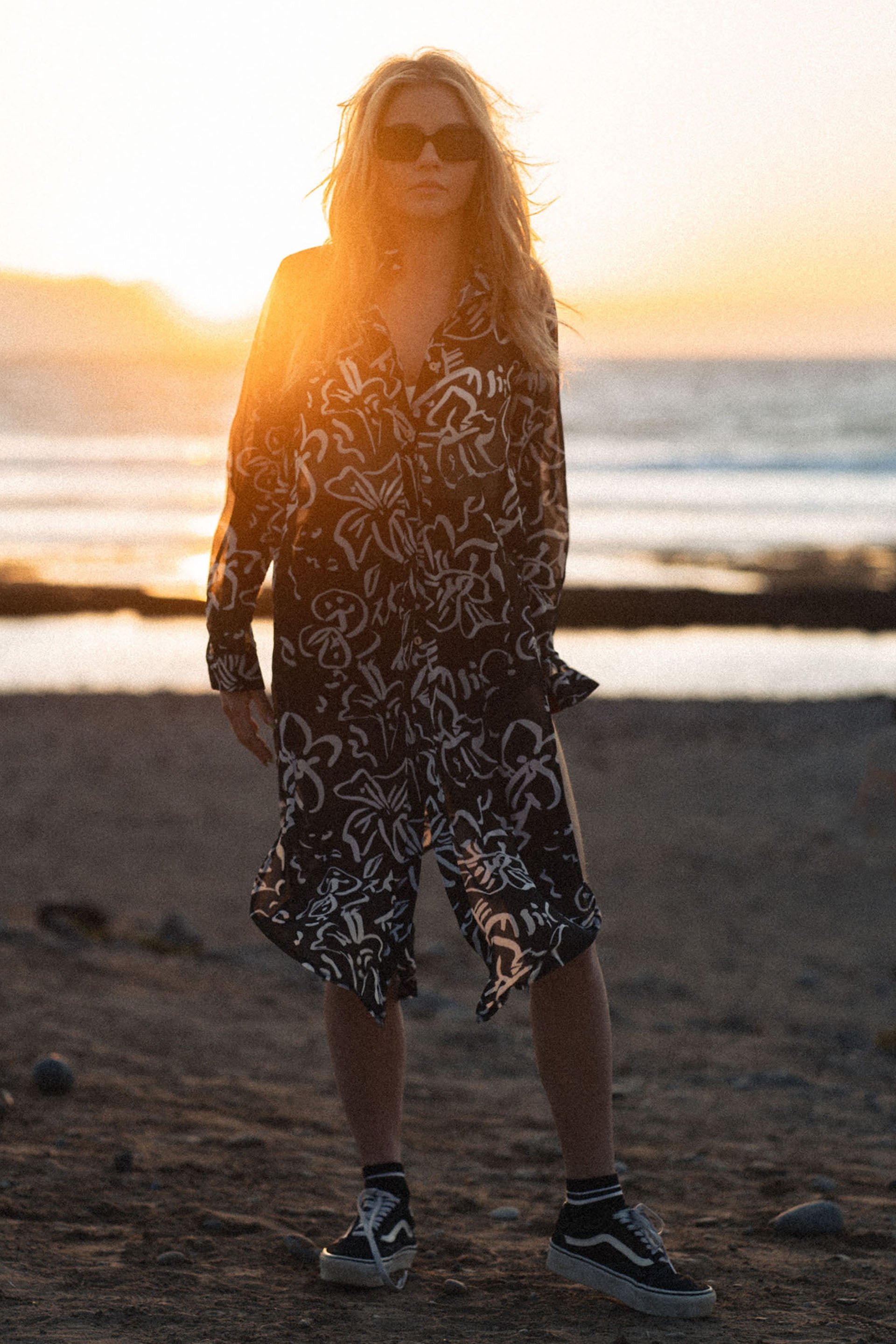Zwiewna i lekka koszula DARK MONKEY w wersji czarno białej to nasza propozycja dla osób, które preferują ciemniejsze kolory.