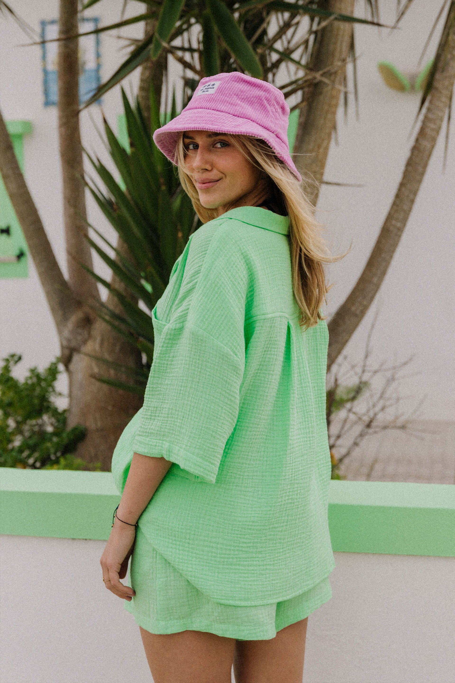 KOSZULA FUNKY LIMON - totalnie nowy model w naszej wiosennej kolekcji. Na waszą prośbę stworzyliśmy nowy krój koszuli na guziki, którą możecie łączyć w zestawie z naszymi szortami albo dopasować do jeansów. Koszula jest w przepięknym kolorze, który jest połączeniem limonki z miętą. Luźny fason daje swobodę ruchów, koszula zapinana jest na guziki, ma kieszeń na piersi. Wykonana jest z muślinu który jest, przewiewny i przyjemny w noszeniu, nie podrażnia skóry. Możesz ją nosić rozpiętą, związaną albo narzuconą na kostium na plaży:)