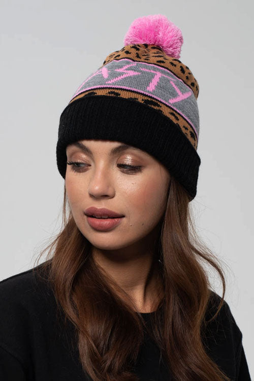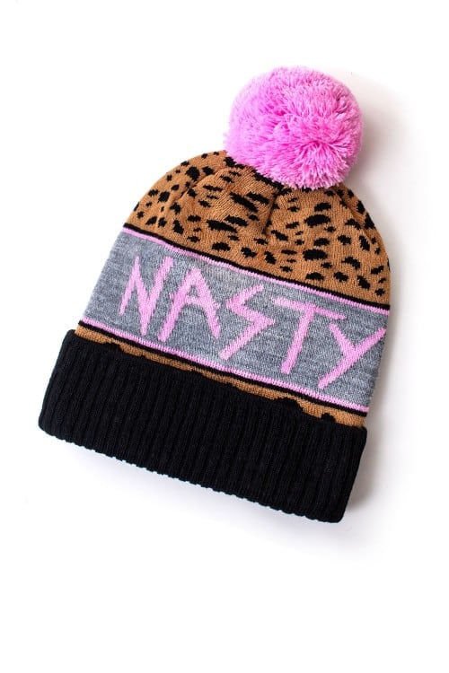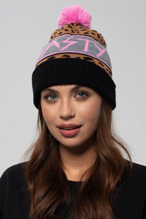 Nasz obecny bestseller, czapka z pomponem o klasycznym kroju z zawsze modną panterką! Czapka będzie Ci pasować do każdej stylizacji zarówno na chłodniejszy wieczór nad morzem, jak i w sezonie zimowym. Na środku różowy napis "NASTY WILD".