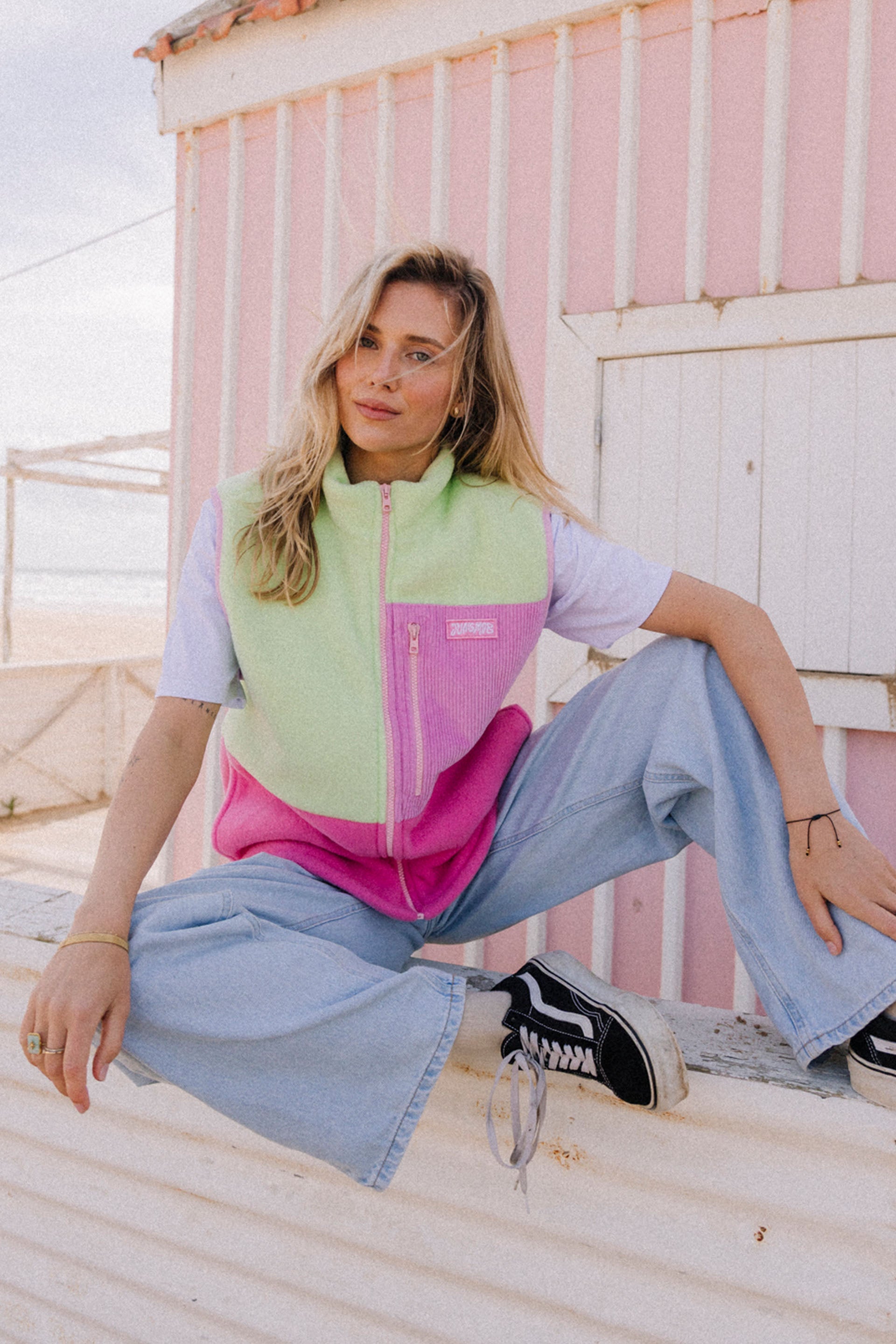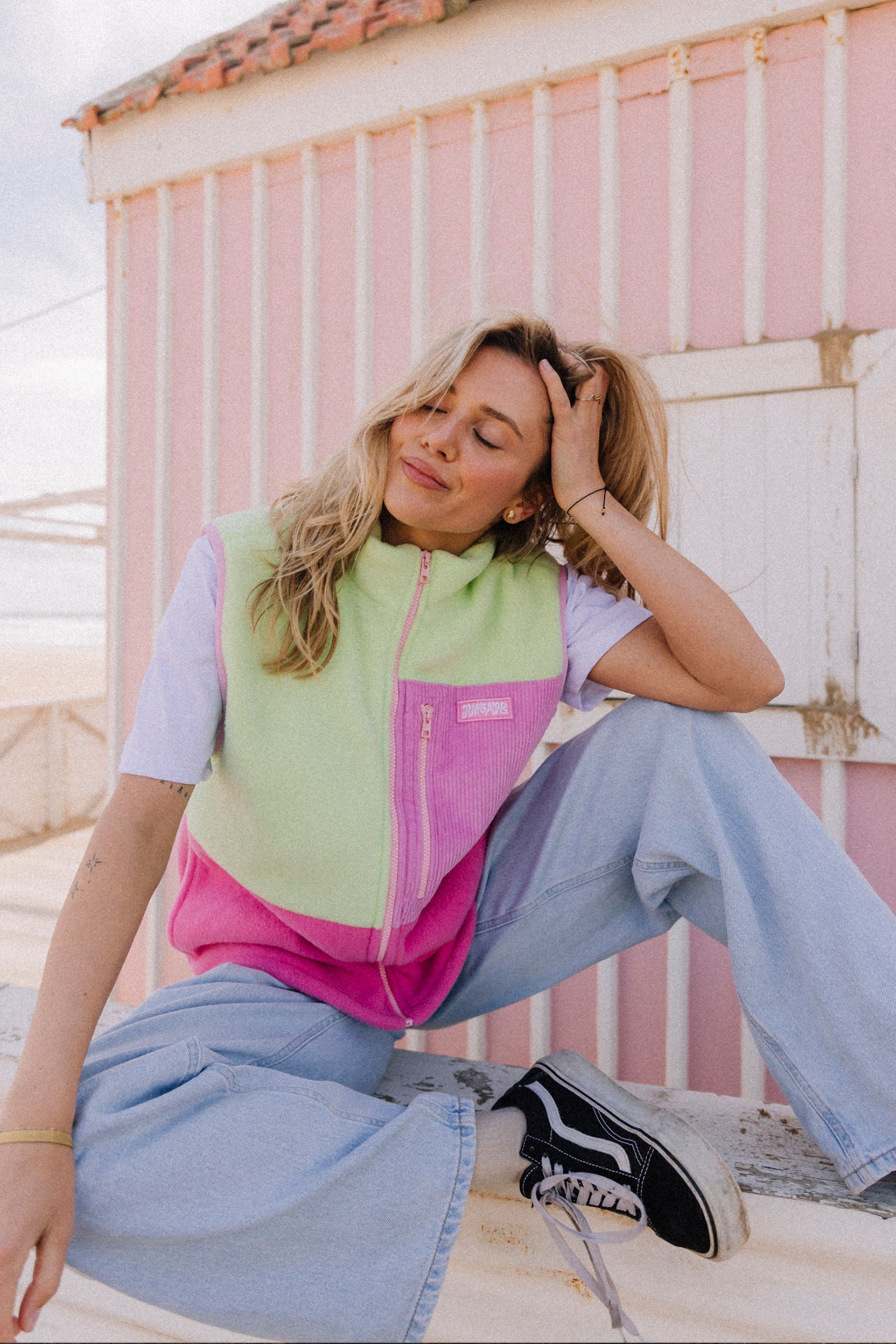 Wybrałyśmy polarki w kolorze lata, które super łączą się z różowymi dodatkami jak kieszonka sztruksowa. Możliwość ściągnięcia jej na dole, w celu lepszego dopasowania.