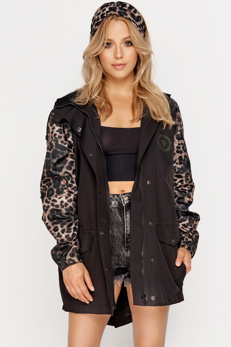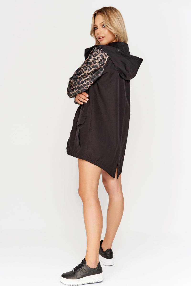 Kurtka damska przeciwdeszczowa typu parka. W całości z wodoodpornego materiału z wzorem LION na rękawach oraz czarnymi tułowiem. Od środka wykończona podszewką. Dwie kieszenie zewnętrzne i jedna wewnątrz na piersi. Możliwość ściągnięcia w pasie, zapinana na zamek idealnie sprawdzi się na wakacjach i nie tylko!