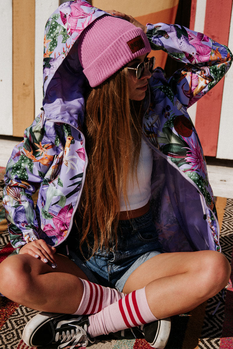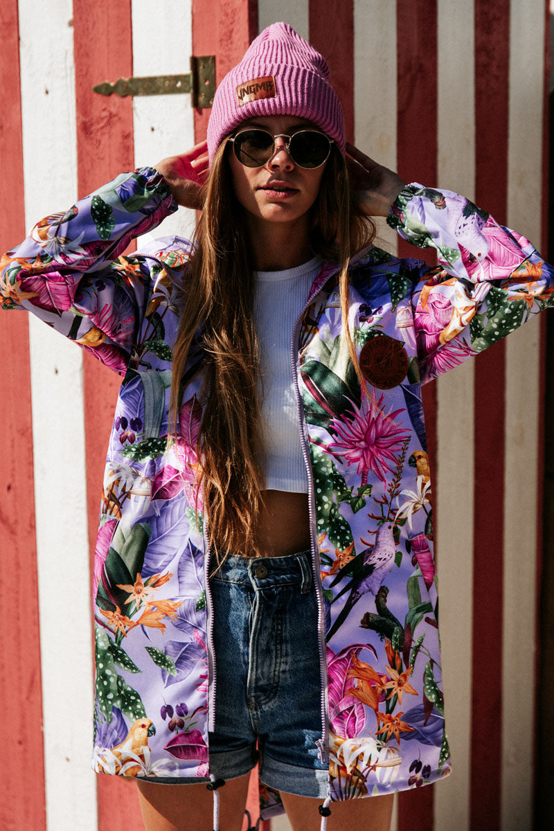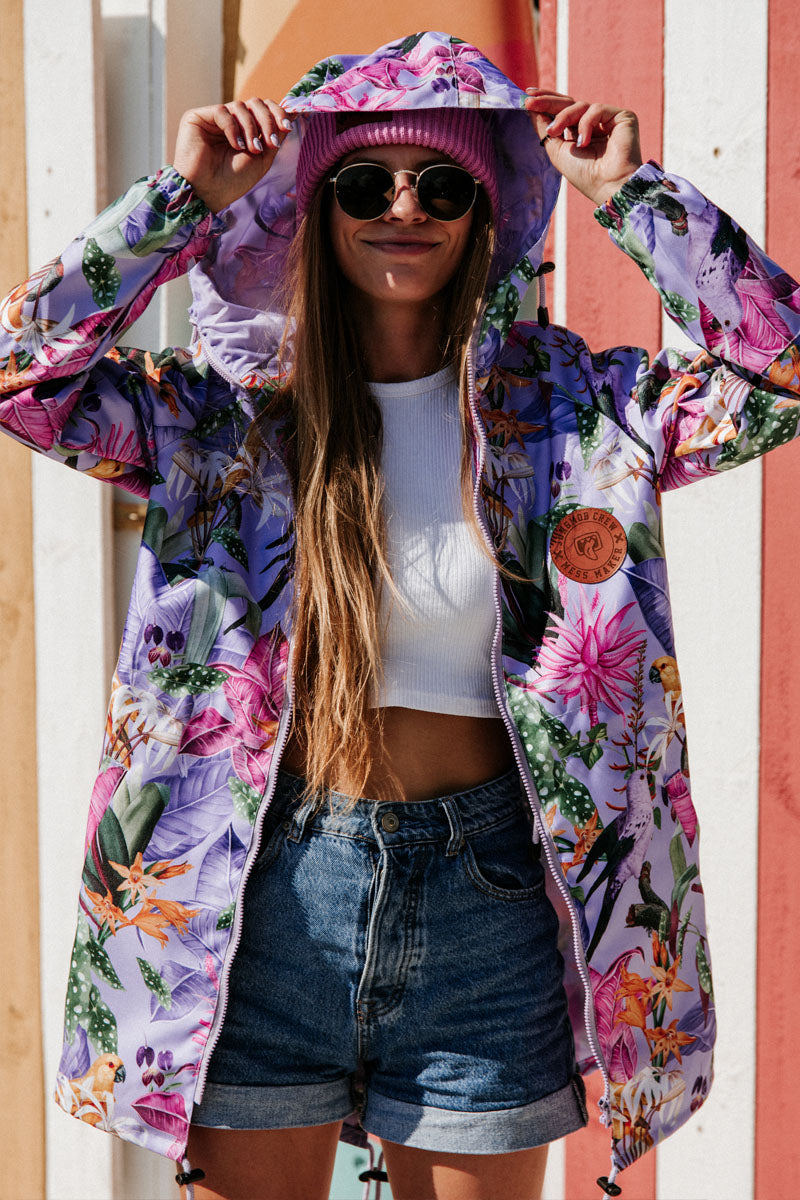 Kurtka przeciwdeszczowa SECRET GARDEN to propozycja dla osób, które stawiają na fiolet. Kurtka sprawdzi się podczas deszczowej oraz wietrznej pogody. Od środka kurtka wykończona jest podszewką. Dwie kieszenie zewnętrzne i jedna wewnątrz na piersi.