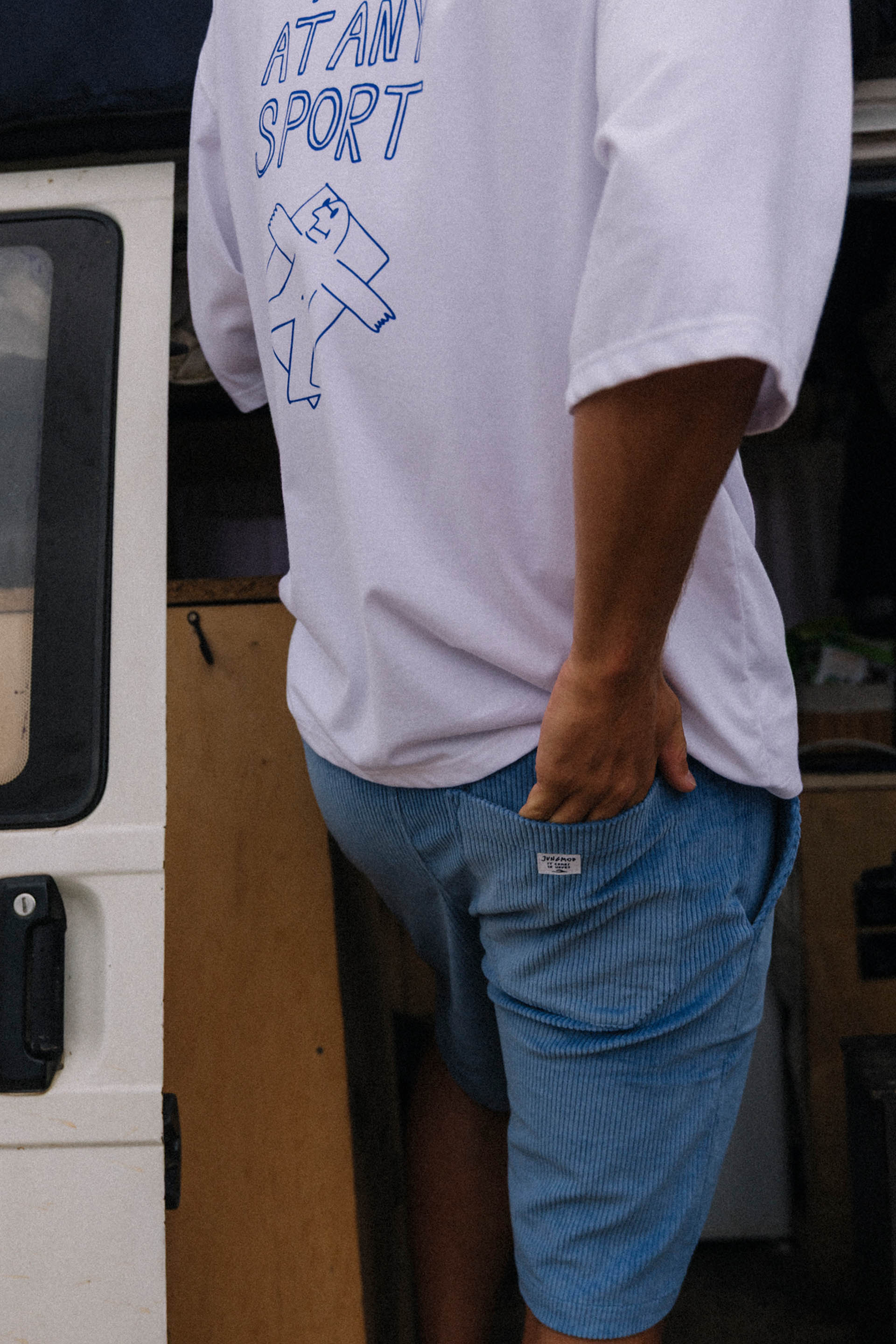 Wykończone delikatnymi metkami z logo JUNGMOB. Szorty są na gumkę, ale można je dodatkowo związać bawełnianym sznurkiem. Dostępne w kilku modnych wersjach kolorystycznych.
