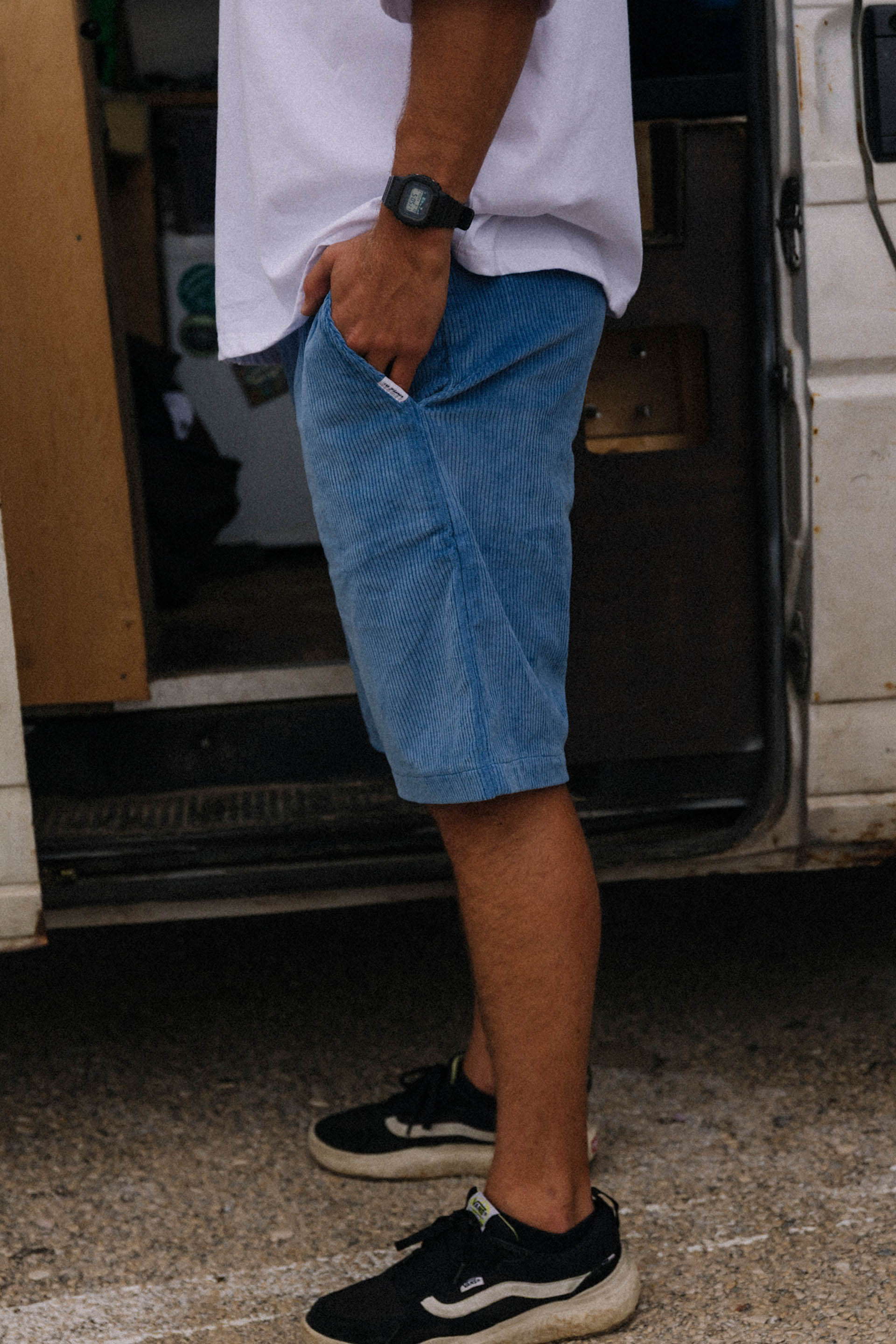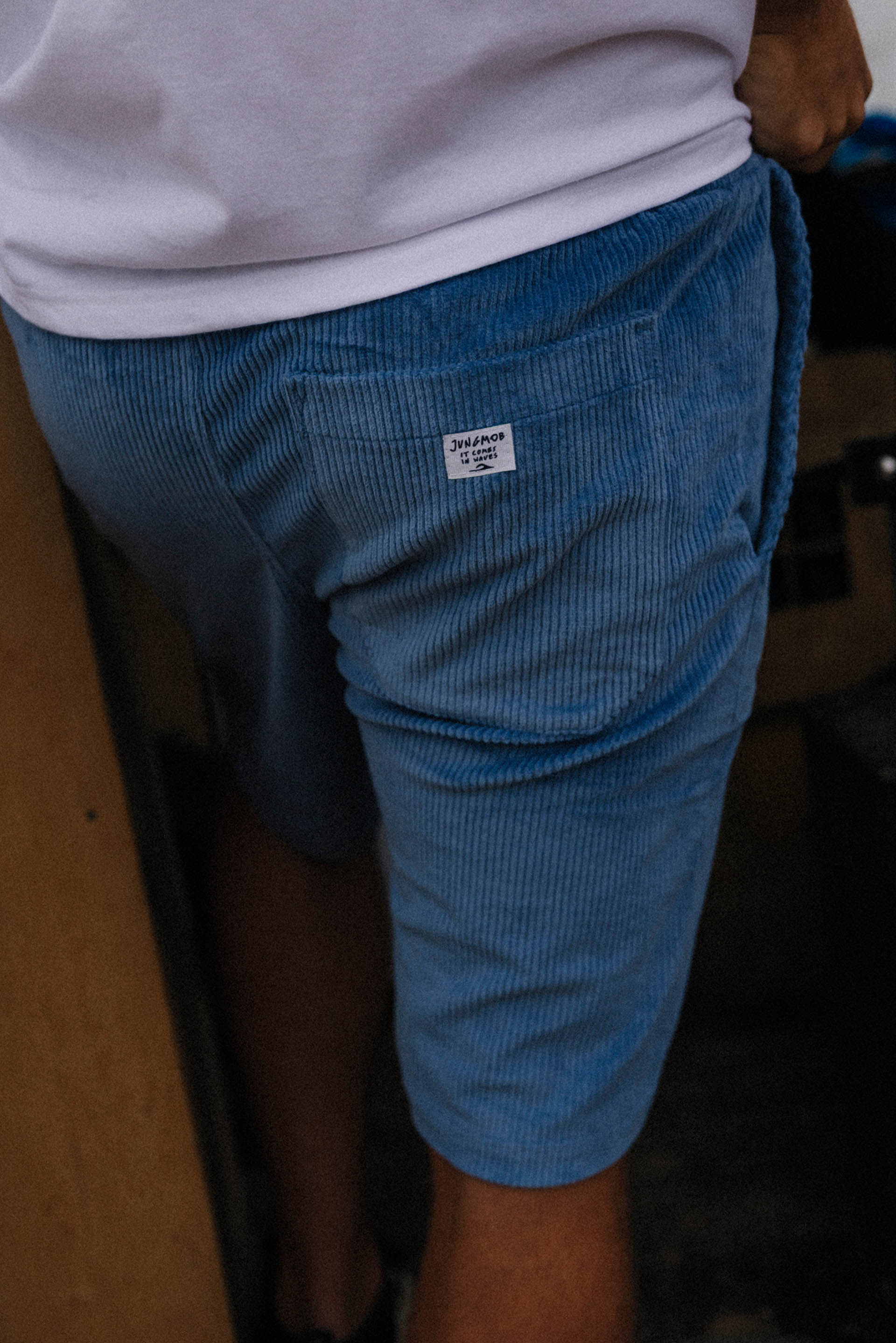 Sztruksowe spodenki GOZO w kolorze niebieskim. Wykonane z bawełnianego sztruksu, mega wygodne.