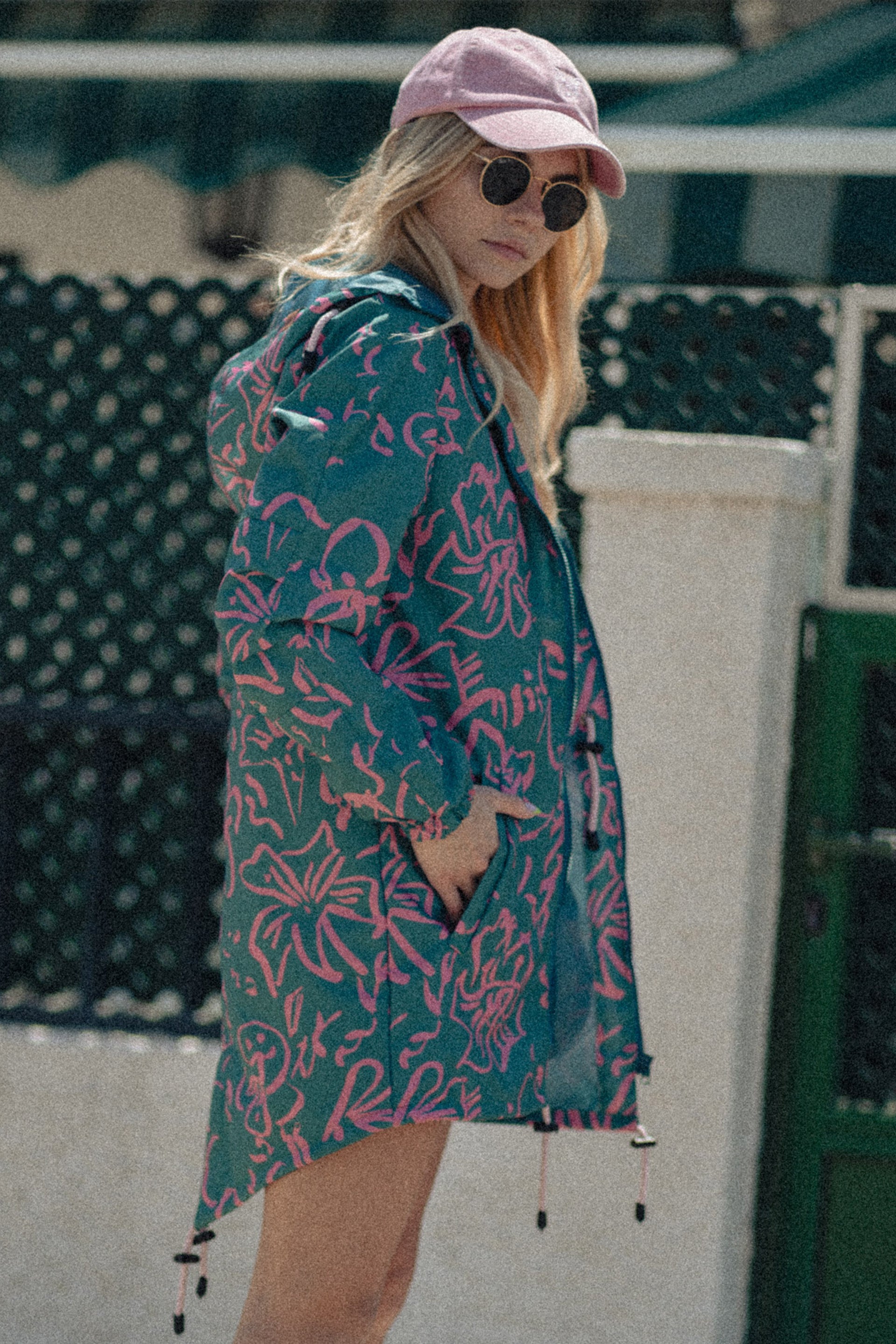 Kurtka RAIN to wybór na wiosnę, lato oraz jesień. ABSTRACT FLOWERS to oryginalny print w kolorystyce zieleni oraz różu. Wybór kobiet, które wybierają ciekawe wzory. Kurtka posiada trzy kieszenie, dwie od zewnątrz i jedną na piersi od wewnętrznej strony.