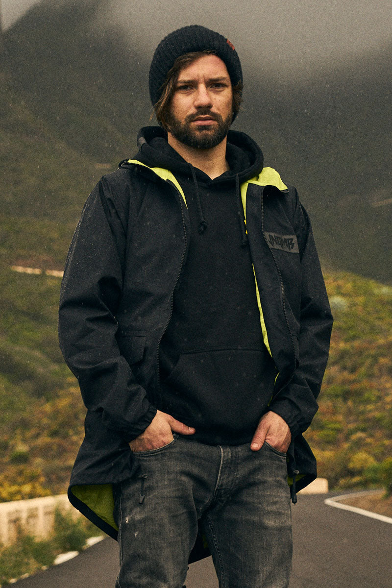 Kurtka Black Limon typu parka. Podszyta podszewką w limonkowym kolorze nadaje charakteru całości. Wykonana jest z przeciwdeszczowego materiału wierzchniego z membraną, która zapewnia ochronę przed wiatrem i deszczem. Posiada dodatkową wewnętrzną kieszonkę na piersi. Możliwość ściągnięcia kurtki w pasie umożliwia jej dopasowanie.