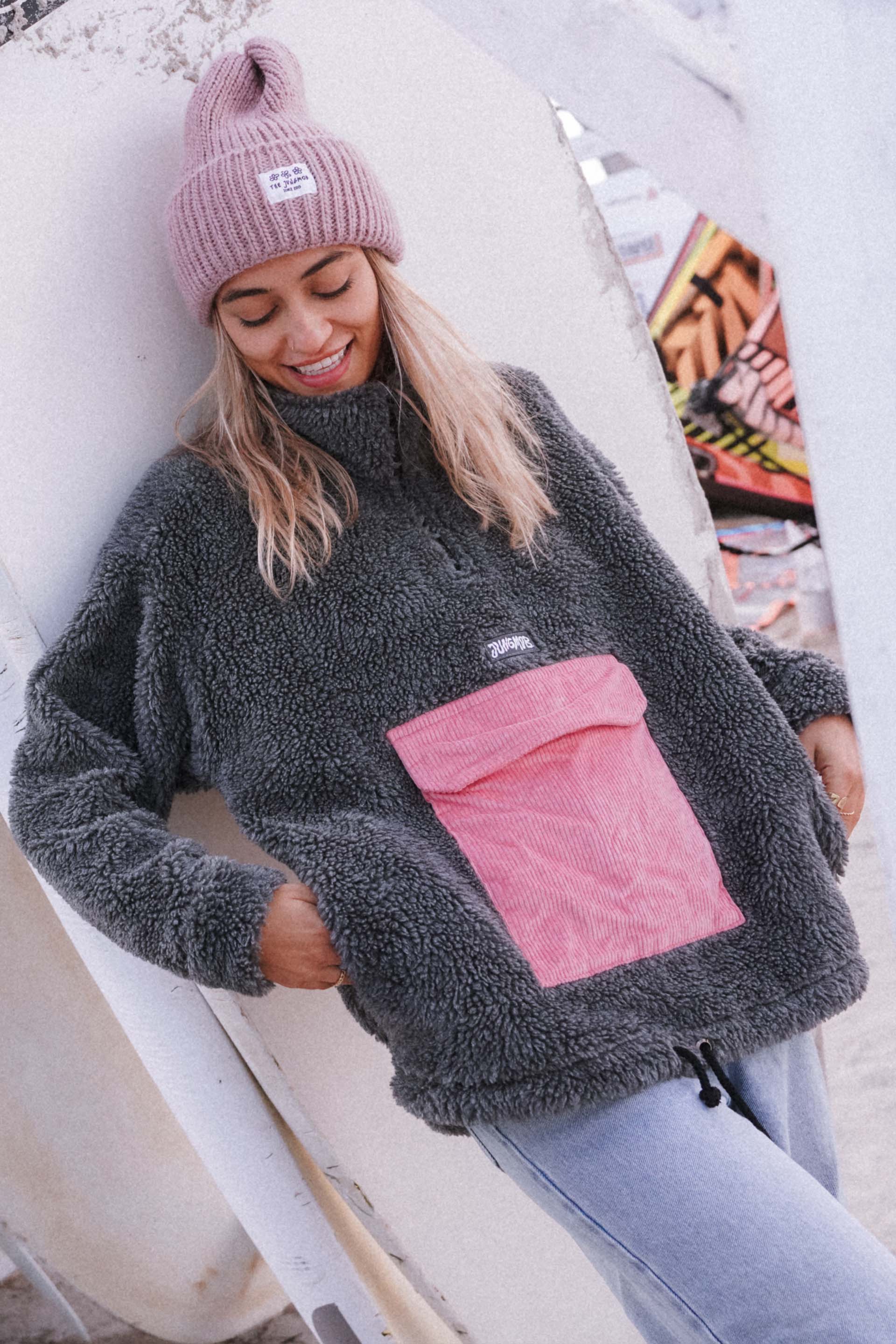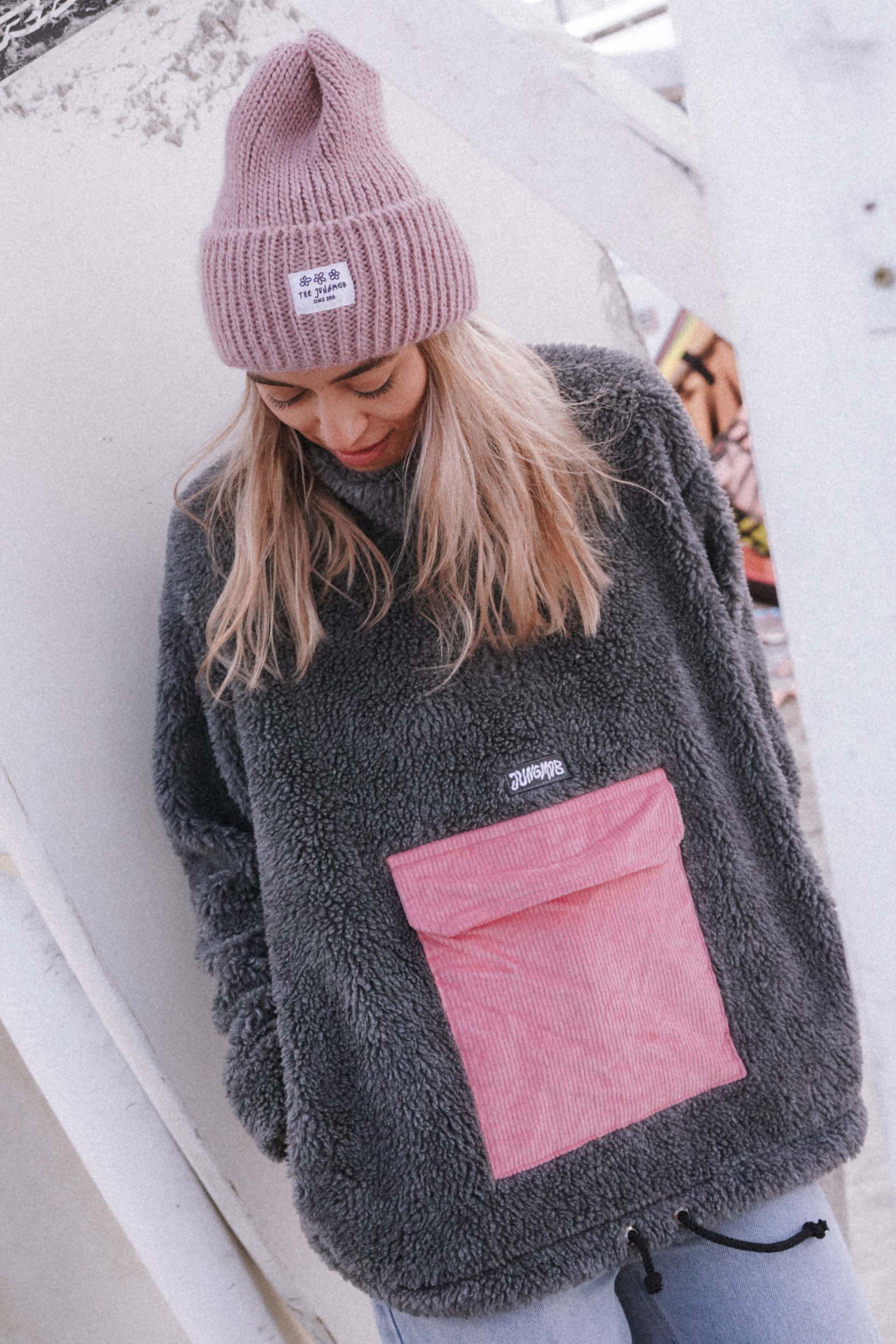 BLUZA TEDDY to jest zdecydowanie Wasz ulubieniec. Nasz super ciepły baranek z dużą kieszenią na suwak wykonaną z różowego sztruksu.
