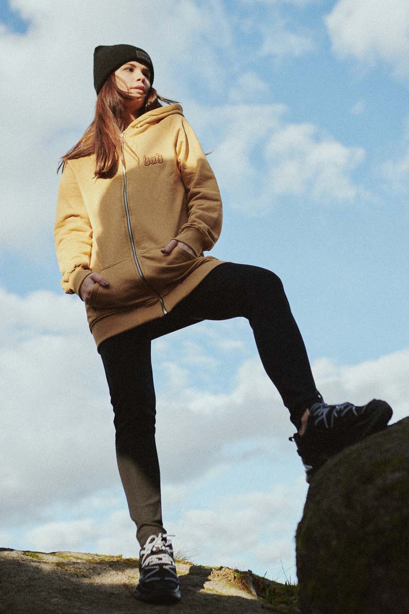 ALL MUSTARD ROSE LONG  to przedłużana, musztardowa bluza z kapturem zapinana na zamek błyskawiczny, która świetnie sprawdzi się w każdych warunkach. Wykonana z wysokiej jakości bawełny, jest przyjemna w dotyki i bardzo wytrzymała. Super będzie wyglądała w połączeniu z legginsami, czy krótkimi szortami. Ozdobiona grubymi, musztardowym haftami 3D. Z przodu napis „BAD”, z tyłu duża, piękna róża.