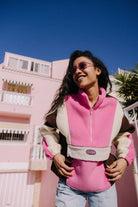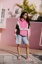 Są rzeczy, które dopasowują się do nastroju — i takie, które go tworzą. Bluza polarowa MIAMI zdecydowanie należy do tej drugiej kategorii. Intensywny róż przełamany kontrastowymi panelami buduje energię, której nie da się zignorować. To bluza, która łapie światło, odbija kolory otoczenia i sprawia, że zwykły dzień wygląda jak kadr z wakacyjnego filmu. Miękki polar otula, ale nie spowalnia — jest lekki, oddychający i gotowy na ruch, niezależnie od tego, czy jesteś w drodze, czy po prostu łapiesz chwilę słońca. Wysoki kołnierz z zamkiem daje Ci kontrolę nad stylem i temperaturą, a luźny krój zostawia przestrzeń na swobodę — w ruchu i w wyrazie. To nie jest kolejna warstwa „na coś”. Na przodzie bluzy znajduje się pojemna kieszeń. Całość uzupełnia subtelne logo. Krótka stójka zapinana na krótki zamek chroni przed wiatrem, a miękki polar sprawia, że nie chce się jej zdejmować. Stworzona na rześkie poranki, spokojne wieczorne wyjścia i każdą chwilę pomiędzy — gdy liczy się styl, ale komfort zostaje na pierwszym miejscu.