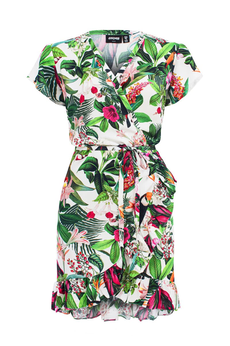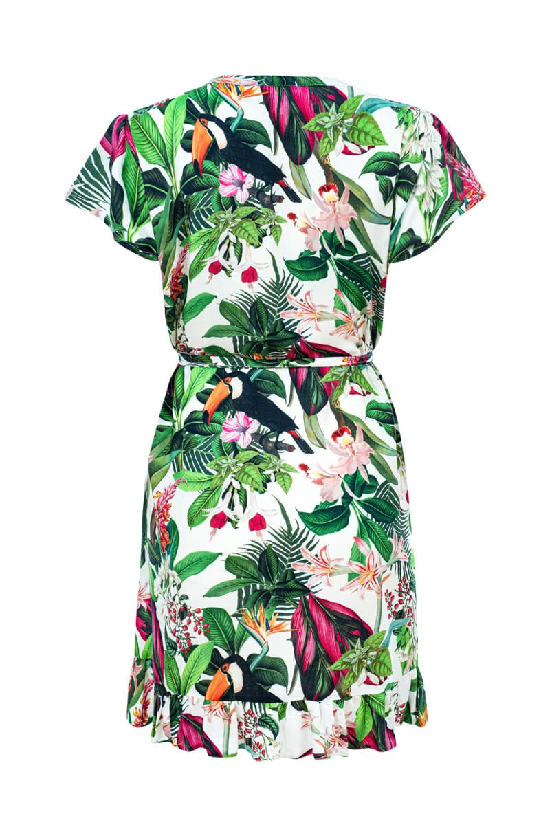 Sukienka z falbanką COCO! Oczywiście w Waszym ulubionym princie WHITE JUNGLE. Bardzo zwiewna i lekka dzięki czemu idealnie nadaje się na plaże oraz wakacyjne imprezy.