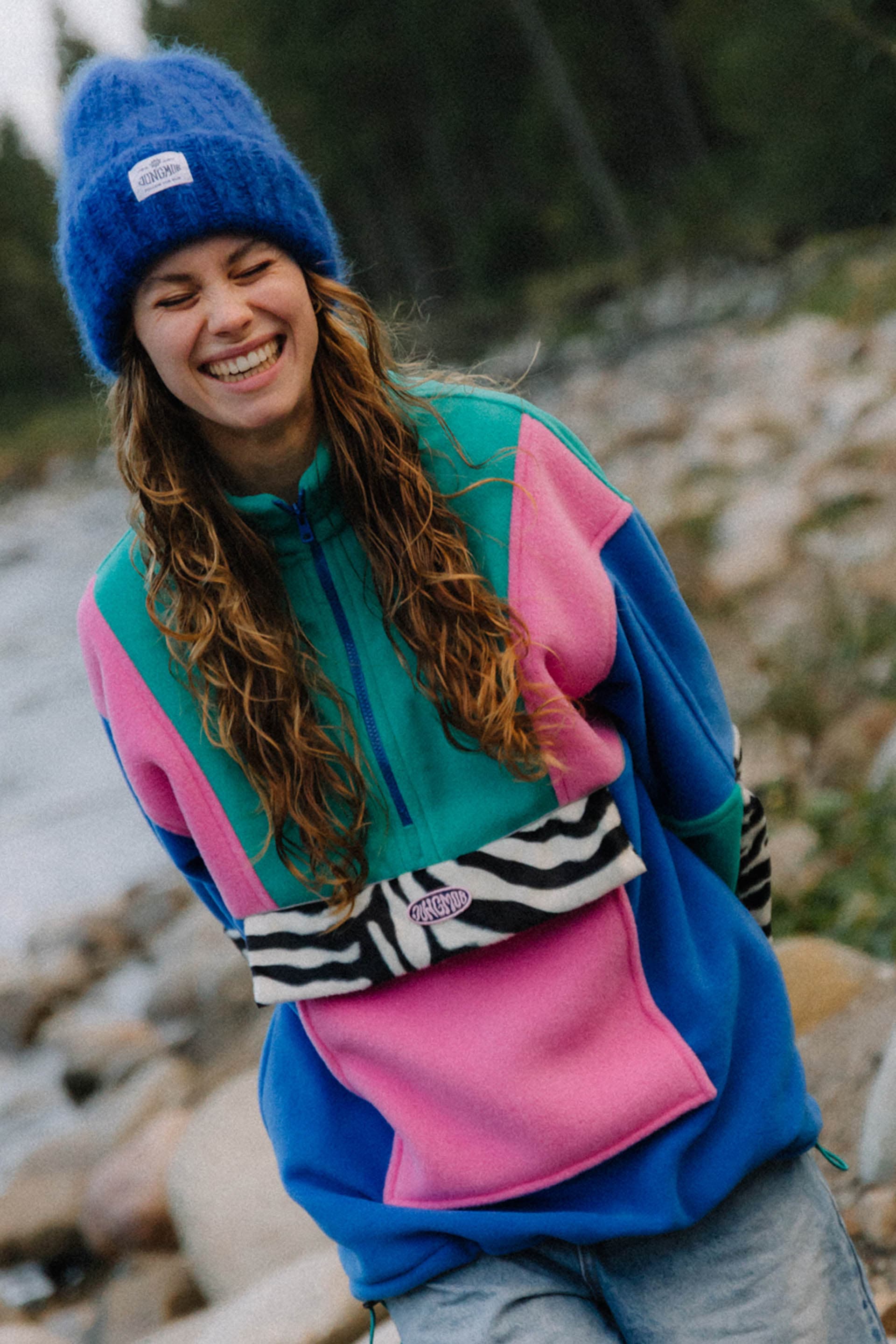 Polar BUBBLE DISCO to definicja dobrej energii! Połączenie intensywnych kolorów - granatu, różu i turkusu oraz wzoru w zebrę, tworzą niepowtarzalny look w stylu retro streetwear lat 90. Smutna jesień? Nic z tego, ta bluza sprawi, że nic nie będzie już szare i bure. Wykonana z miękkiego, ciepłego polaru, zapewnia maksymalny komfort w chłodniejsze dni. Co jeszcze sprawia, że jest wyjątkowa? Luźny krój, praktyczna duża kieszeń kangurka i niski kołnierz z krótkim zamkiem sprawiają, że bluza jest zarówno funkcjonalna, jak i stylowa. Możesz ją nosić na co dzień, na spacer, w góry albo po prostu wtedy, gdy chcesz poczuć się dobrze i wyglądać wyjątkowo.