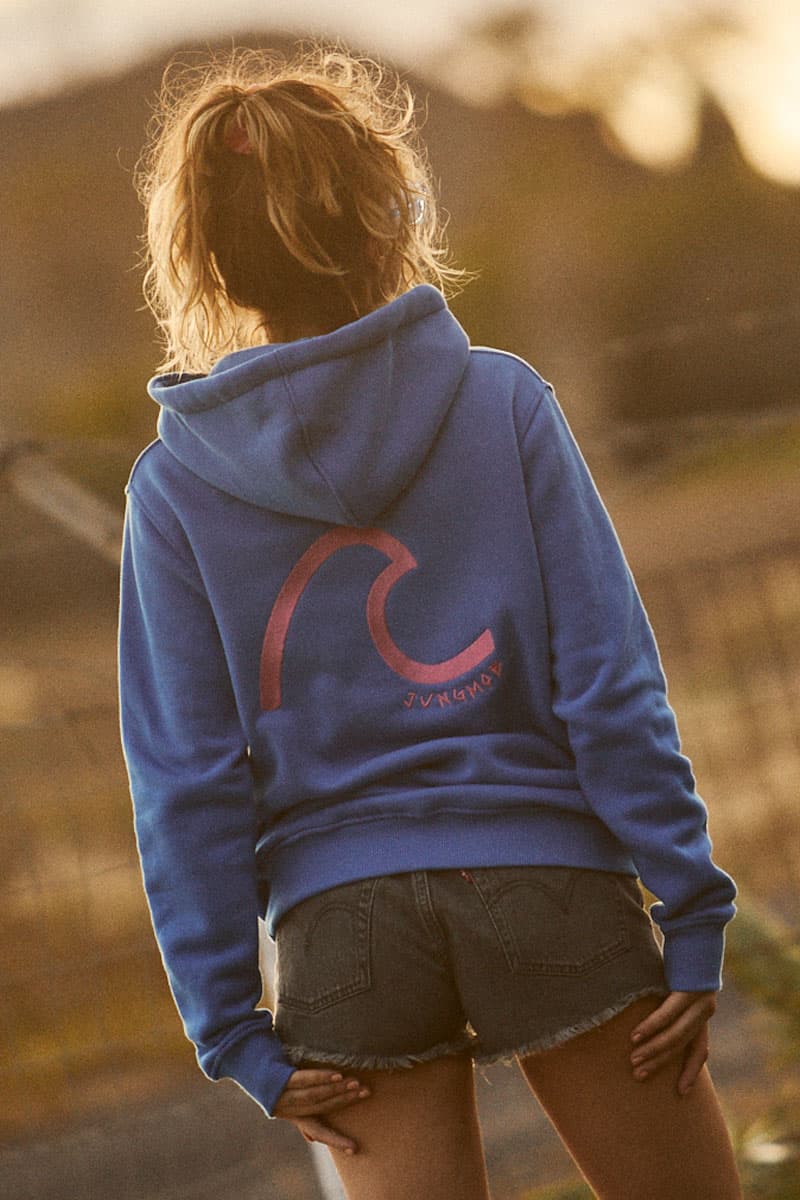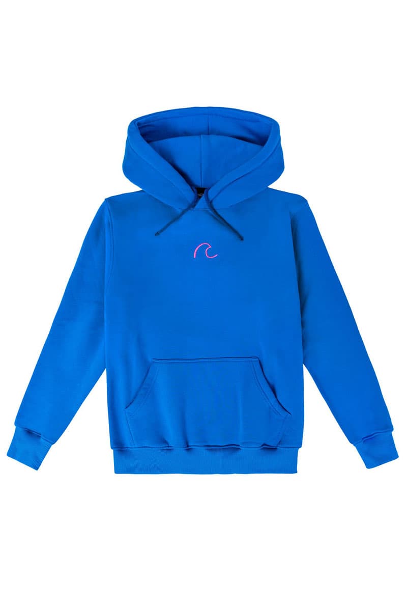 Bluza WAVE BLUE PINK dla prawdziwych fanów fal! Na plecach duży haft z różową falą i napisem JUNGMOB, na przodzie miniaturka falki. Zdecydowanie propozycja dla każdej surferki ale i fanek połączeń niebieskich odcieni z różowymi detalami.