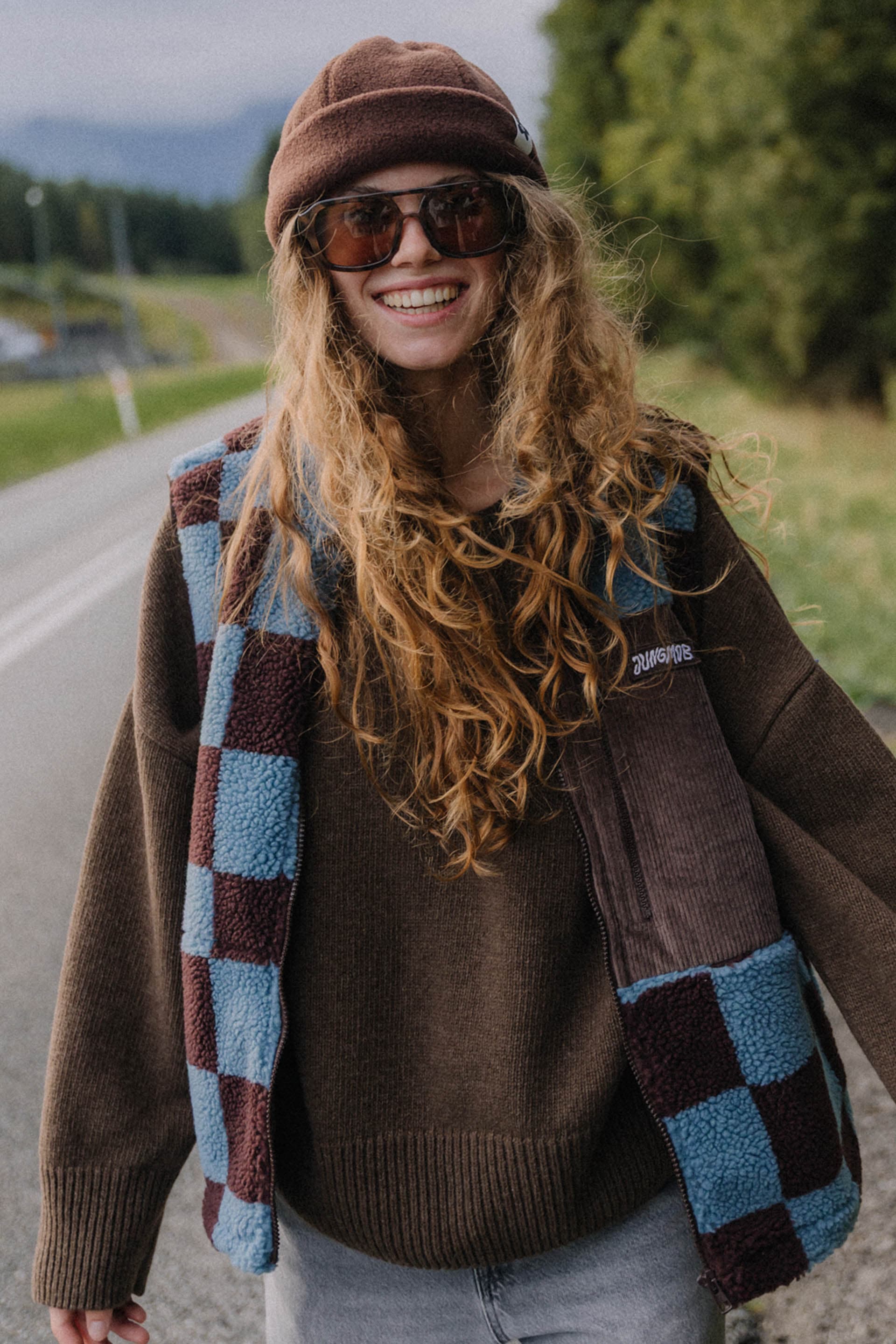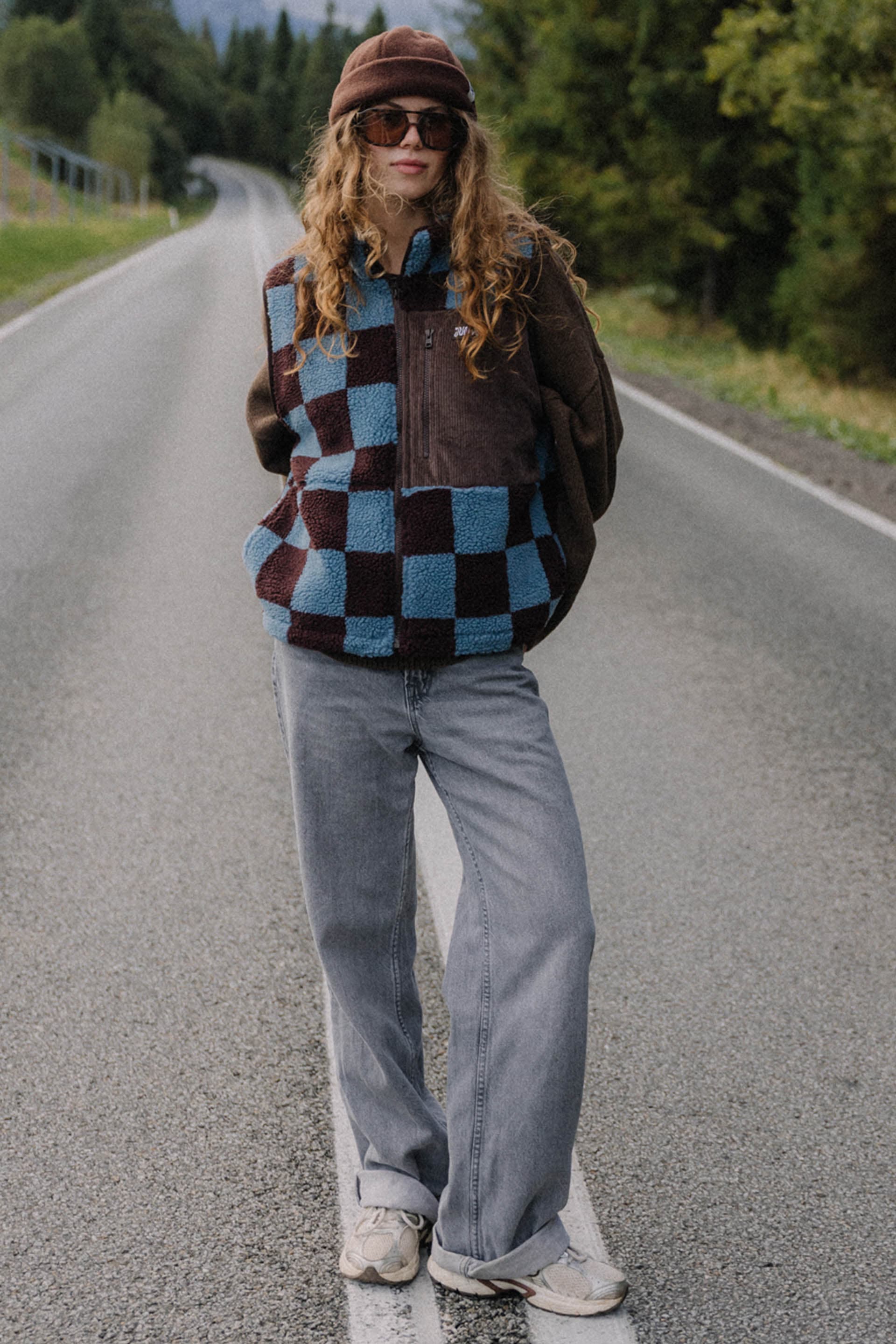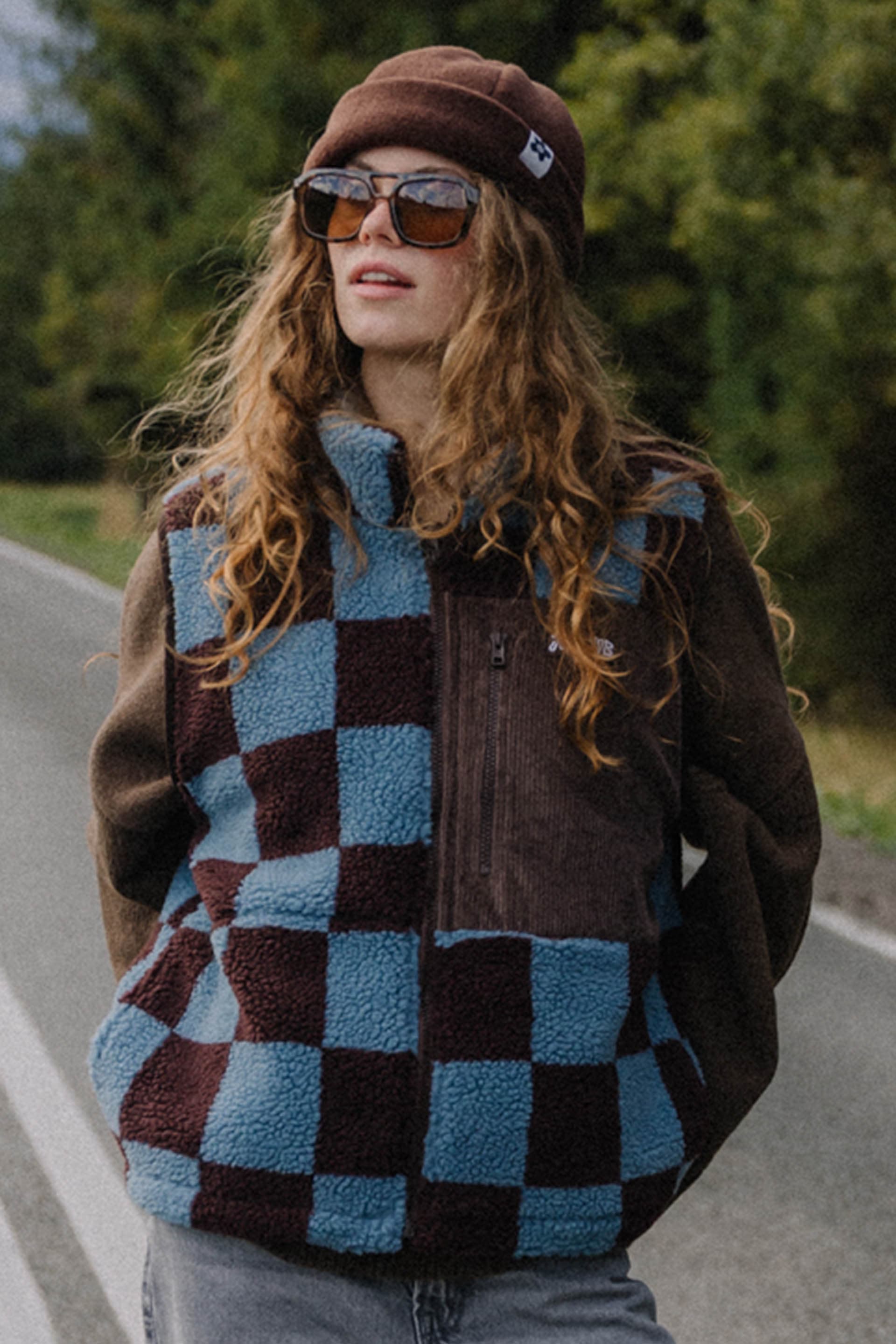 Ciepło, styl i luz w jednym! PIXIE HAZY CHECK to kamizelka z miękkiego baranka w której na pewno nie zmarzniesz.. Niebiesko-brązowa krata przyciąga spojrzenia, a kontrastowy materiał o miękkiej, pluszowej strukturze nadaje jej wyjątkowy retro klimat. Idealna do noszenia na bluzę, sweter czy polar — sprawdzi się zarówno w górach, jak i na miejskich spacerach. Wygodny krój i suwak na całej długości gwarantują komfort i swobodę ruchów. Kamizelka ma podszewkę, boczne kieszenie na ręce i sztruksową kieszonkę na piersi.