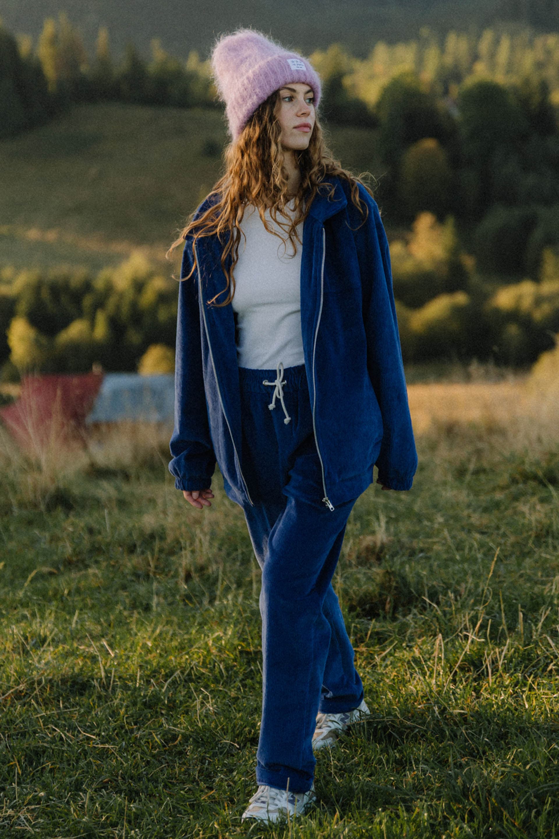 Spodnie MALTA w urzekającym i hipnotyzującym odcieniu granatu. Wykonane z miękkiego, przyjemnego w dotyku sztruksu, gwarantują wygodę przez cały dzień. Klasyczny, prosty fason sprawia, że można je nosić zarówno na biodrach, jak i wersji z wysokim stanem. Dla bardziej swobodnego looku, nogawki można lekko podwinąć. W pasie wszyta jest elastyczna guma, która nie uciska, a dodatkowe sznureczki umożliwiają dopasowanie obwodu. Z tyłu, na kieszeni, umieszczono naszywkę z naszym logo.